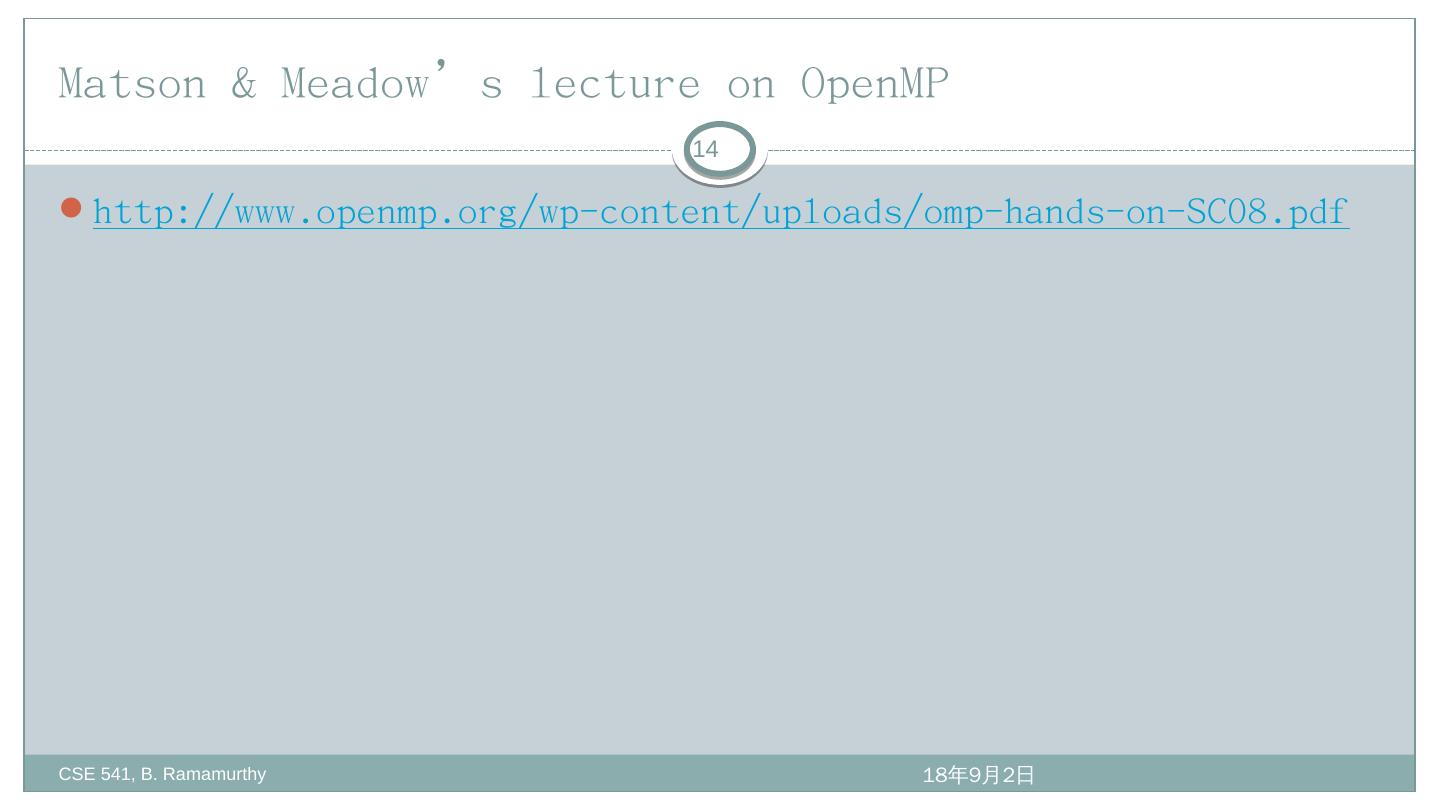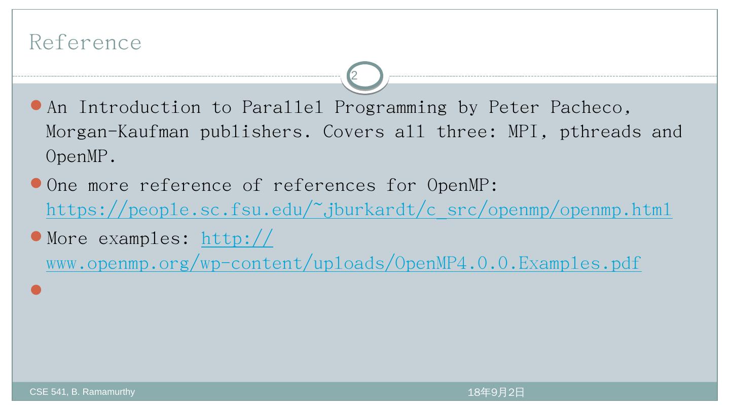 B. Ramamurthy. 1/1/97. 1. Shared Memory Programming with OpenMP. CSE 541 , B. Ramamurthy. Reference. An Introduction to Parallel Programming by Peter ...