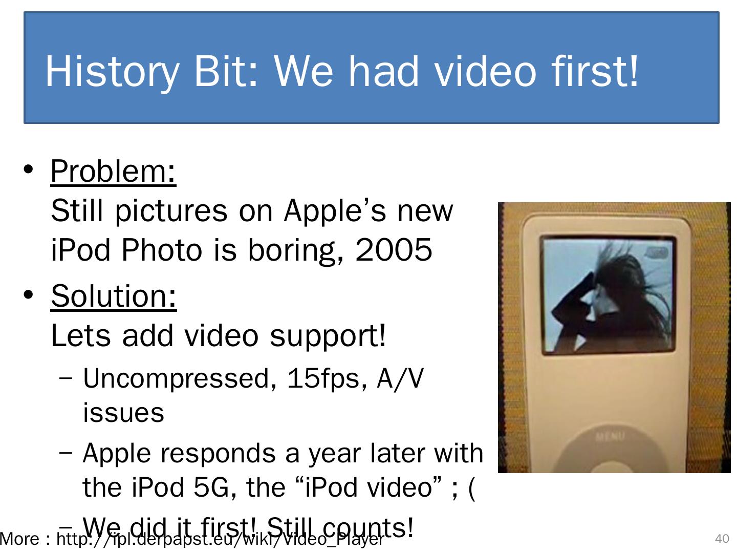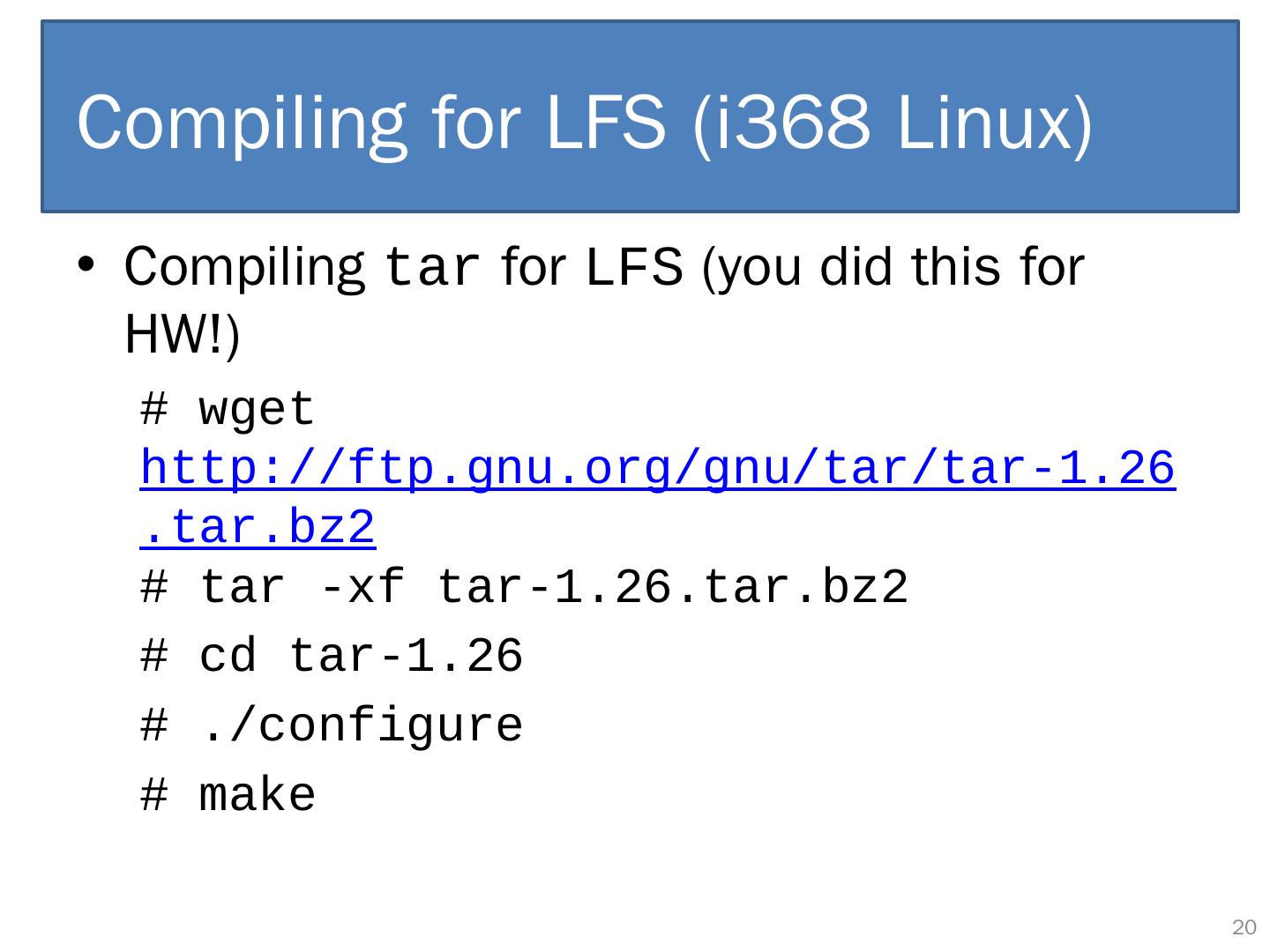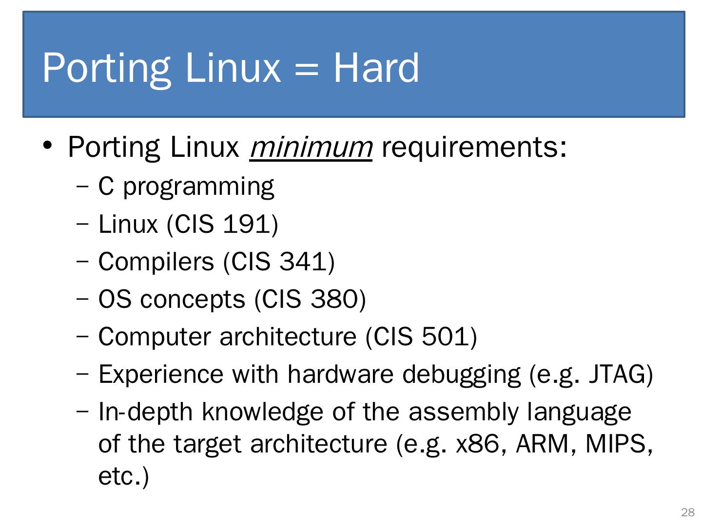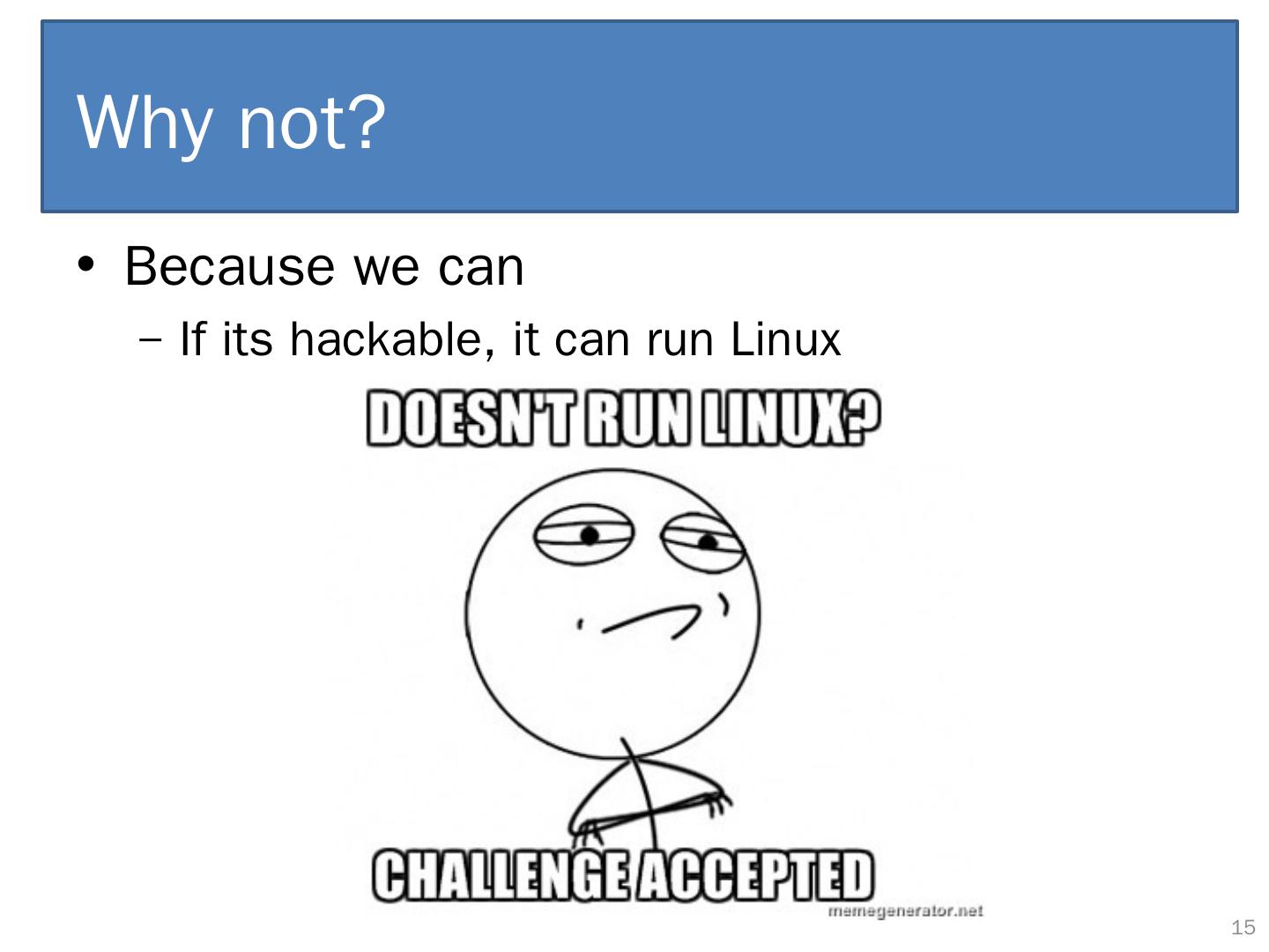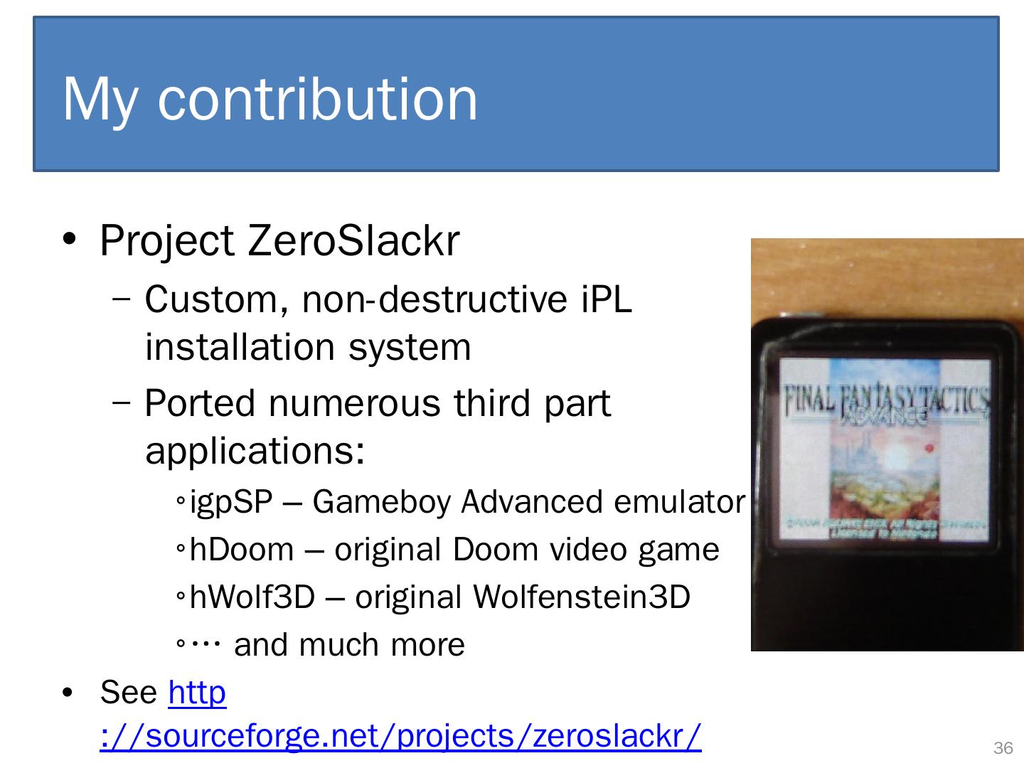 Introduction; Different Platforms; Reasons for Linux; Cross-compiling; Case Study: .... Compile ipodloader2 bootloader; Patch and compile 2.4.32 uClinux kernel.