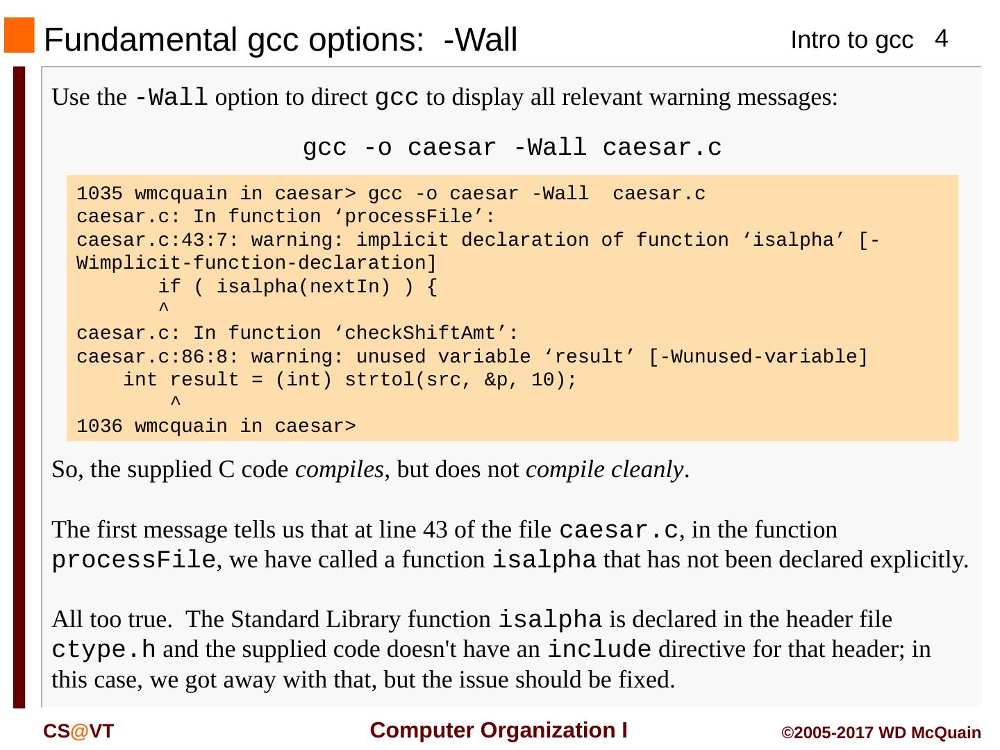 GCC: the GNU Compiler Collection. We will be primarily concerned with the C compiler, gcc. The program gcc is actually a front-end for a suite of programming ...
