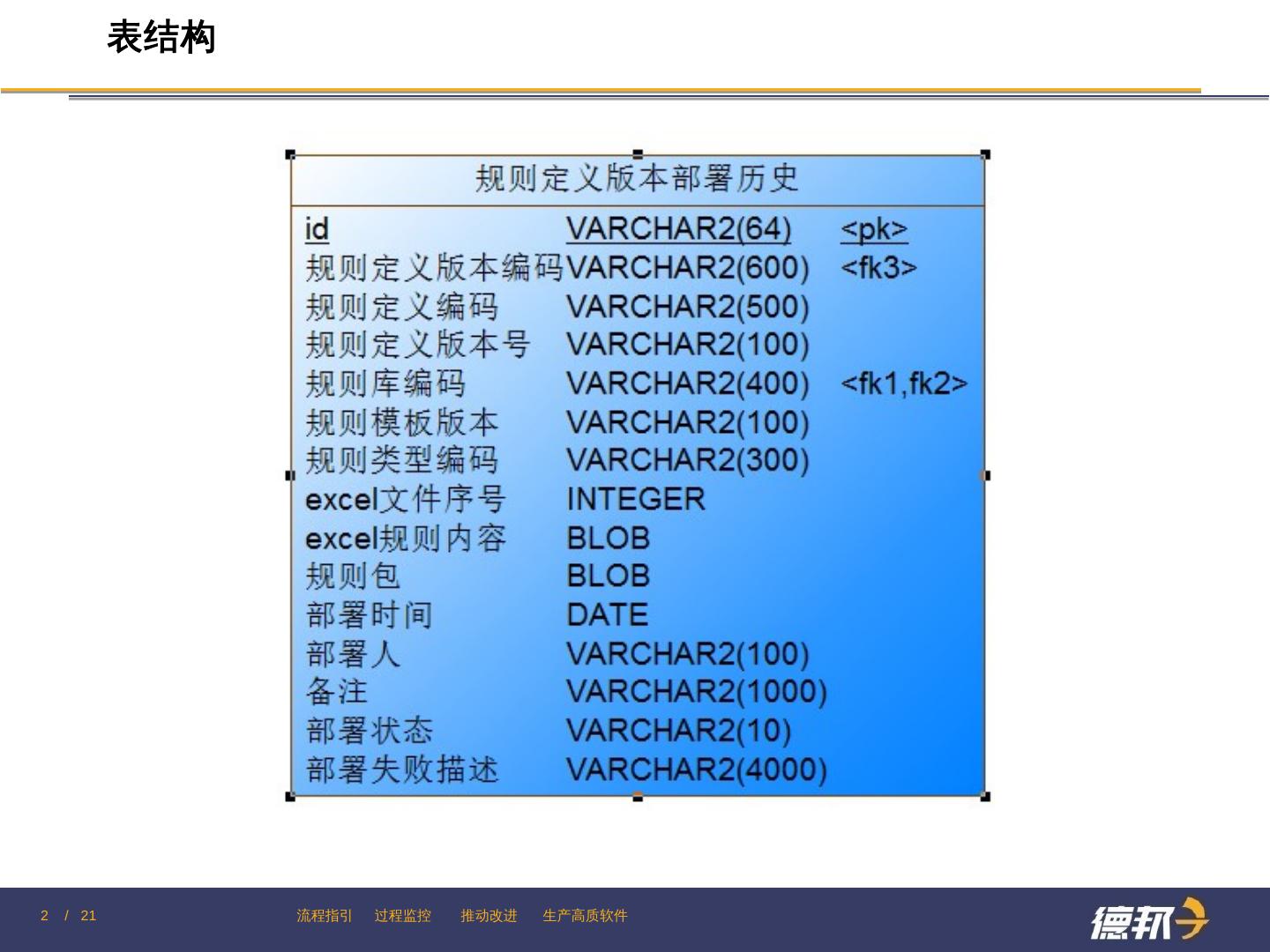 2 . 表结构 2 / 21 流程指引 过程监控 推动改进 生产高质软件