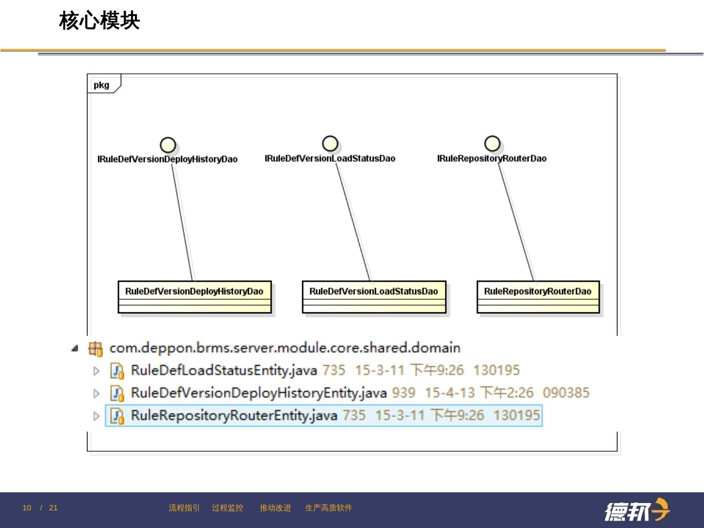 10 . 核心模块 10 / 21 流程指引 过程监控 推动改进 生产高质软件