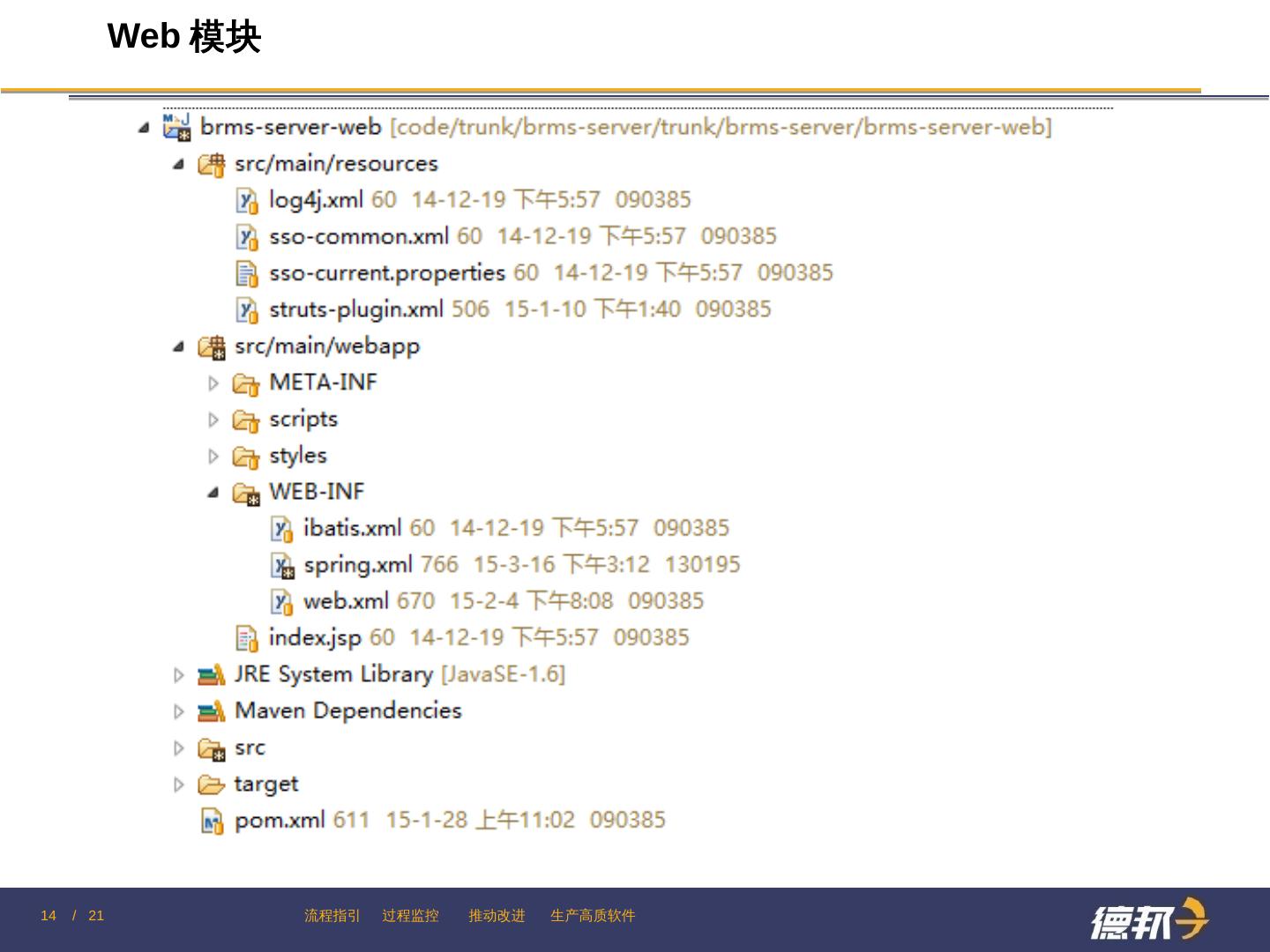 14 . Web 模块 14 / 21 流程指引 过程监控 推动改进 生产高质软件