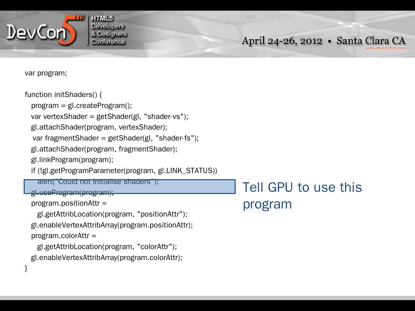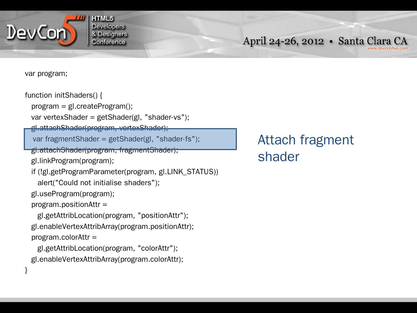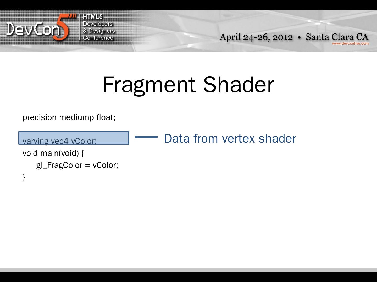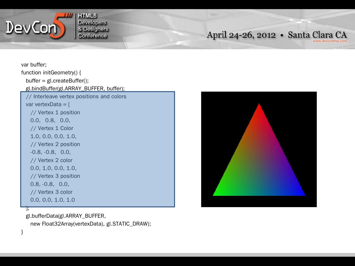 Adapted from Giles Thomas' Learning WebGL Lesson 2; Code is checked in to http://webglsamples.googlecode.com/ under hello-webgl/. Vertex Shader.