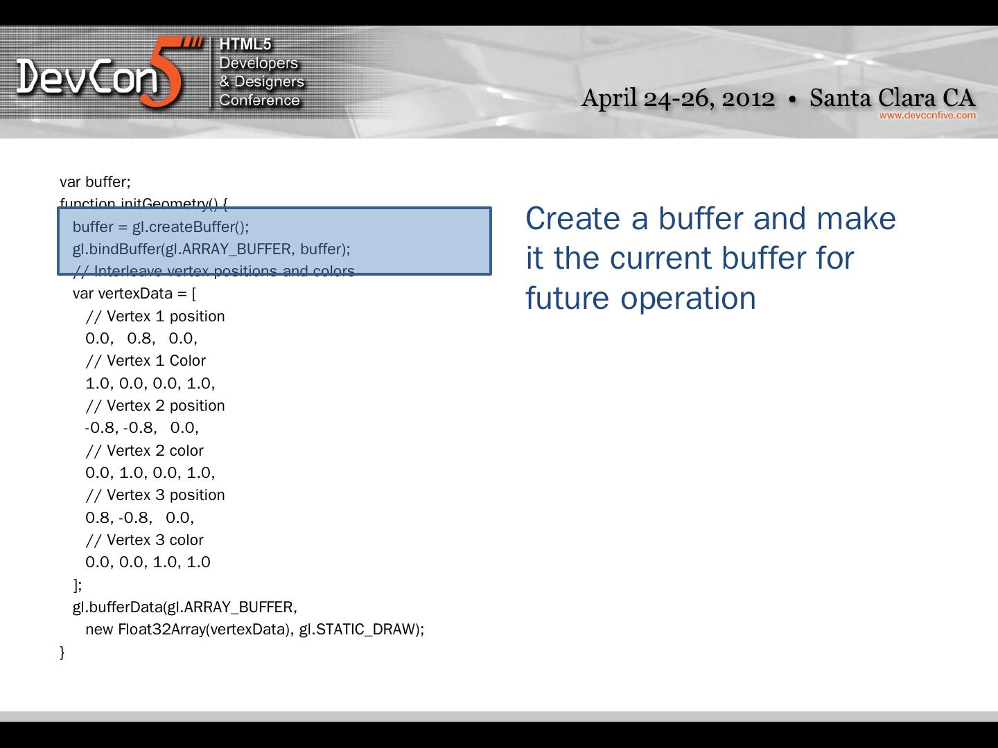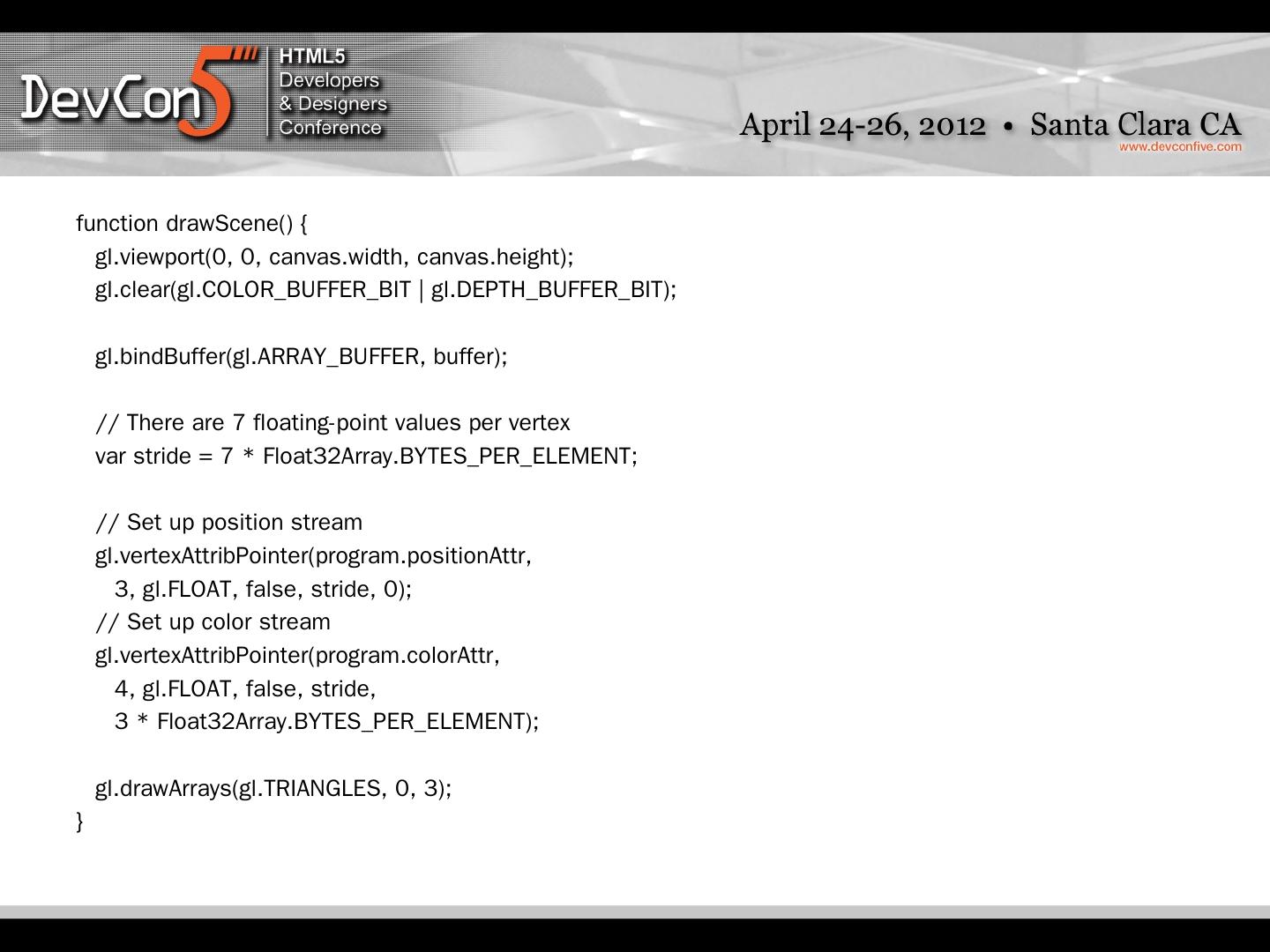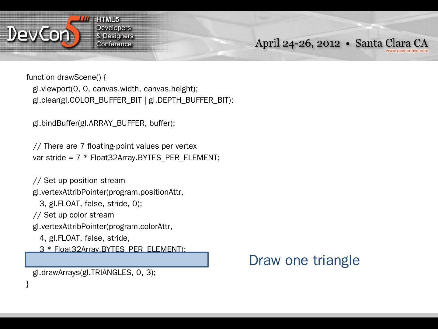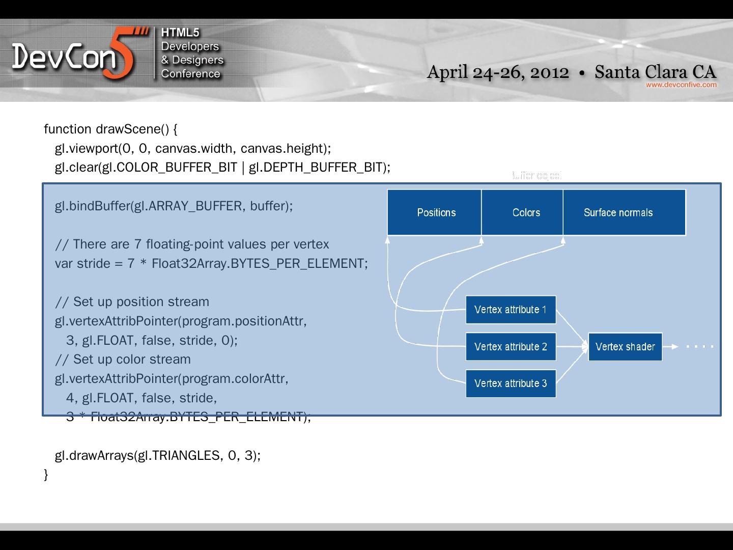 Adapted from Giles Thomas' Learning WebGL Lesson 2; Code is checked in to http://webglsamples.googlecode.com/ under hello-webgl/. Vertex Shader.