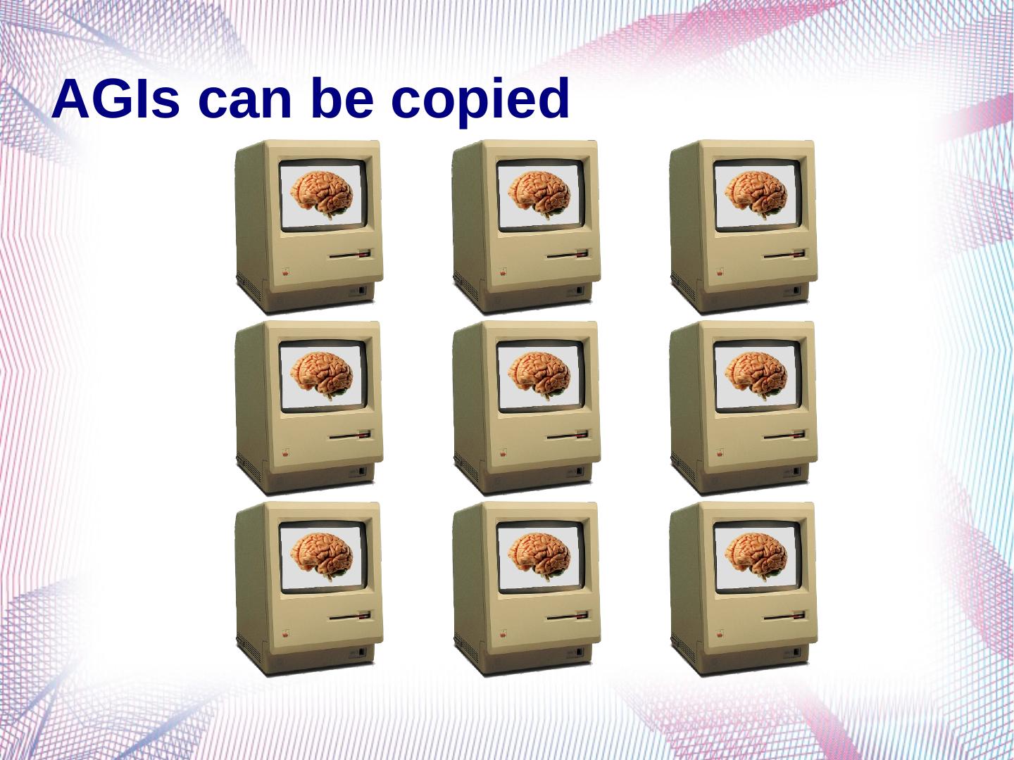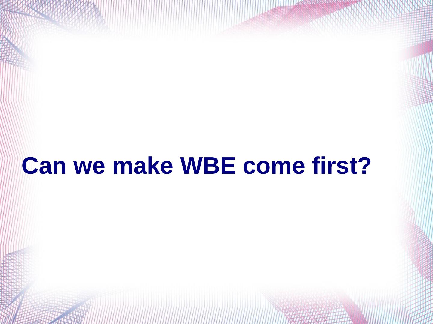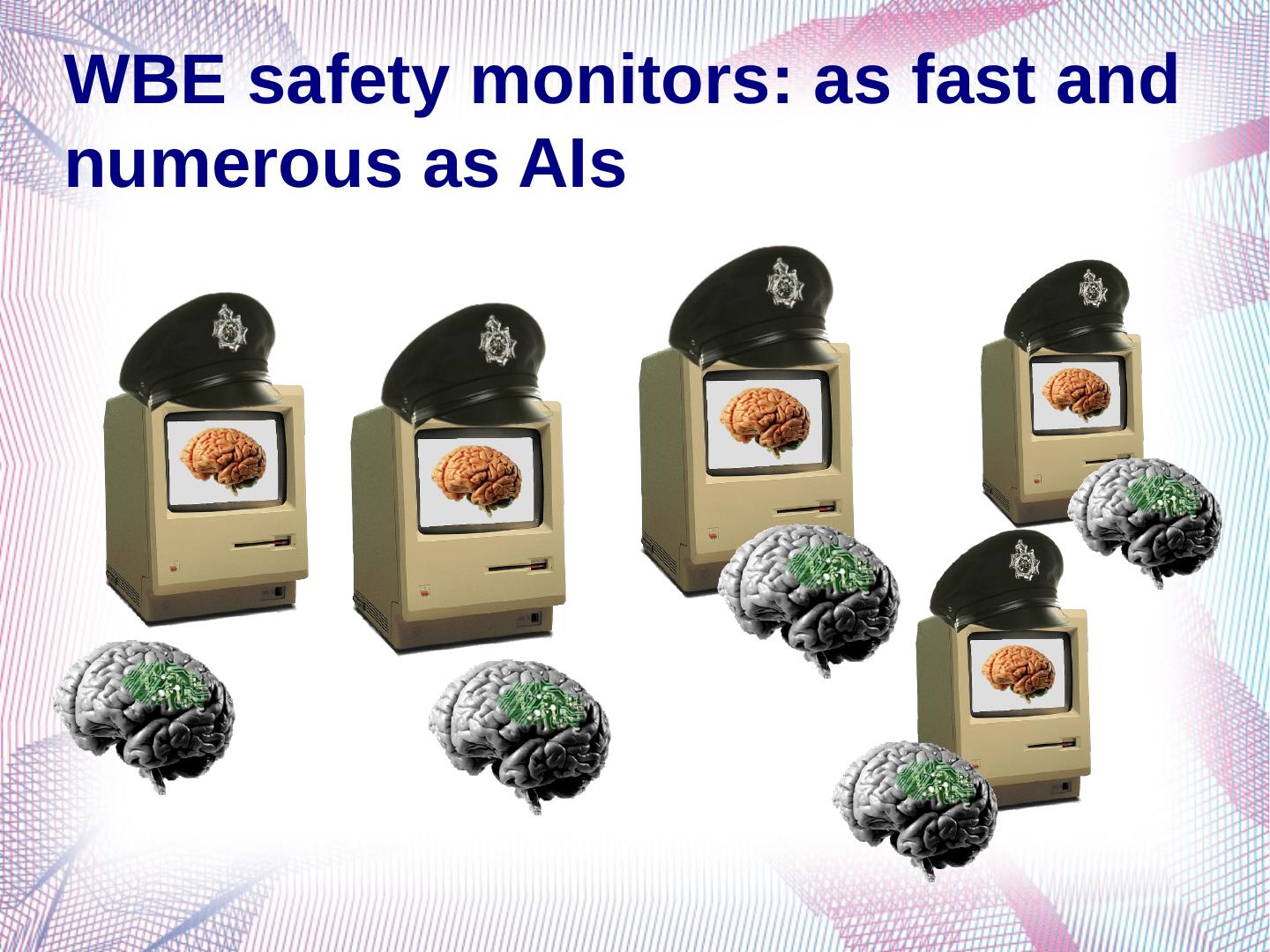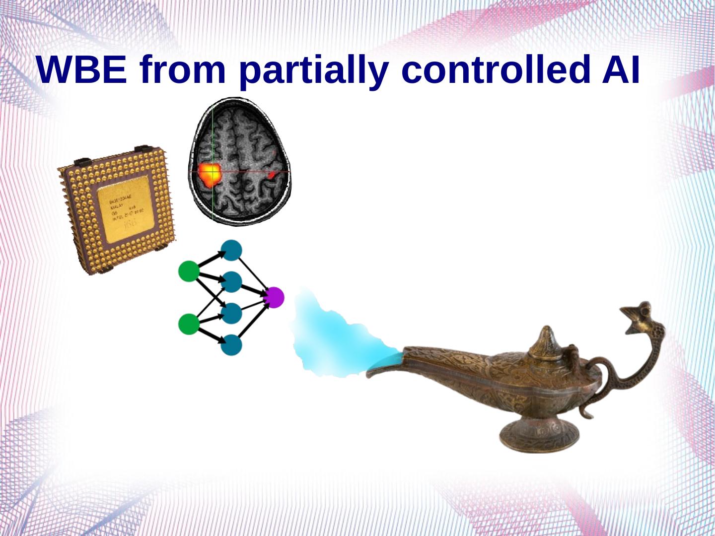 Whole Brain Emulation (WBE); WBE not stable; But may help to build safe AI; Can we make WBE come first? AGI: More change, faster. AGIs can be copied.