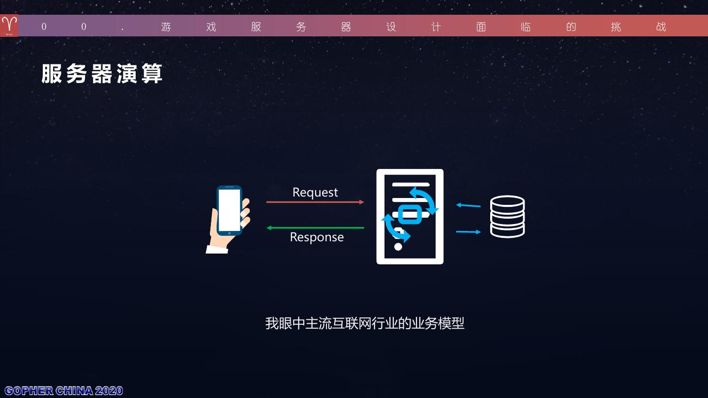 5 .0 0 . 游 戏 服 务 器 设 计 面 临 的 挑 战 服务器演算 Request Response 我眼中主流互联网行业的业务模型