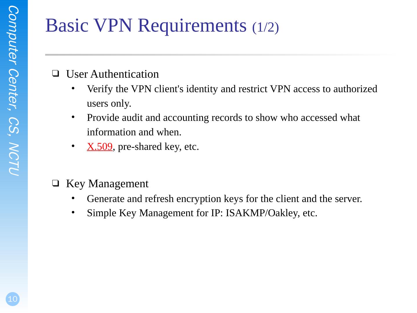 Point-to-Point Tunneling Protocol (PPTP) (PPP + encryption + GRE); Layer Two Tunneling Protocol (L2TP) (PPTP + L2F). Based on TCP/IP. L2TP/IPsec; IPsec ...