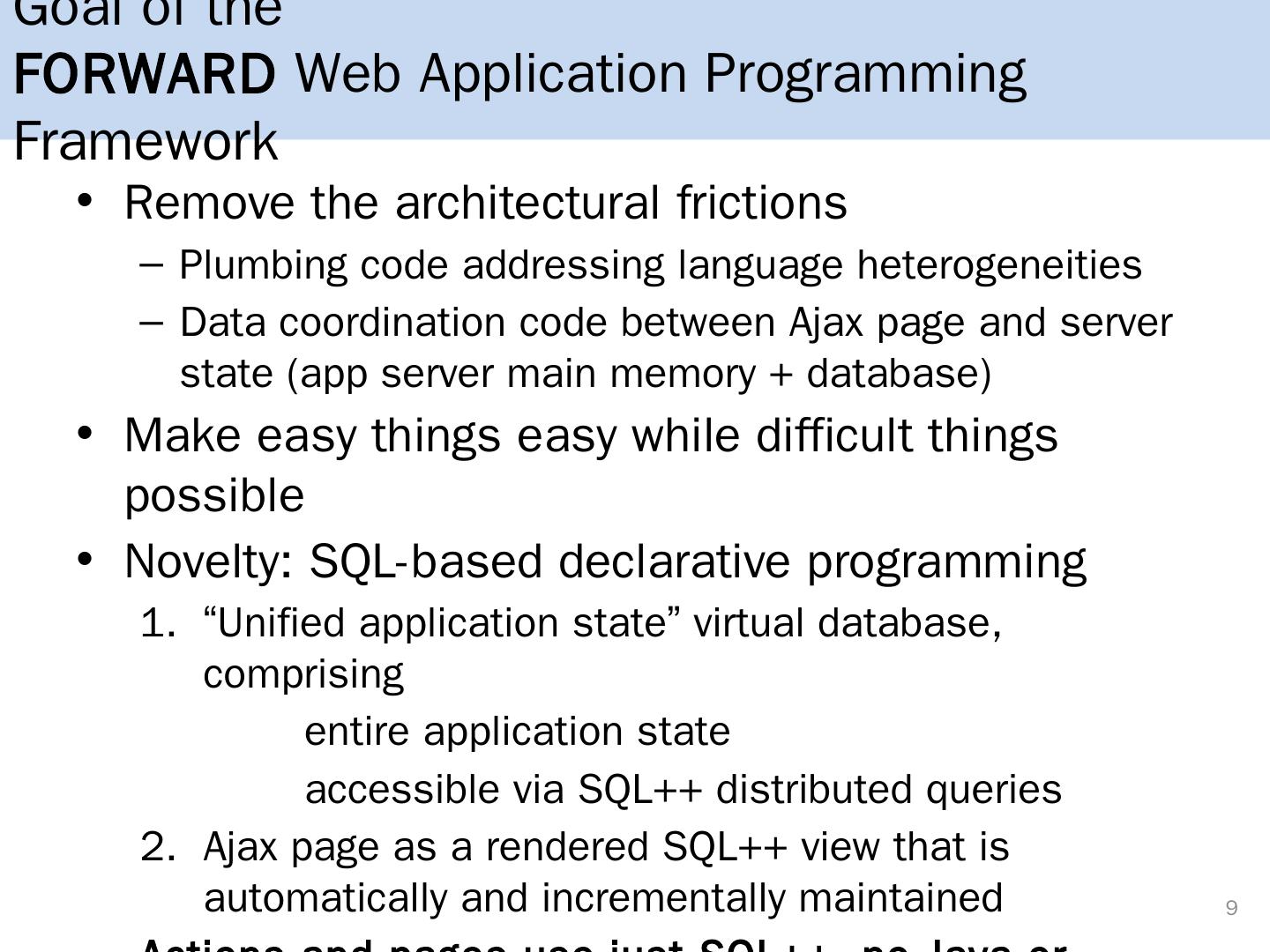 Yannis Papakonstantinou. Michalis Petropoulos. The FORWARD. SQL-Based Declarative Framework. for Ajax Applications. Vast Majority of Web Applications:
