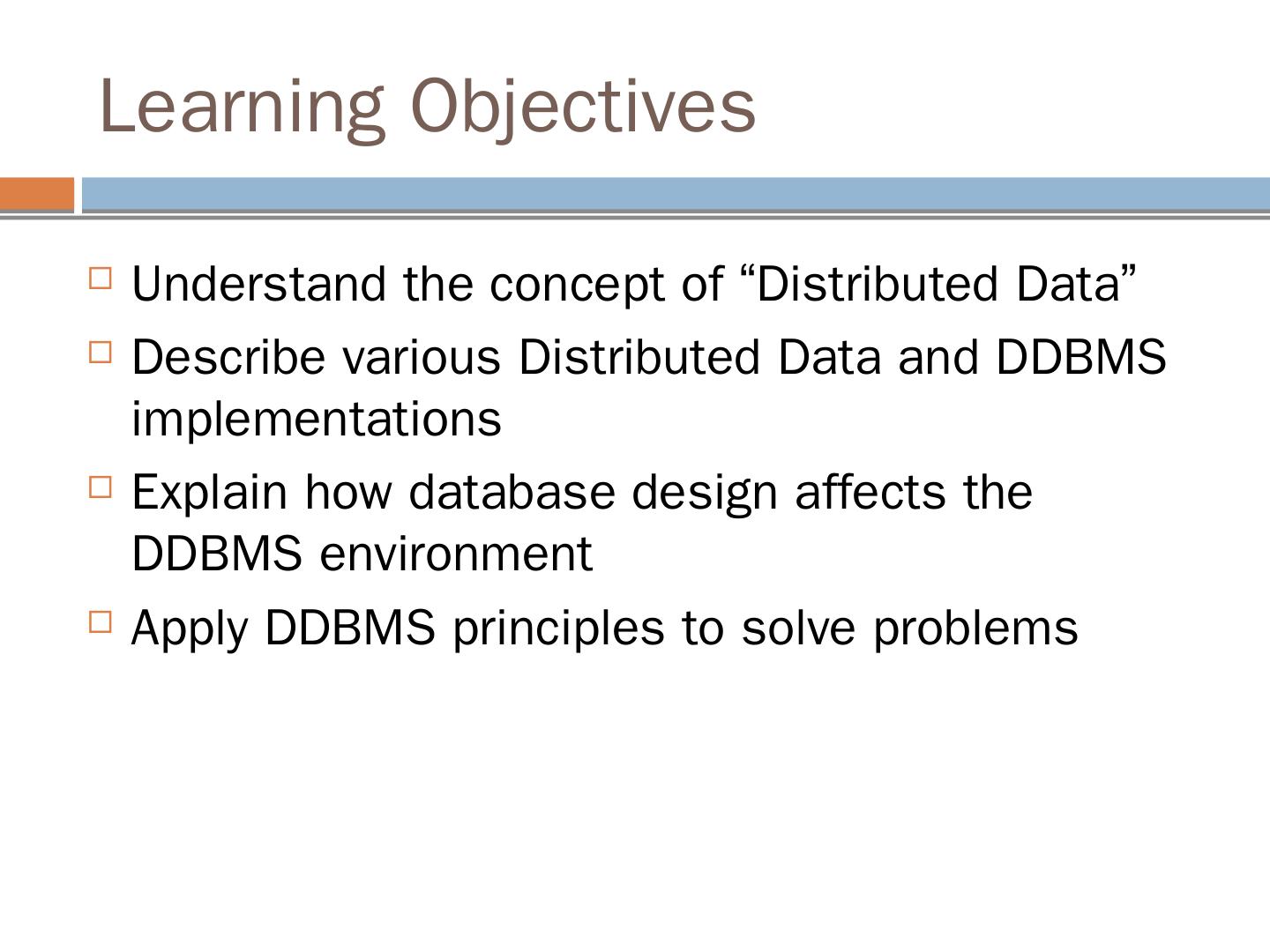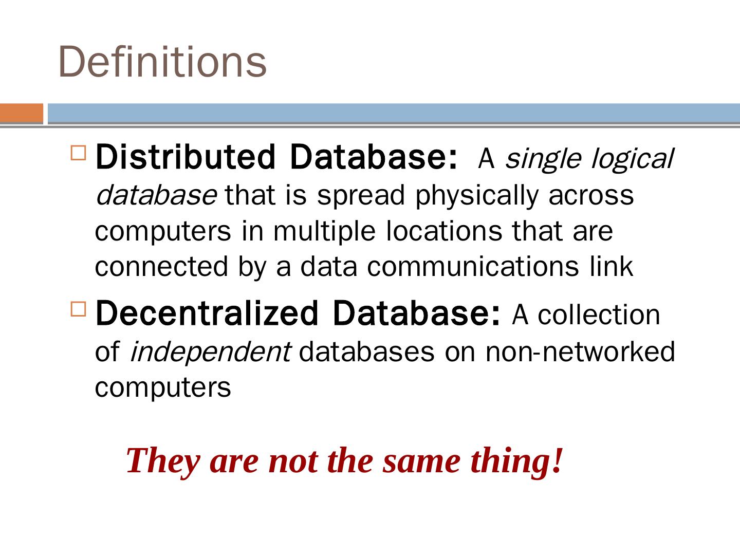 Distributed Database: A single logical database that is spread physically across computers in multiple locations that are connected by a data communications ...