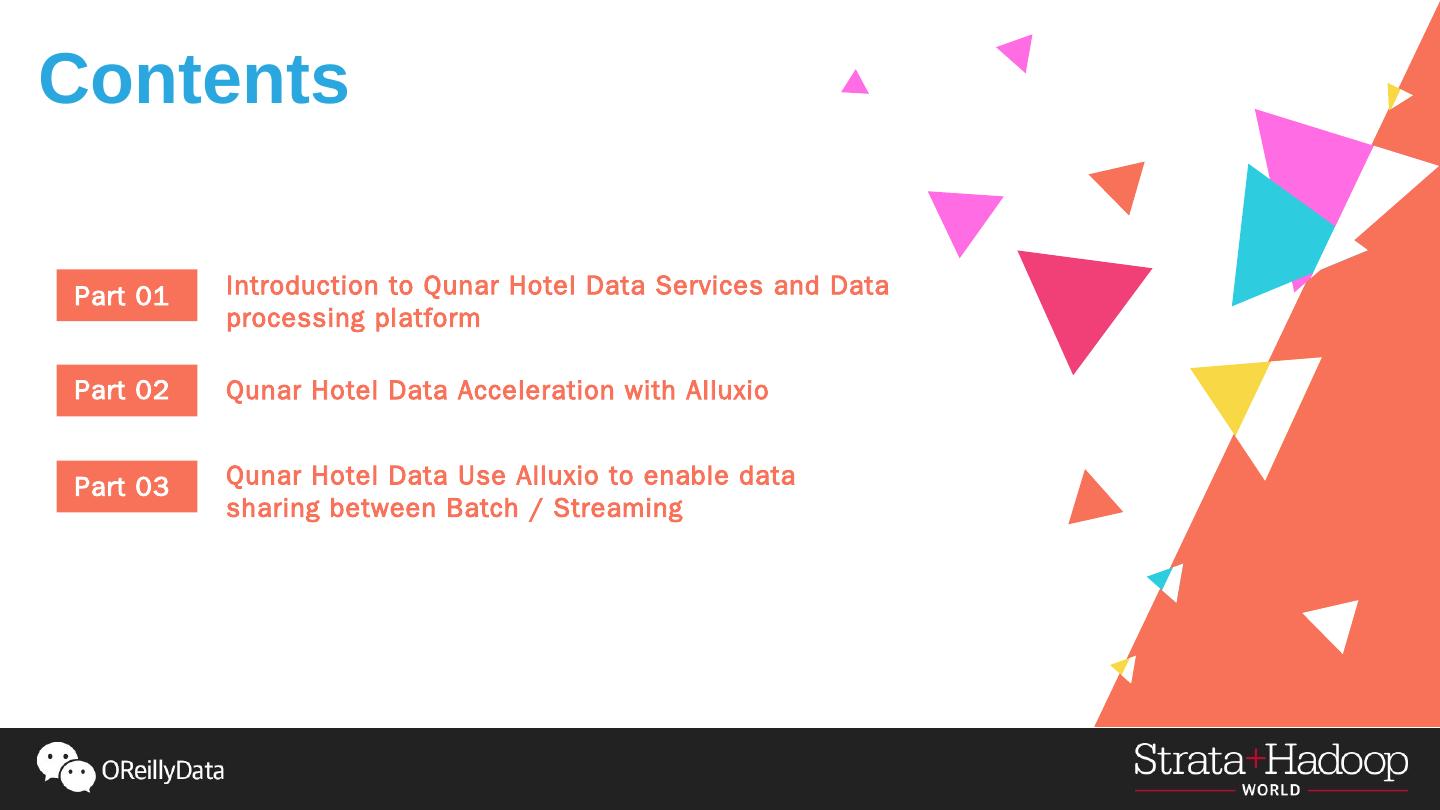 How Alluxio (formerly Tachyon) brings a 300x performance improvement to Qunar's streaming processing. Xueyan Li (Qunar) & Chunming Li (Garena). Contents.