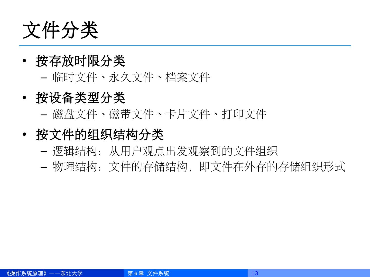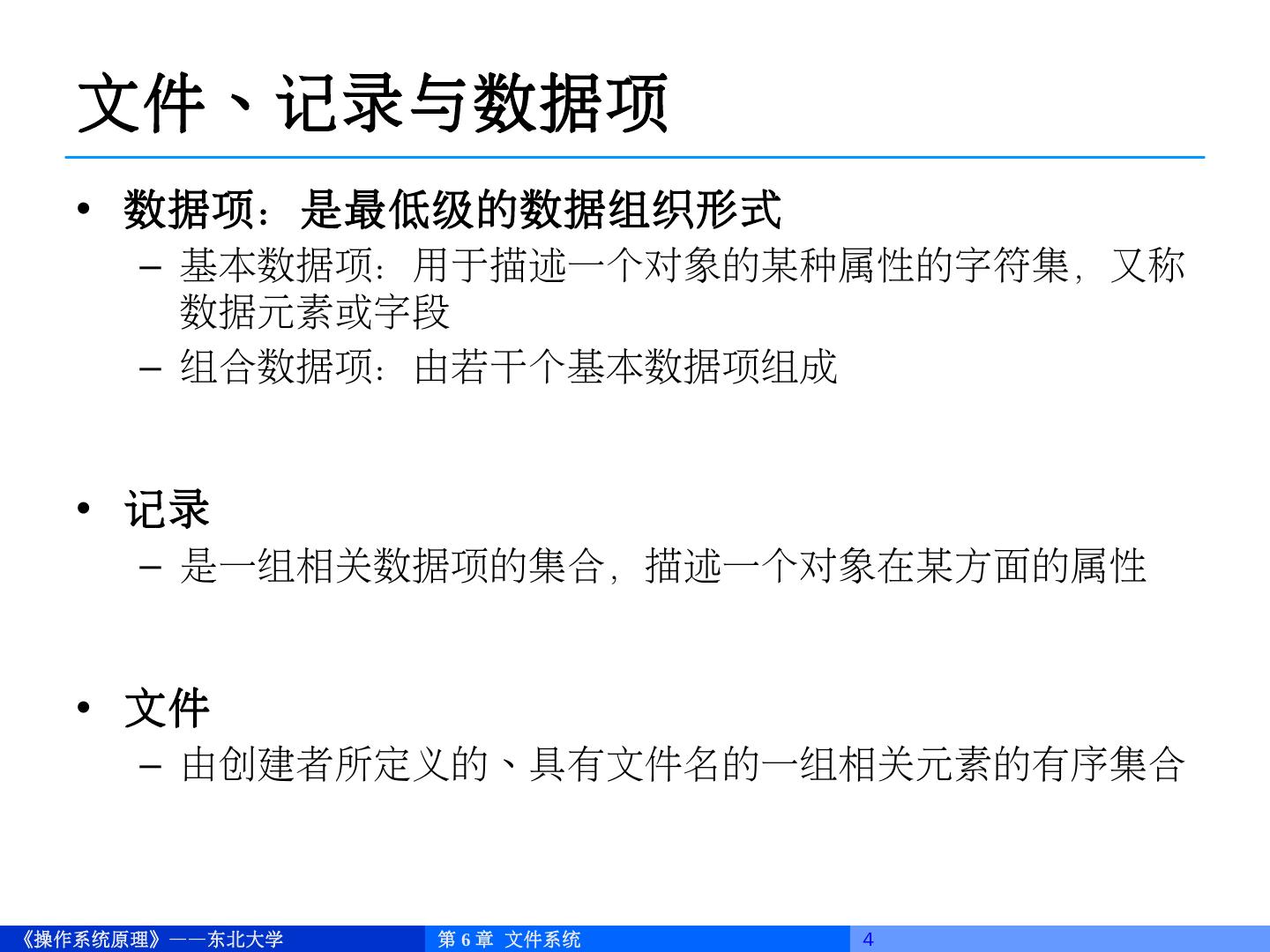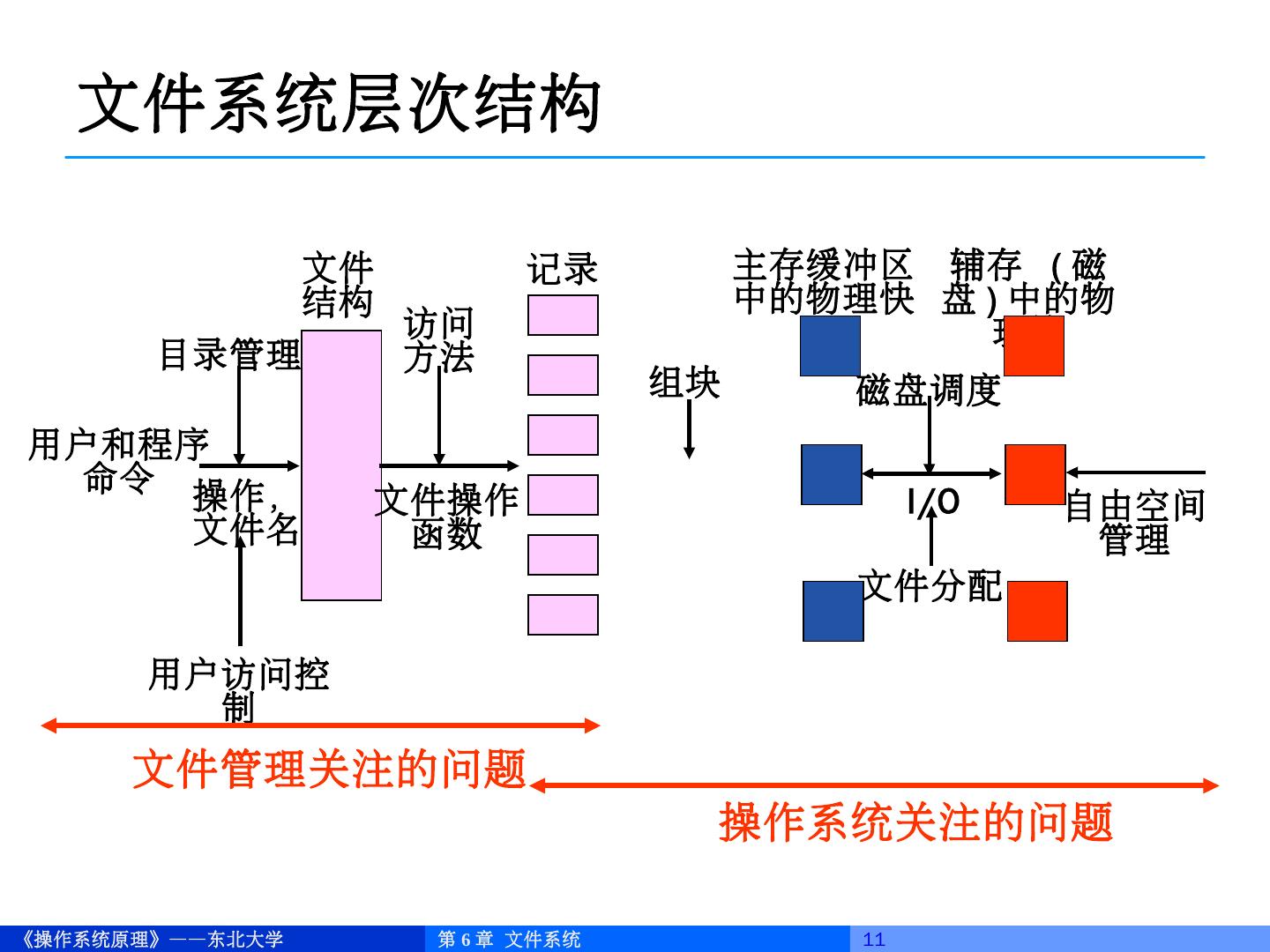 主要内容. 什么是文件与文件系统; 文件的逻辑结构; 外存分配方式; 目录管理; 文件存储空间的管理; 文件的共享与保护; 数据一致性检查. 《操作系统原理》——东北大学.