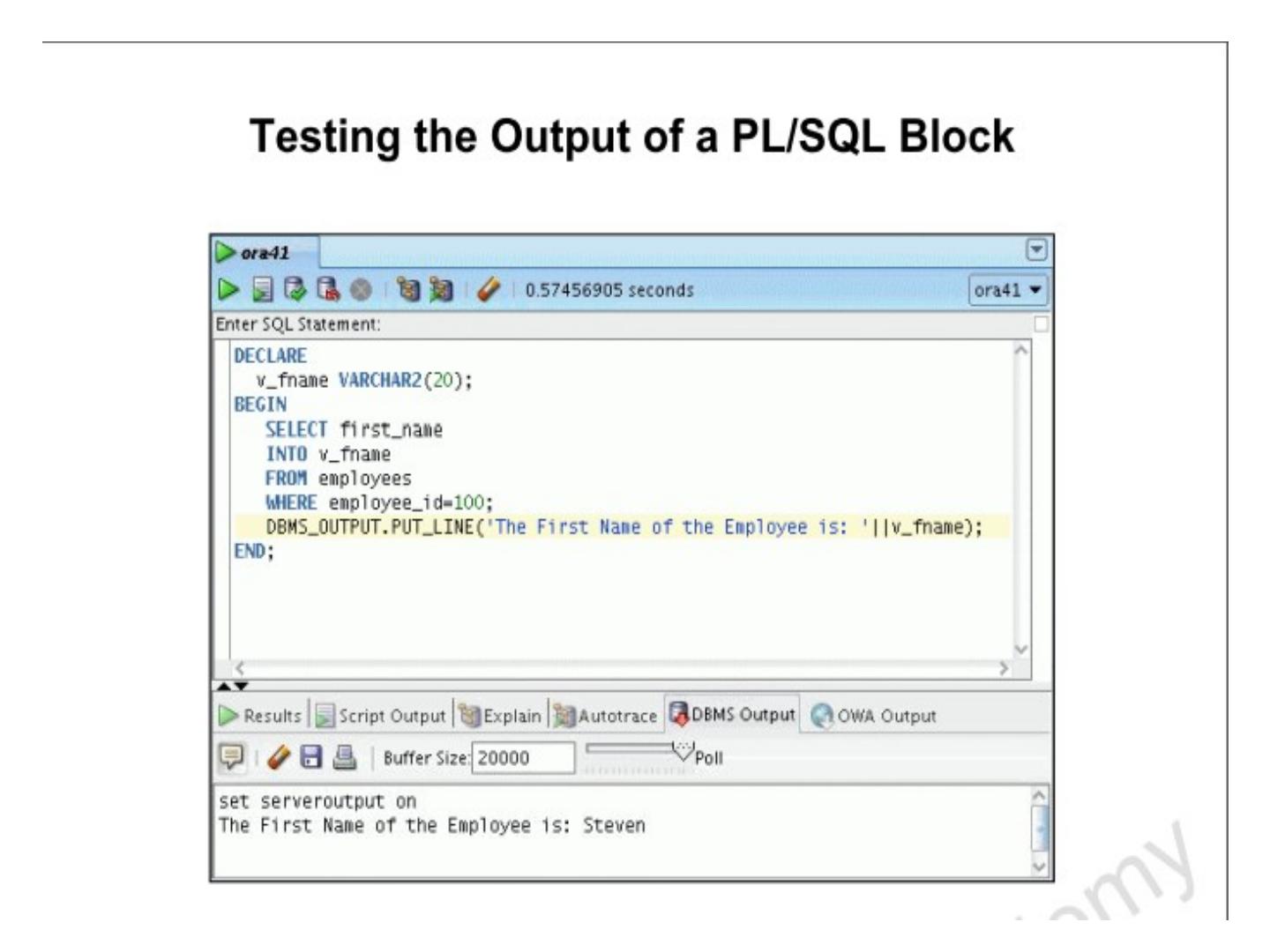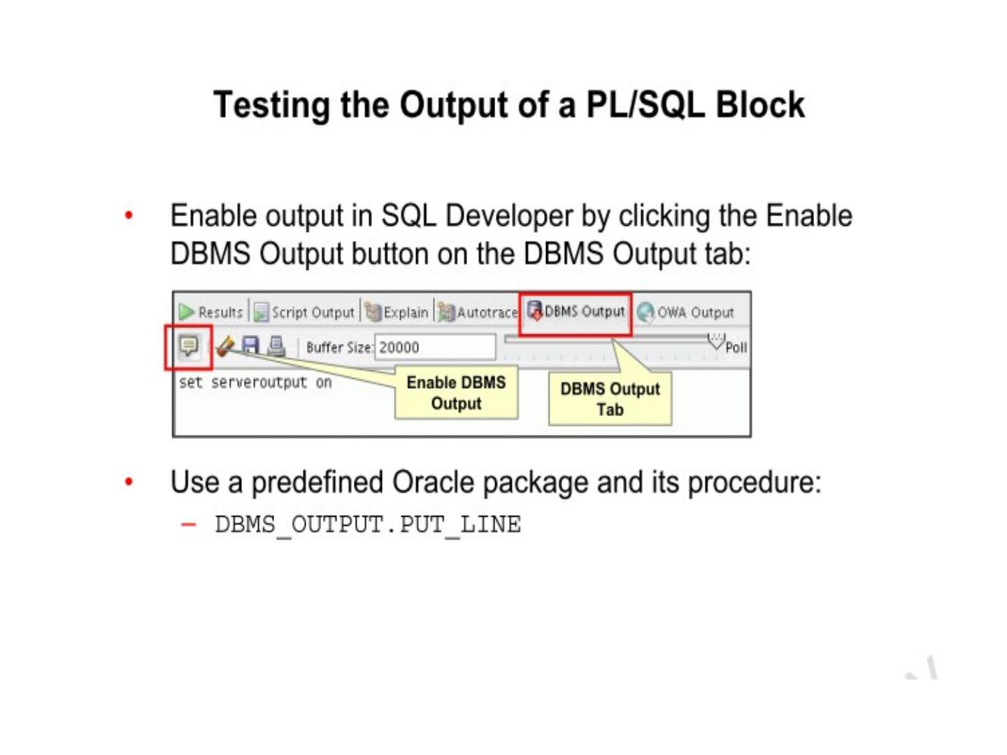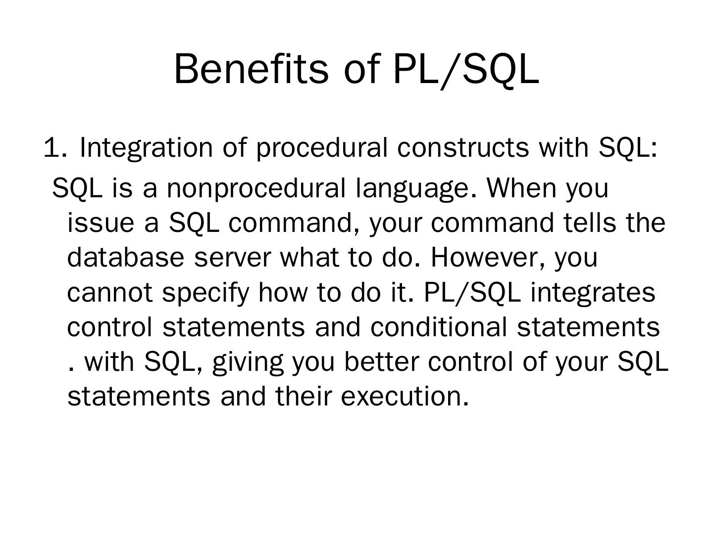 Explain the need for PL/SQL; Explain the benefits of PL/SQL; Identify the different types of PL/SQL blocks; Use Oracle SQL Developer as a development ...