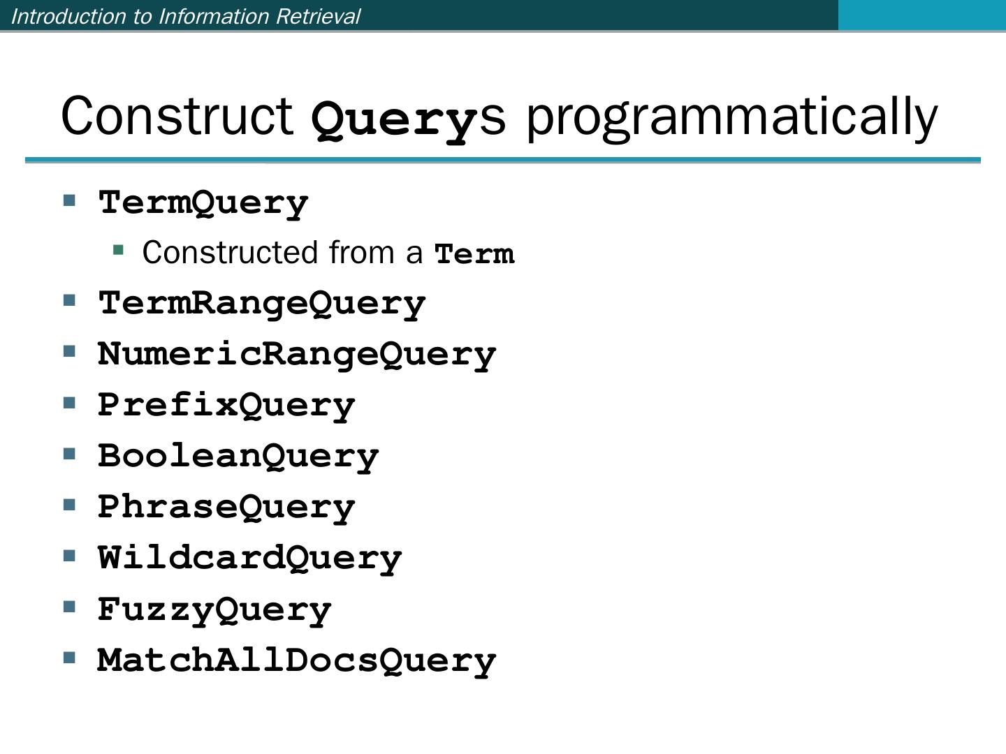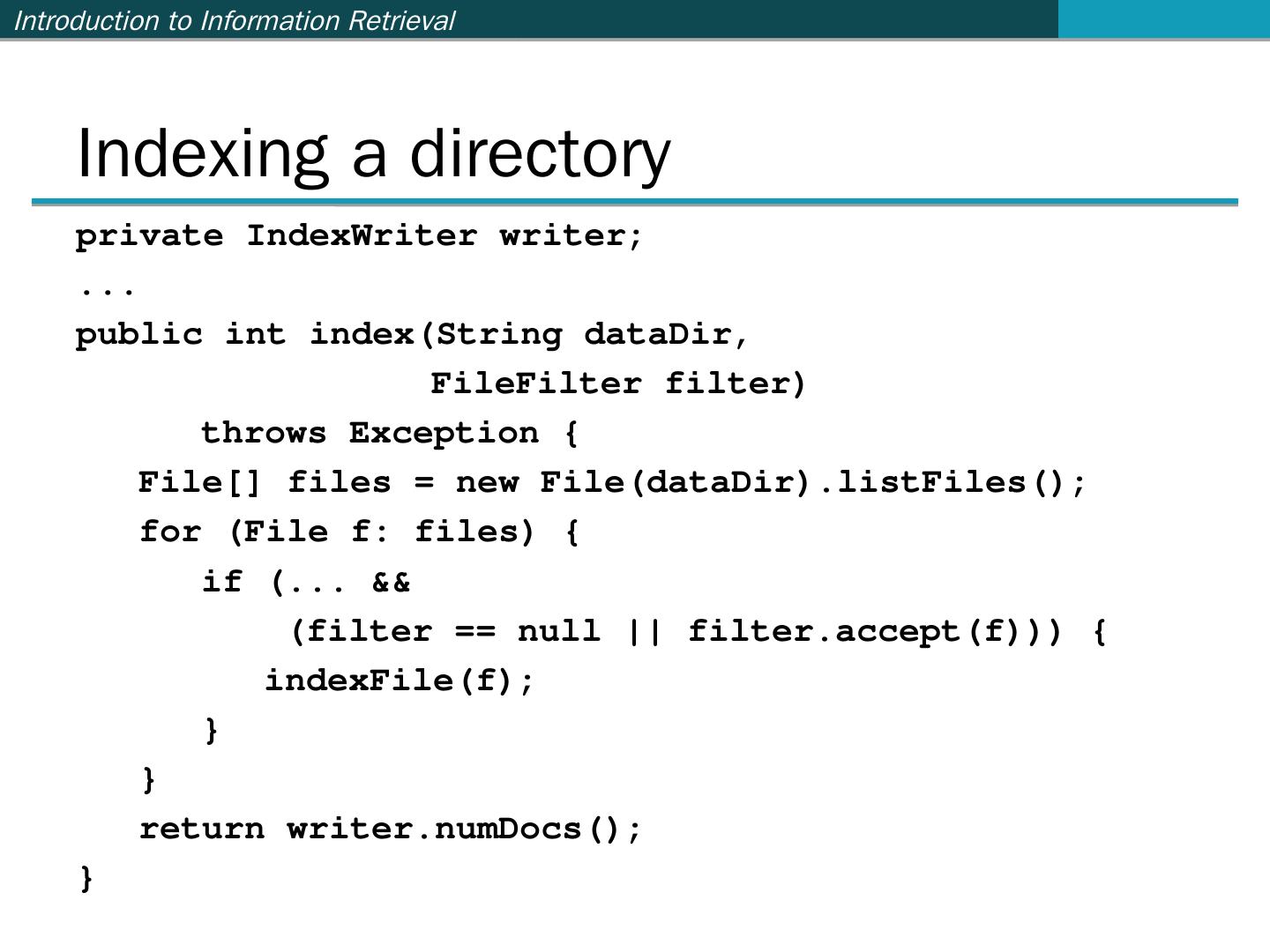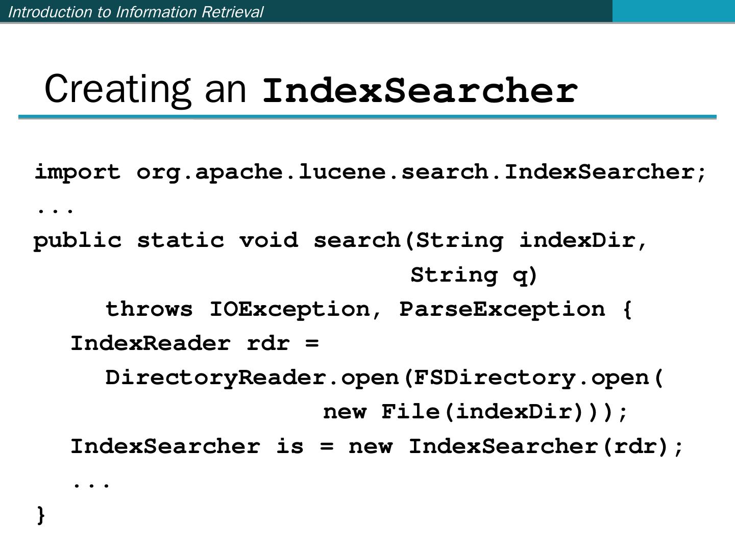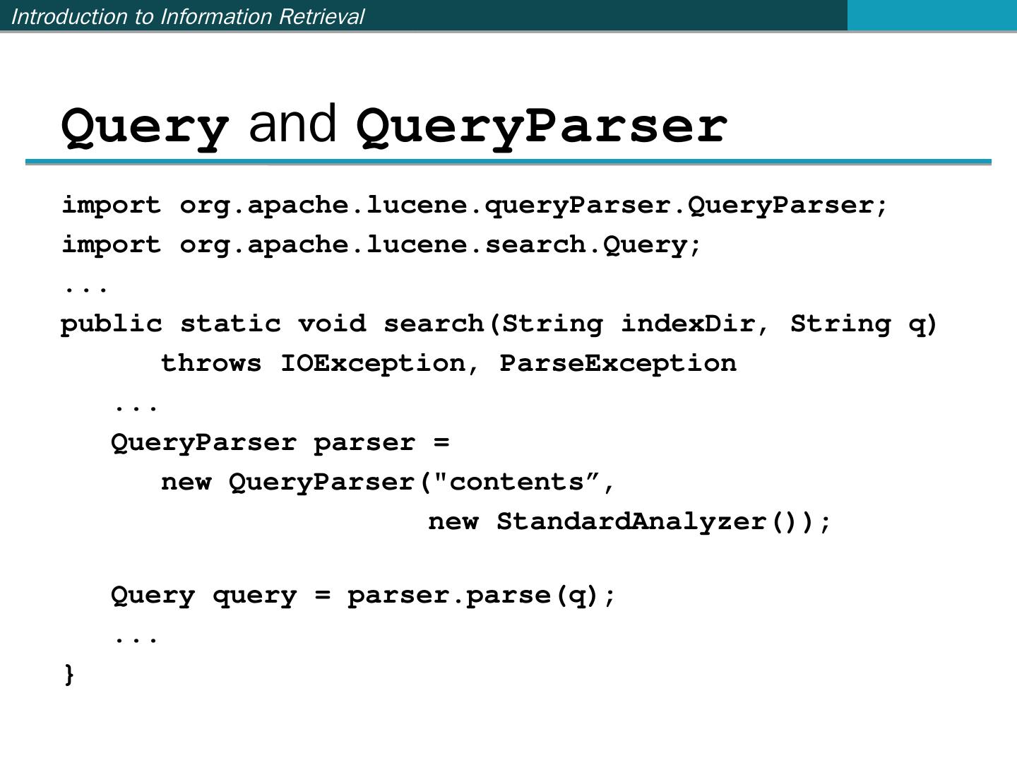 Ant: http://ant.apache.org/. Java build system used by “Lucene in Action” code. Introduction to Information Retrieval. Lucene in a search system. Raw Content.