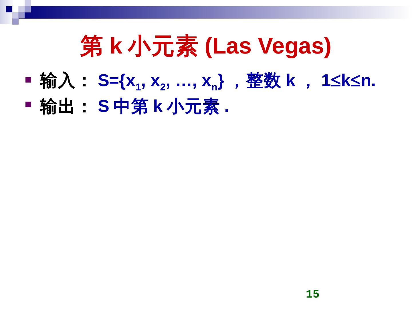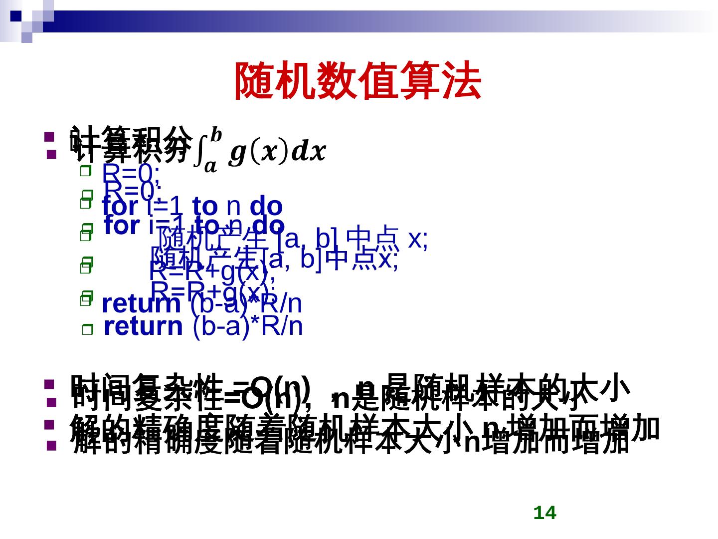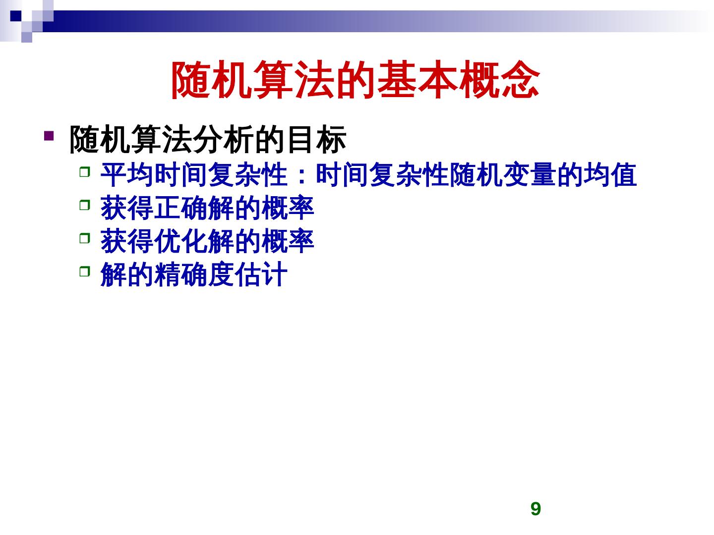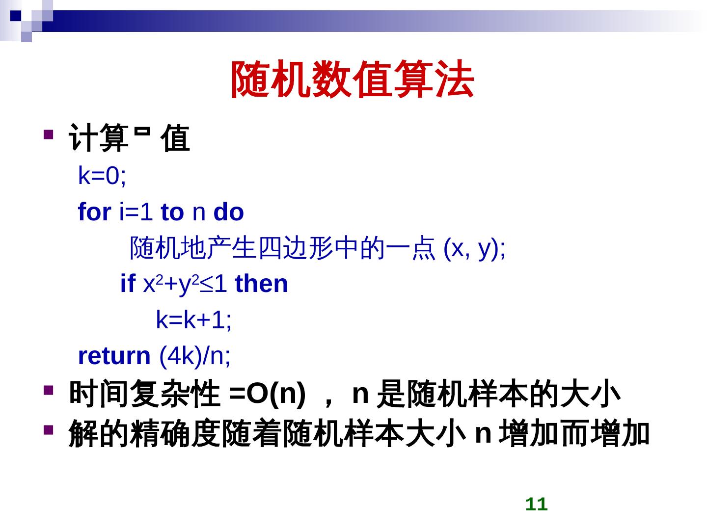 随机算法是一种使用概率和统计方法在其执行过程中对于下一计算步骤作出随机选择的算法. 随机算法的优越性. 对于有些问题:算法简单; 对于有些问题:时间复杂性 ...