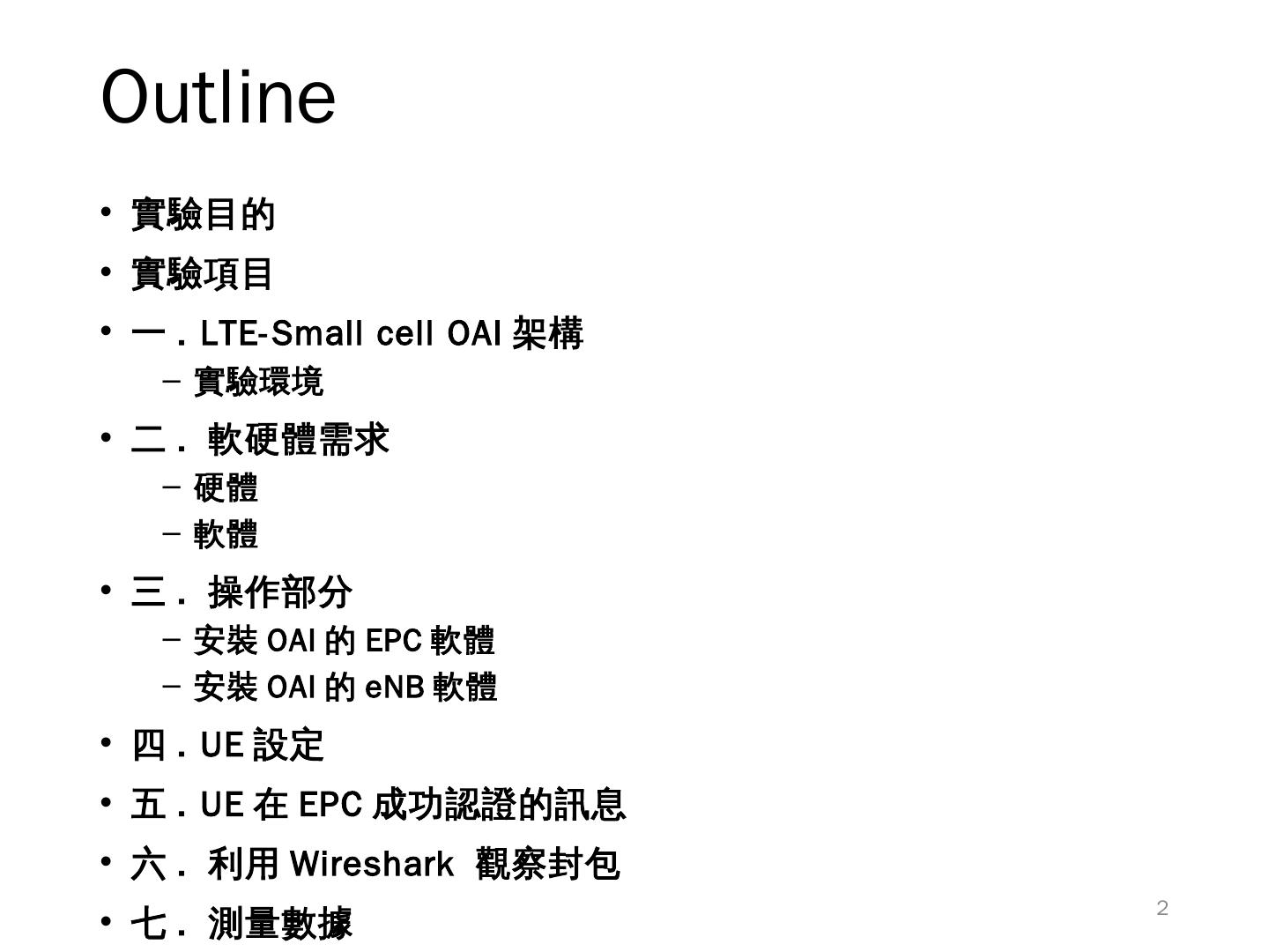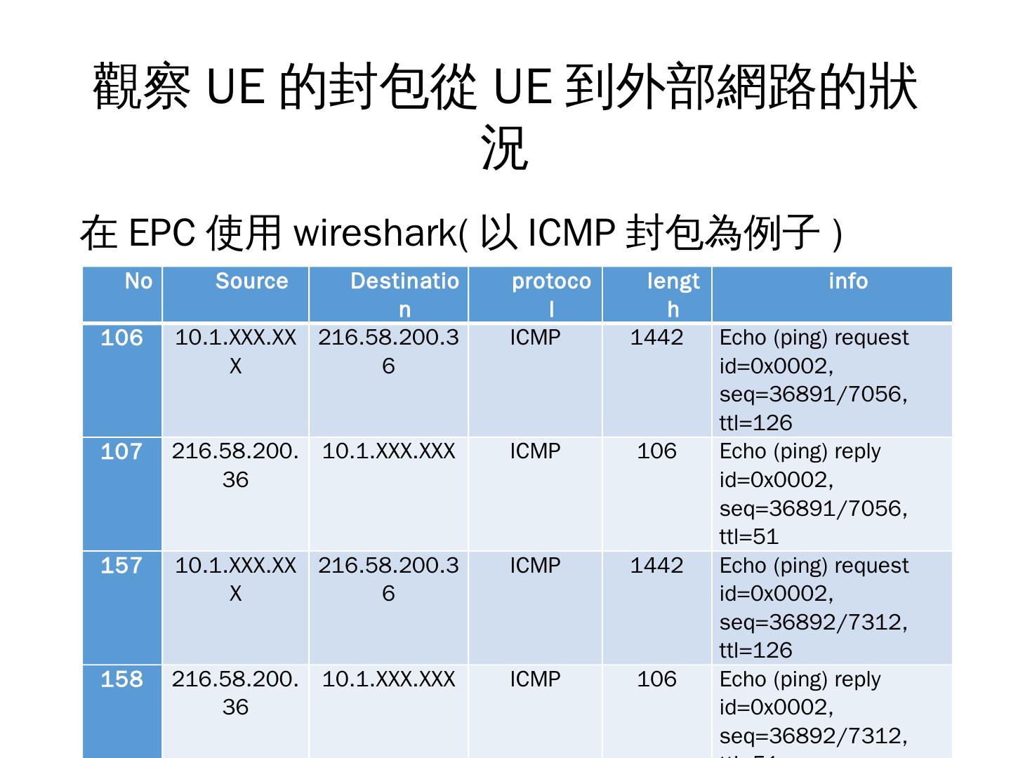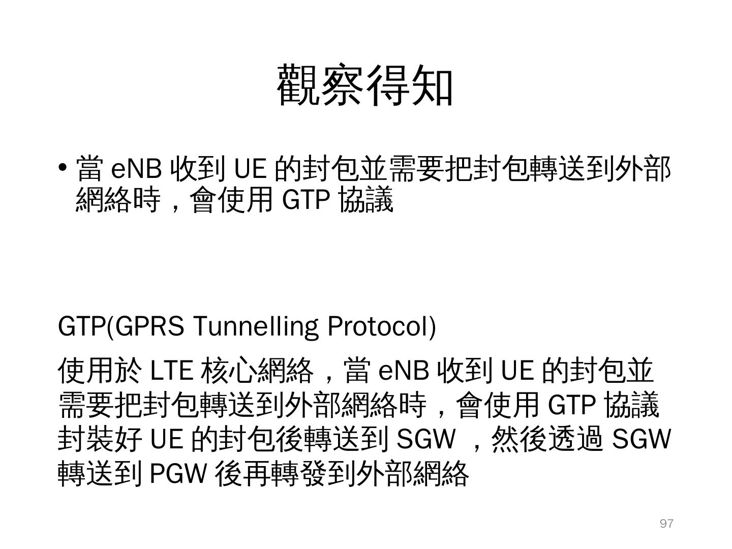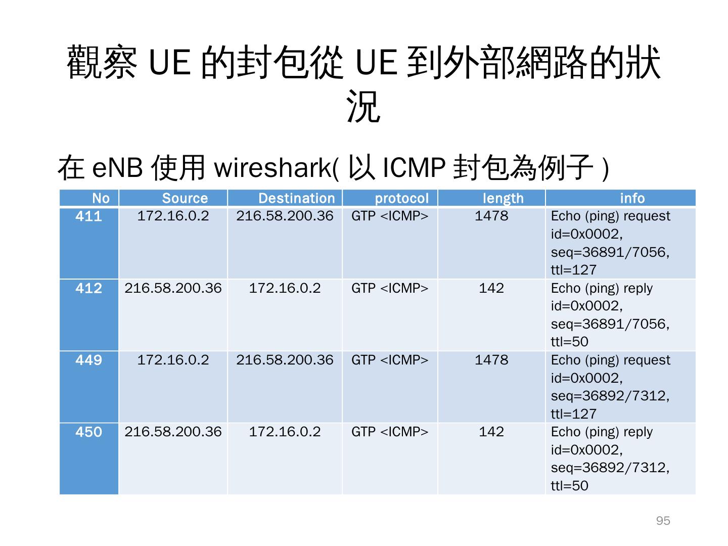 利用Wireshark 觀察封包; 七. ... Cell數據傳輸並進行協定與連線資訊觀察,進一步理解量測分析LTE網路效能; 實驗後 ... ALL, wireshark, 1.10.6 (ubuntu), 觀察協定 ..... 收到UE的封包並需要把封包轉送到外部網絡時,會使用GTP協議封裝好UE的封包後 ...