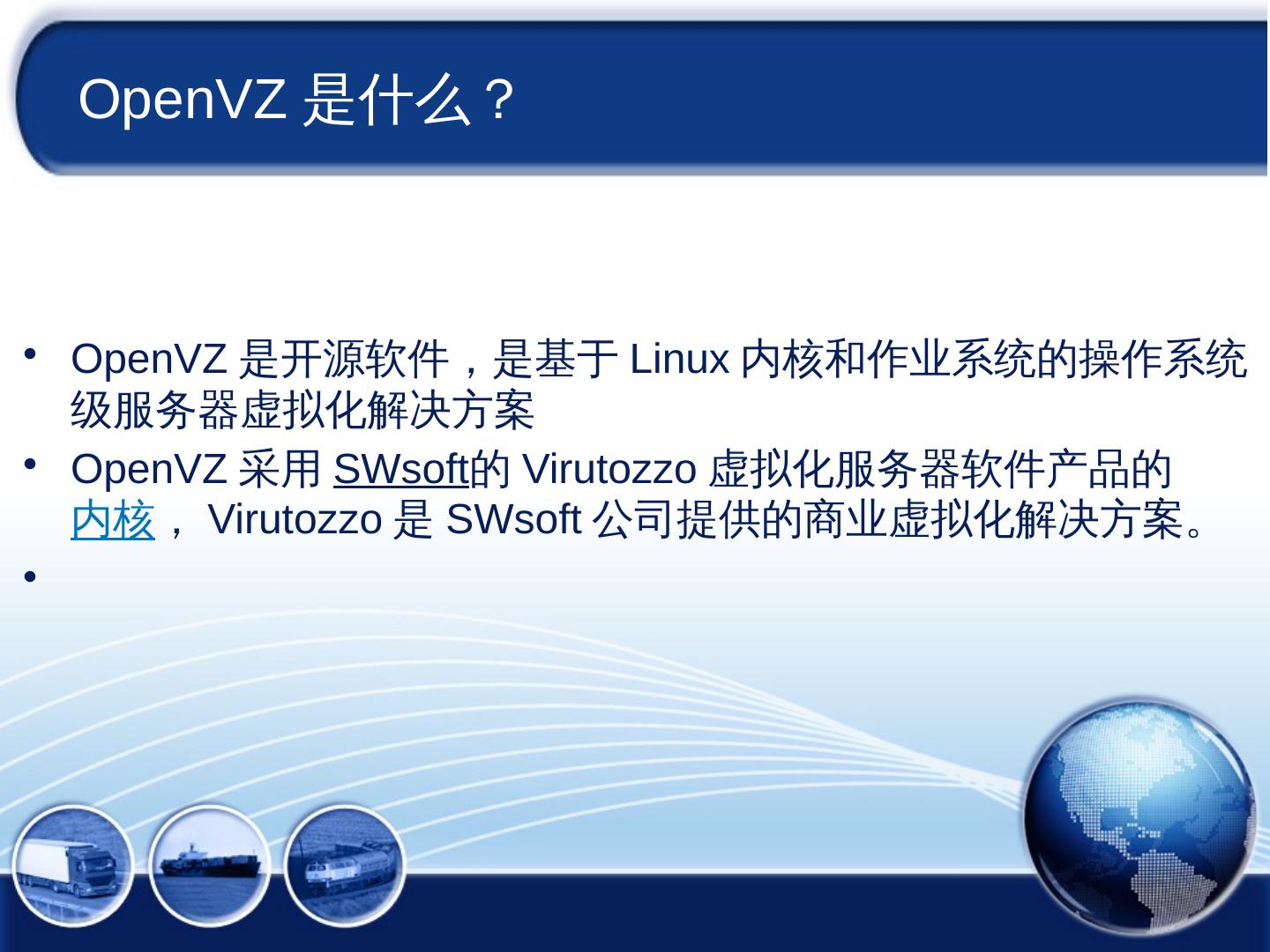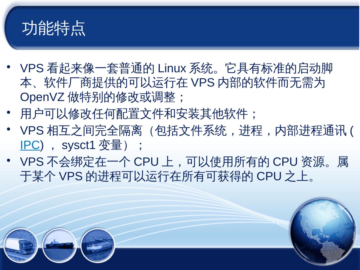 OpenVZ是开源软件,是基于Linux内核和作业系统的操作系统级服务器虚拟化解决方案 ... 上创建多个隔离的虚拟专用服务器(VPS)并以最大效率共享硬件和管理资源。 ... OpenVZ支持高达64个CPU和64G内存,一个单独的虚拟环境可以扩放到整个 ...