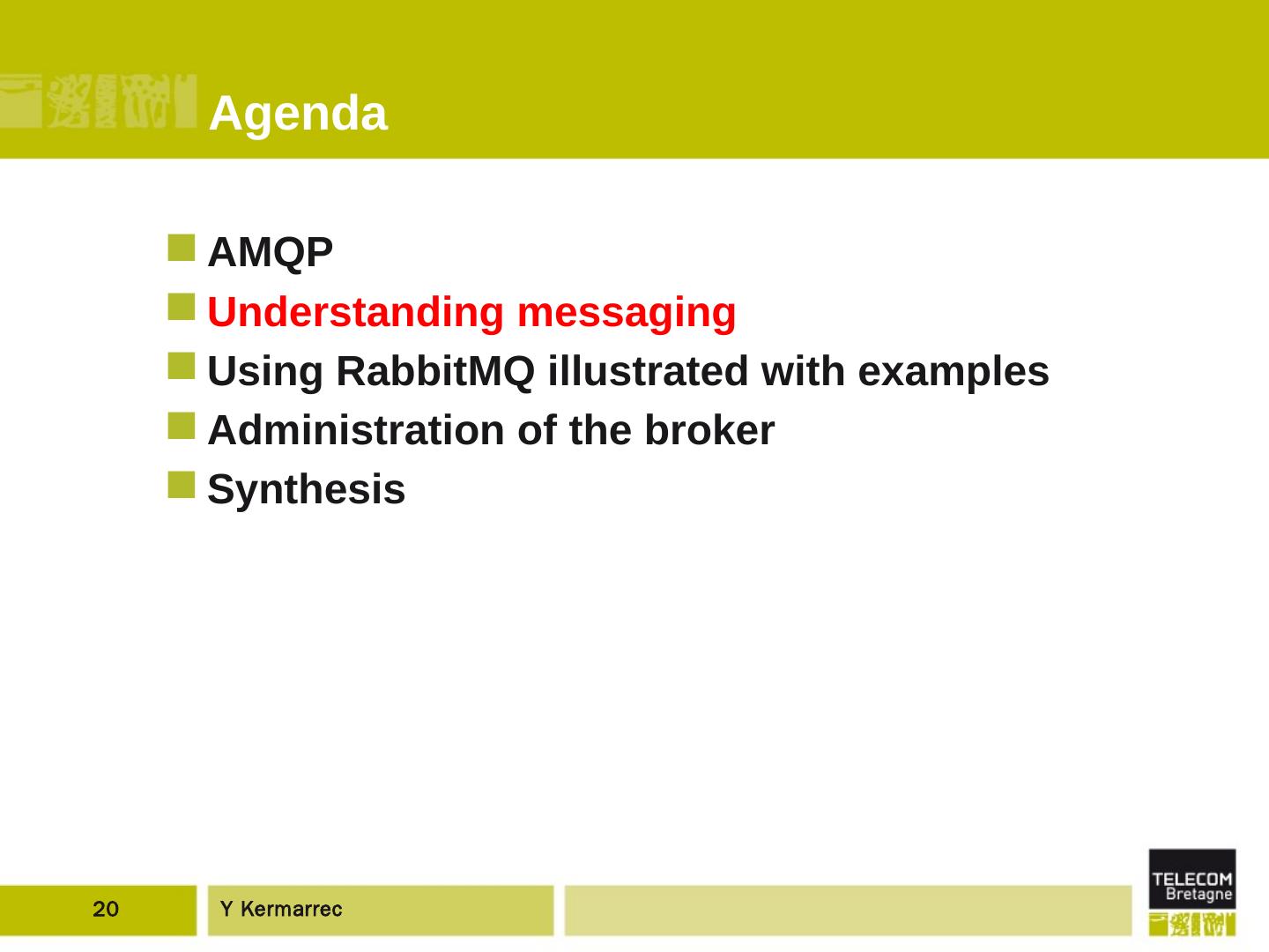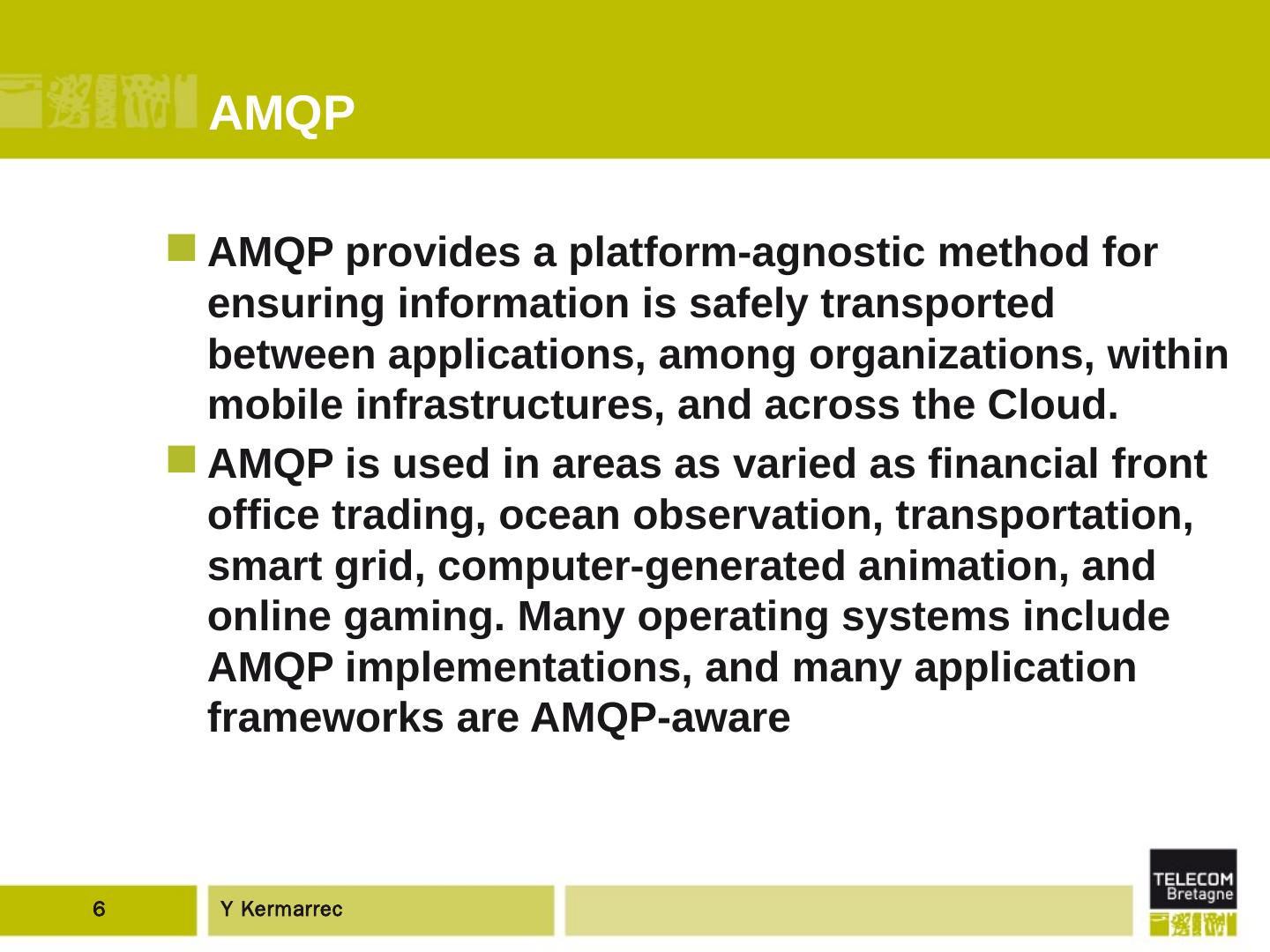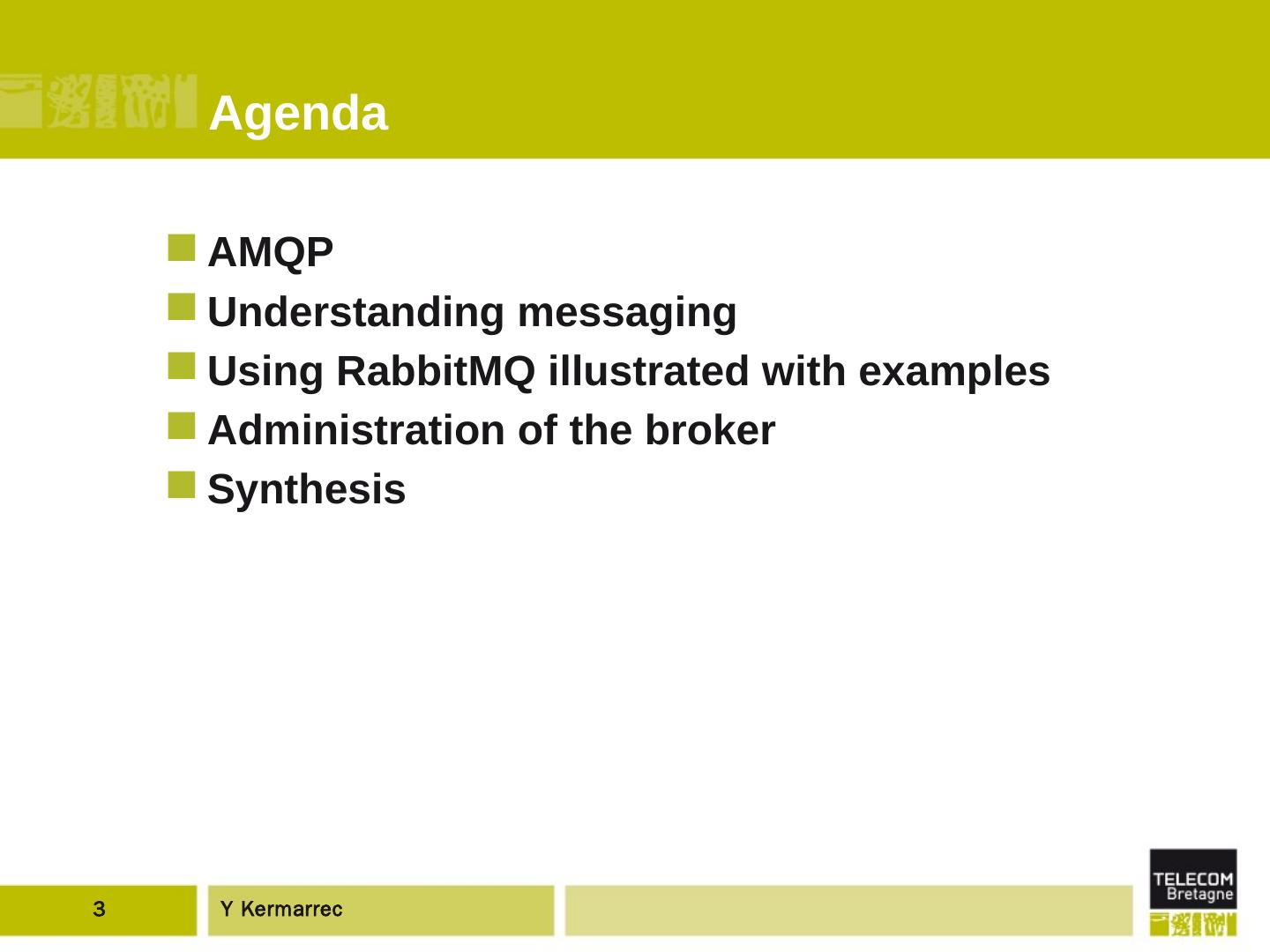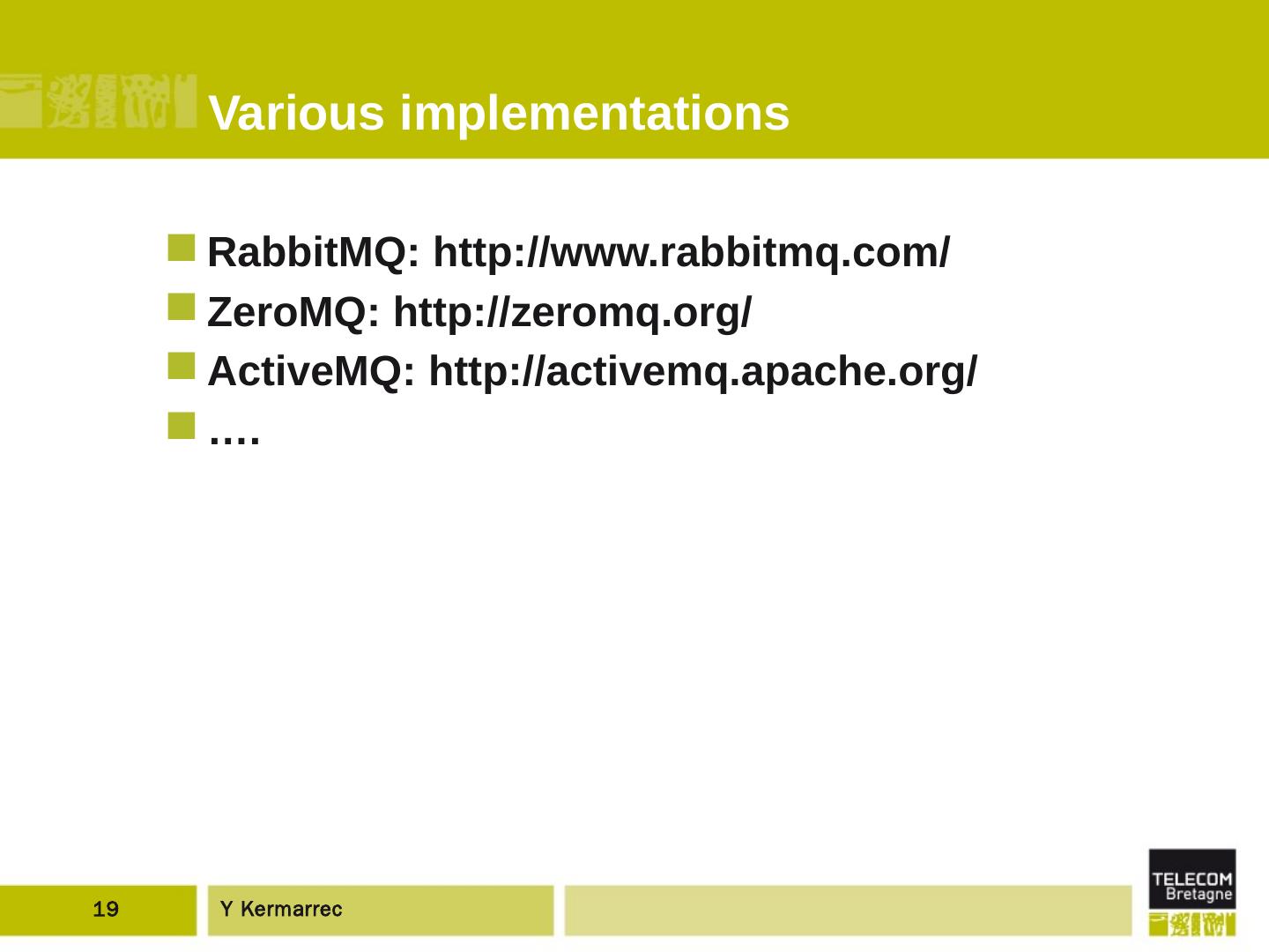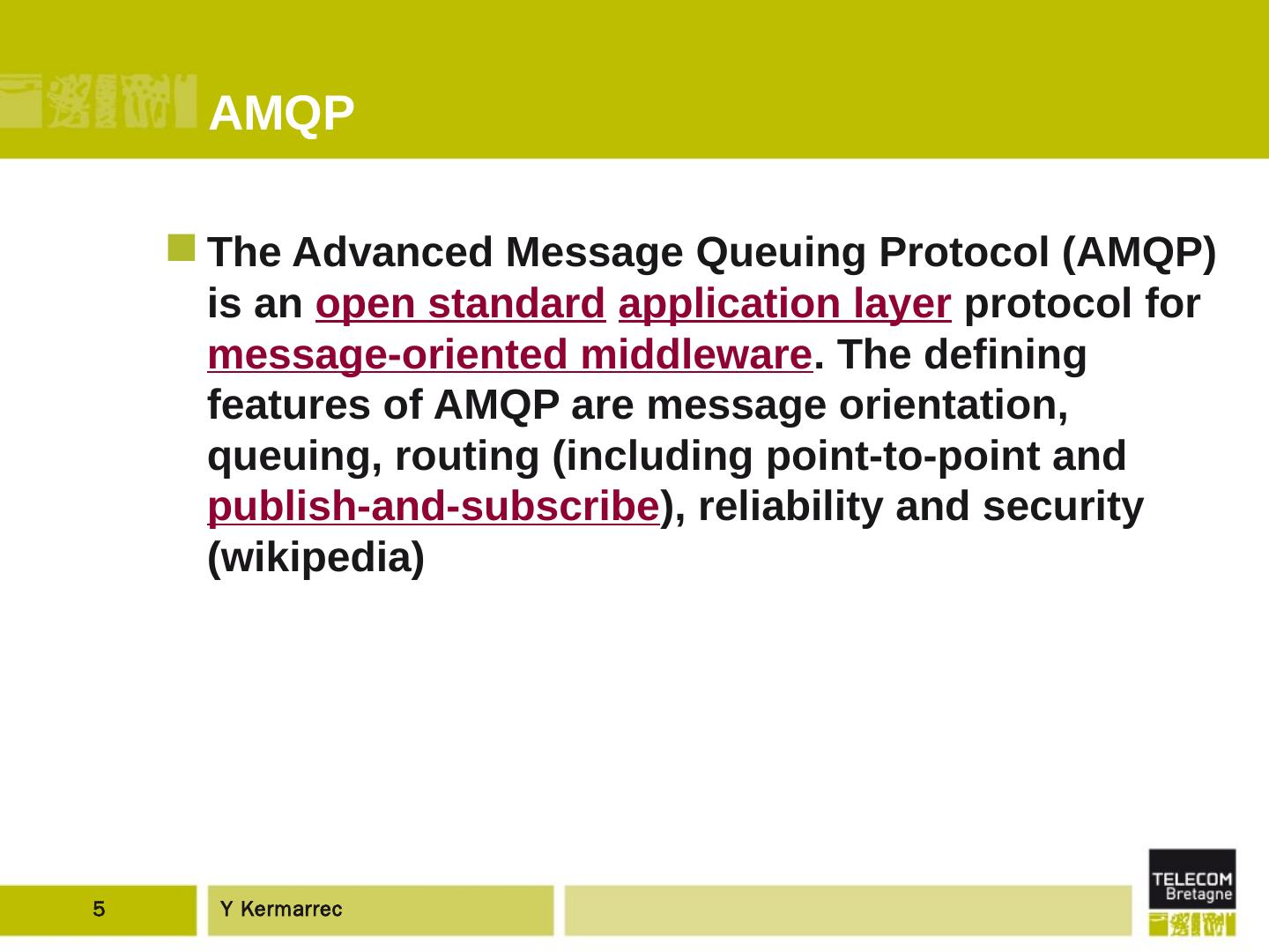 RabbitMQ : A MOM (Message Oriented Middleware). Yvon Kermarrec. With figures from RabbitMQ tutorial and from “RabbitMQ in action”. 1. Y Kermarrec.