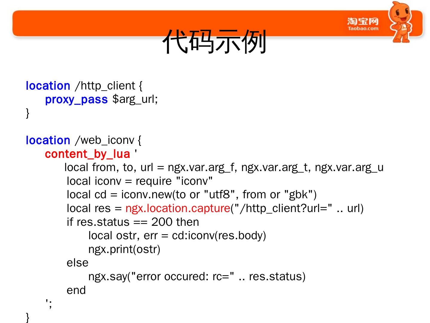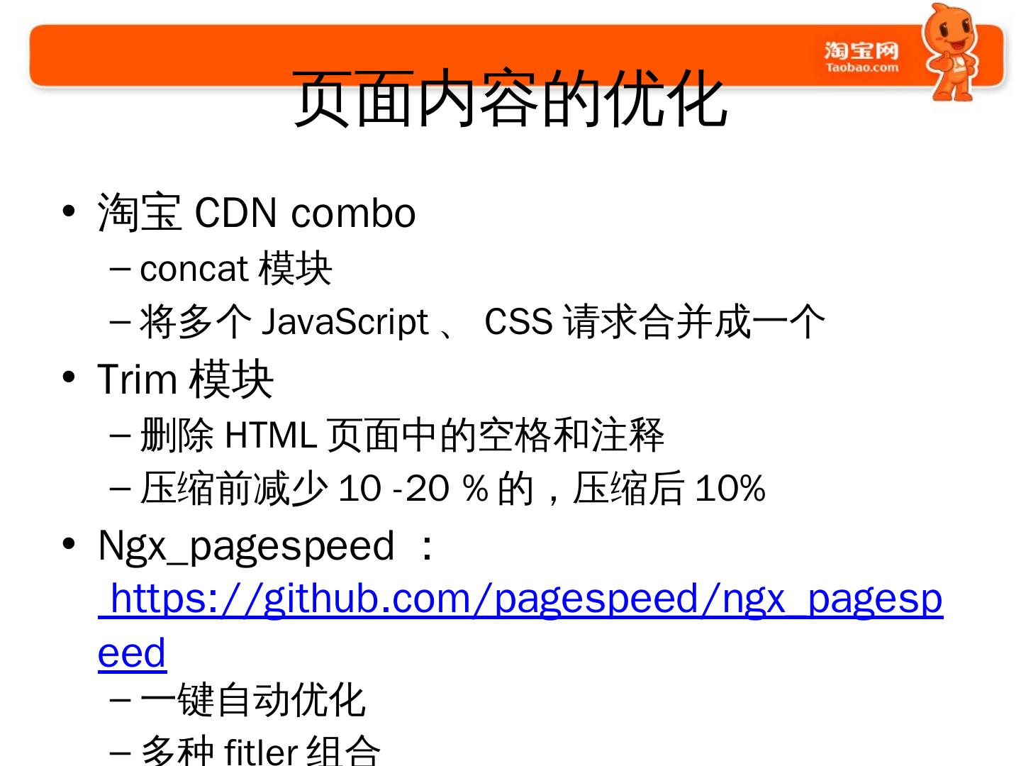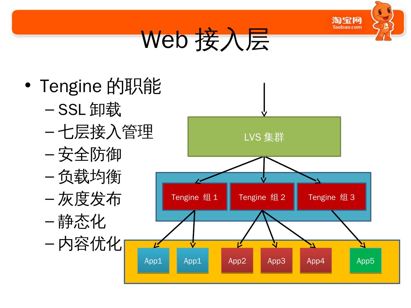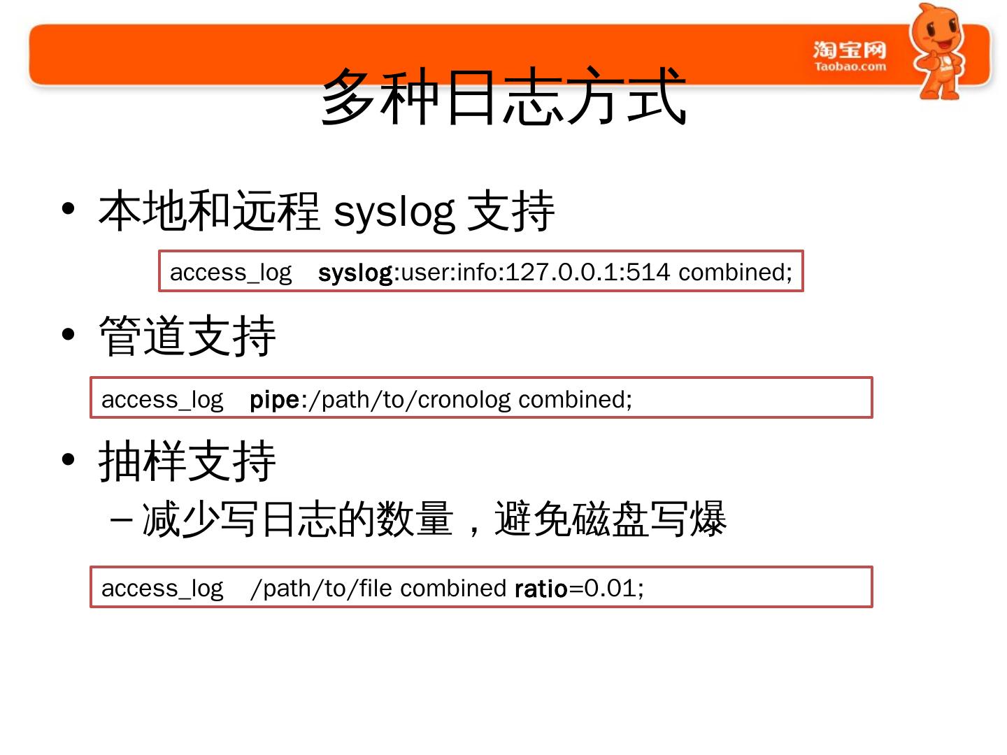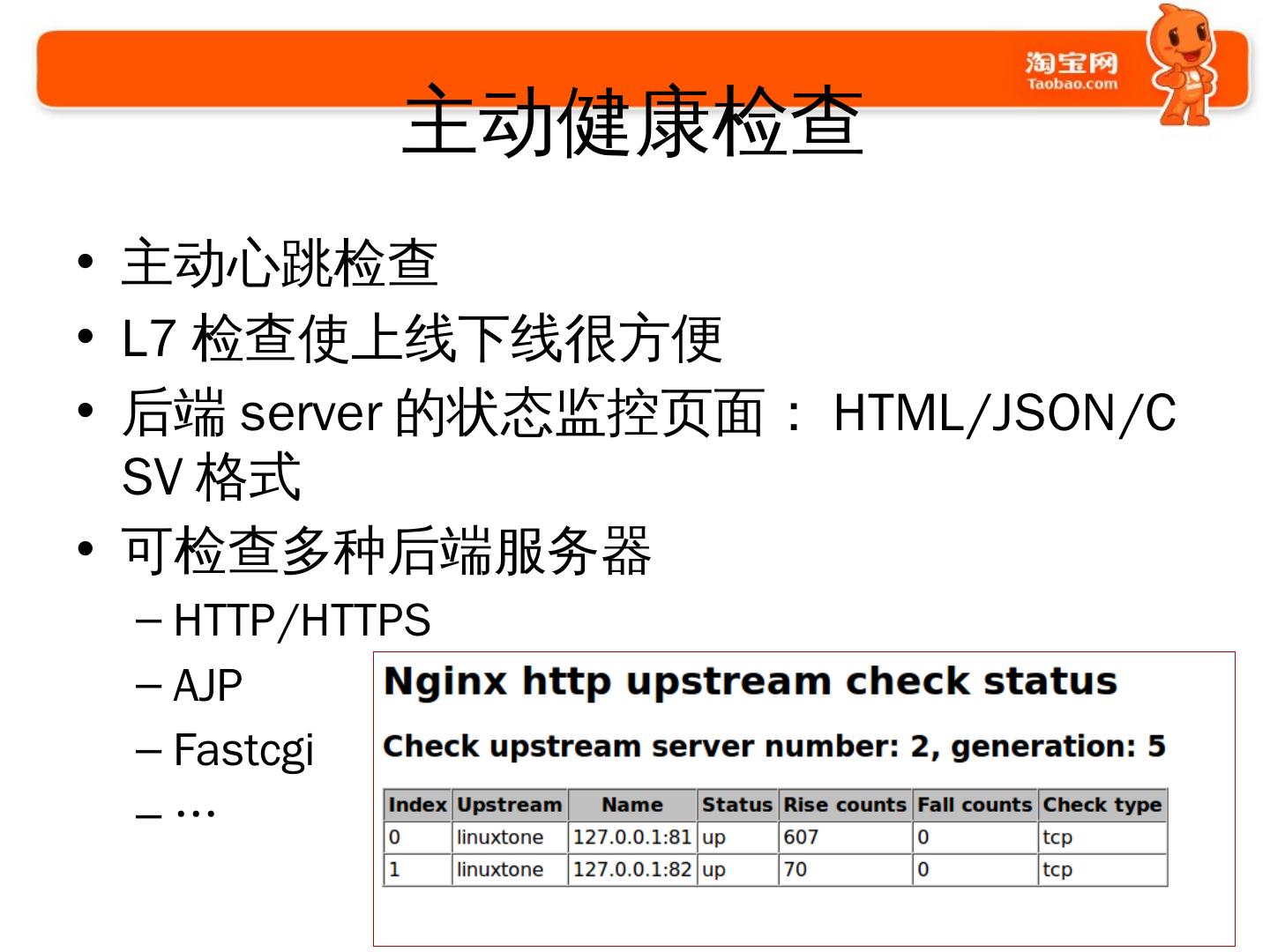 使用Nginx的过程. 2009年开始使用和探索; 2010年开始开发大量模块. 通用的; 业务的. 2011年开始. 修改Nginx的核心代码; 启动Tengine项目并开源.