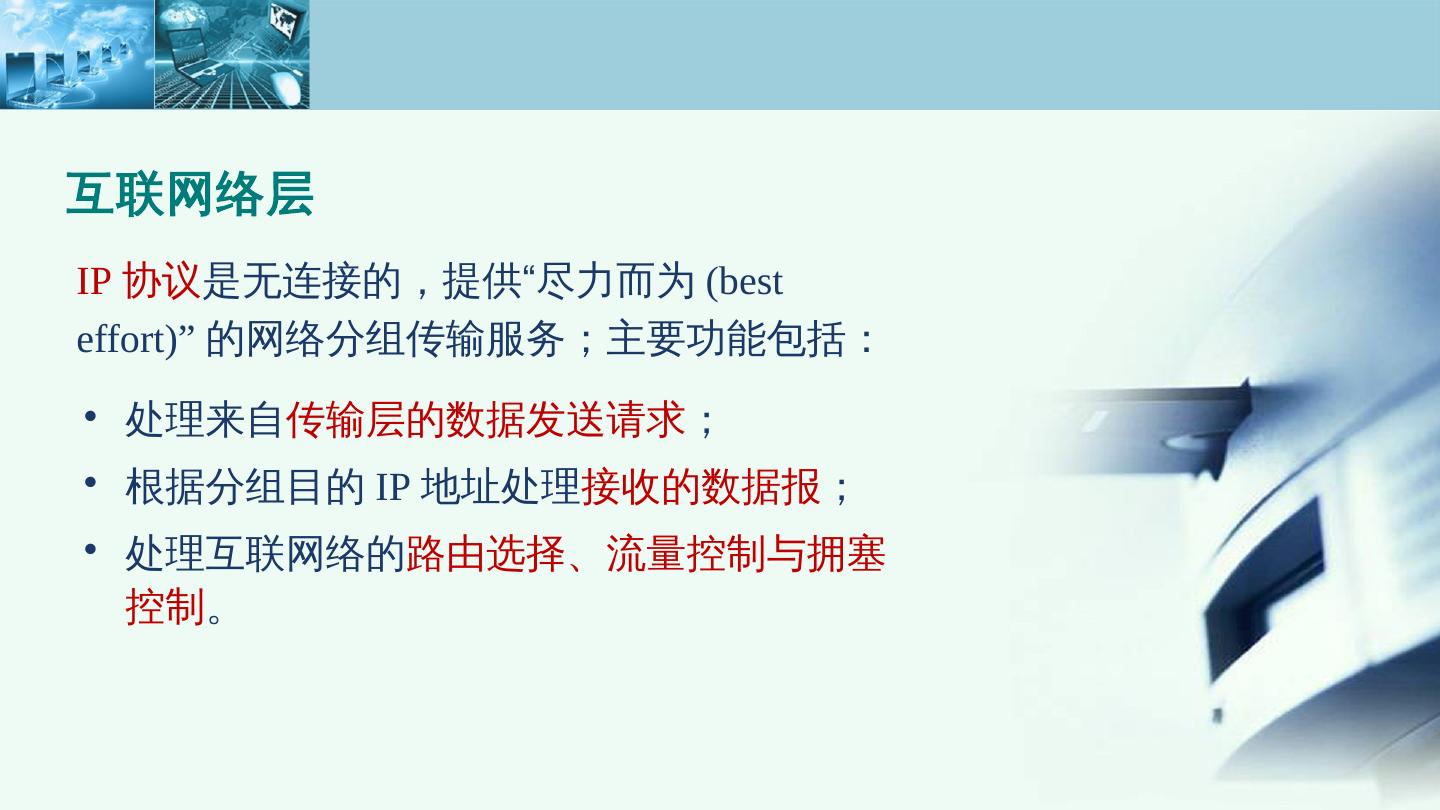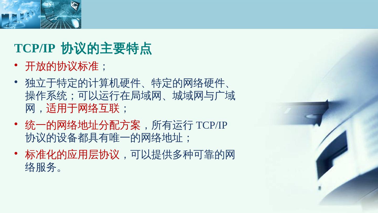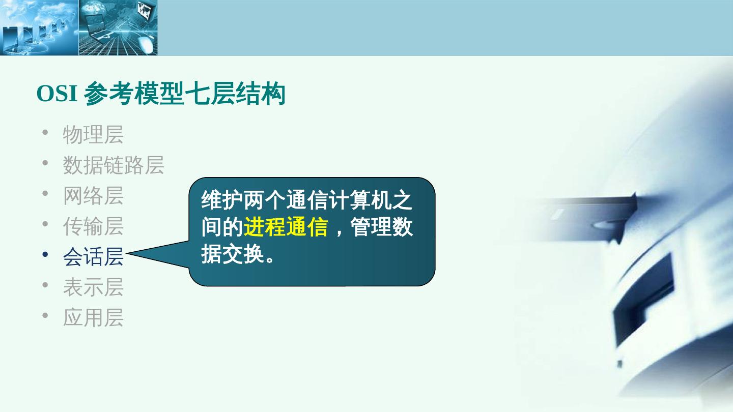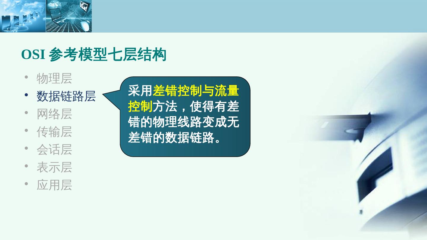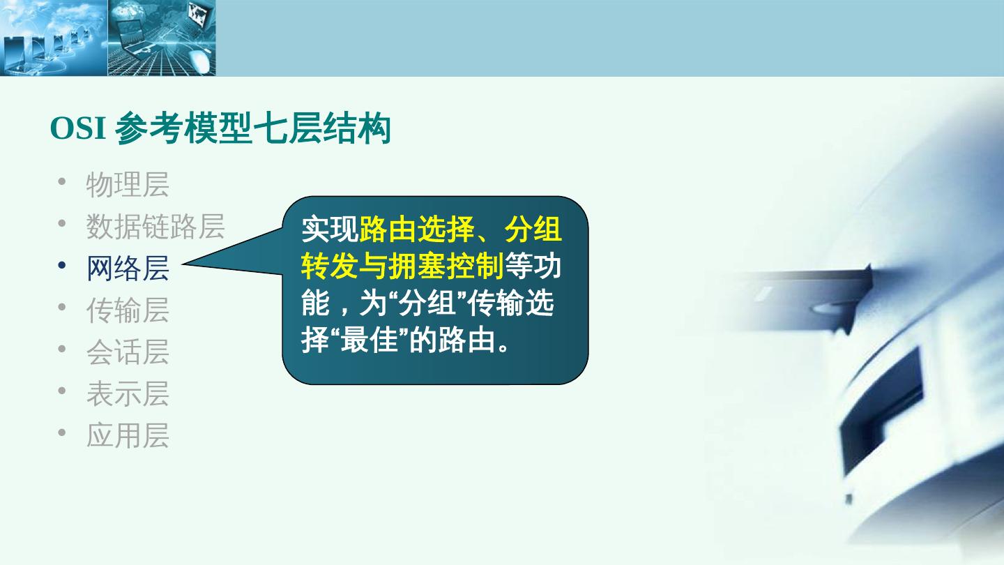 第一章 计算机网络概论 ... 邮政系统和计算机网络系统相似之处 ... 不同系统的最低层之间存在着“物理”通信; 不同系统的对等层次之间存在着“虚拟”通信; 高层使用 ... 为应用软件提供多种网络服务,例如文件服务、数据库服务、电子邮件与其它服务等。