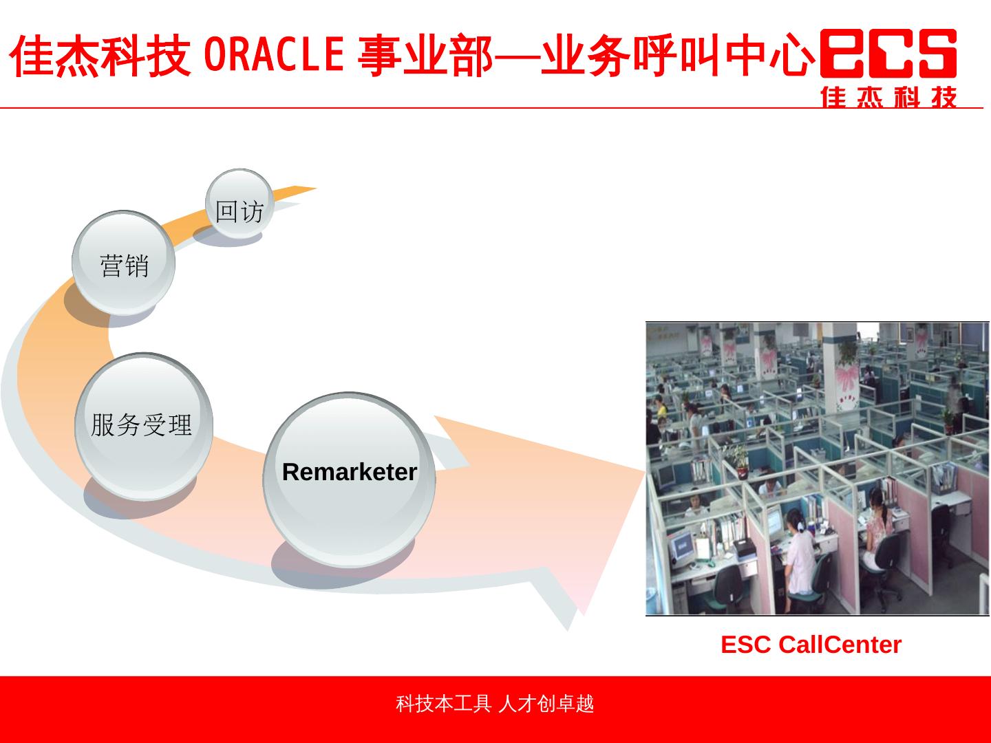 11 .佳杰科技 ORACLE 事业部 — 业务呼叫中心 科技本工具 人才创卓越 ESC CallCenter Remarketer 服务受理 营销 回访