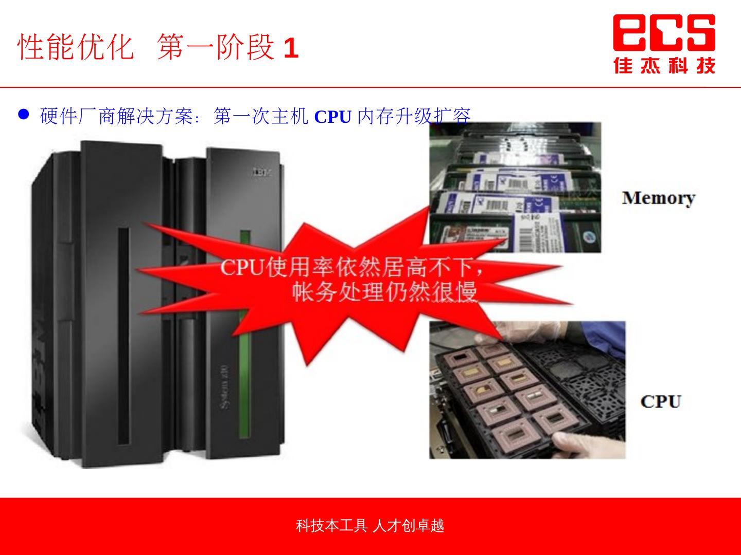 20 .科技本工具 人才创卓越 硬件厂商解决方案: 第一次主机 CPU 内存升级扩容 性能优化 第一阶段 1