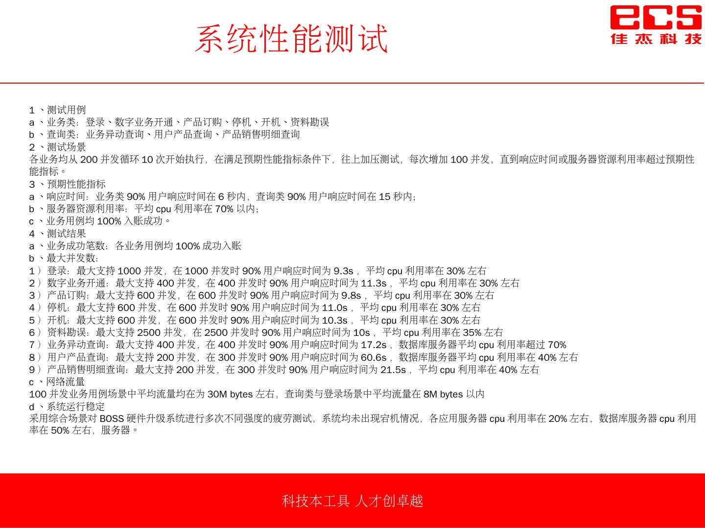 26 .性能优化 第二阶段 -- 资源共享 四方共赢 佳杰科技是开发商、集成商重要 的 技术与商务合作 伙伴 ,并成为他们强大的技术力量支持。佳杰科技在开发商集成商与 ORACLE 之间起到桥梁纽带作用!在本项目中,各方通过力合作: 开发商提供现场的 详细历史及现有情况 分析报告、配置报告 佳杰 公司 调度 硬件 、软件工程 师现场服务, 并进行问题诊断分析、问题解决 开发商对于诊断出来的相关 SQL 语句程序进行优化 调整 用户、 开发商 、 佳杰 共同对性能调整进行反复测试 科技本工具 人才创卓越