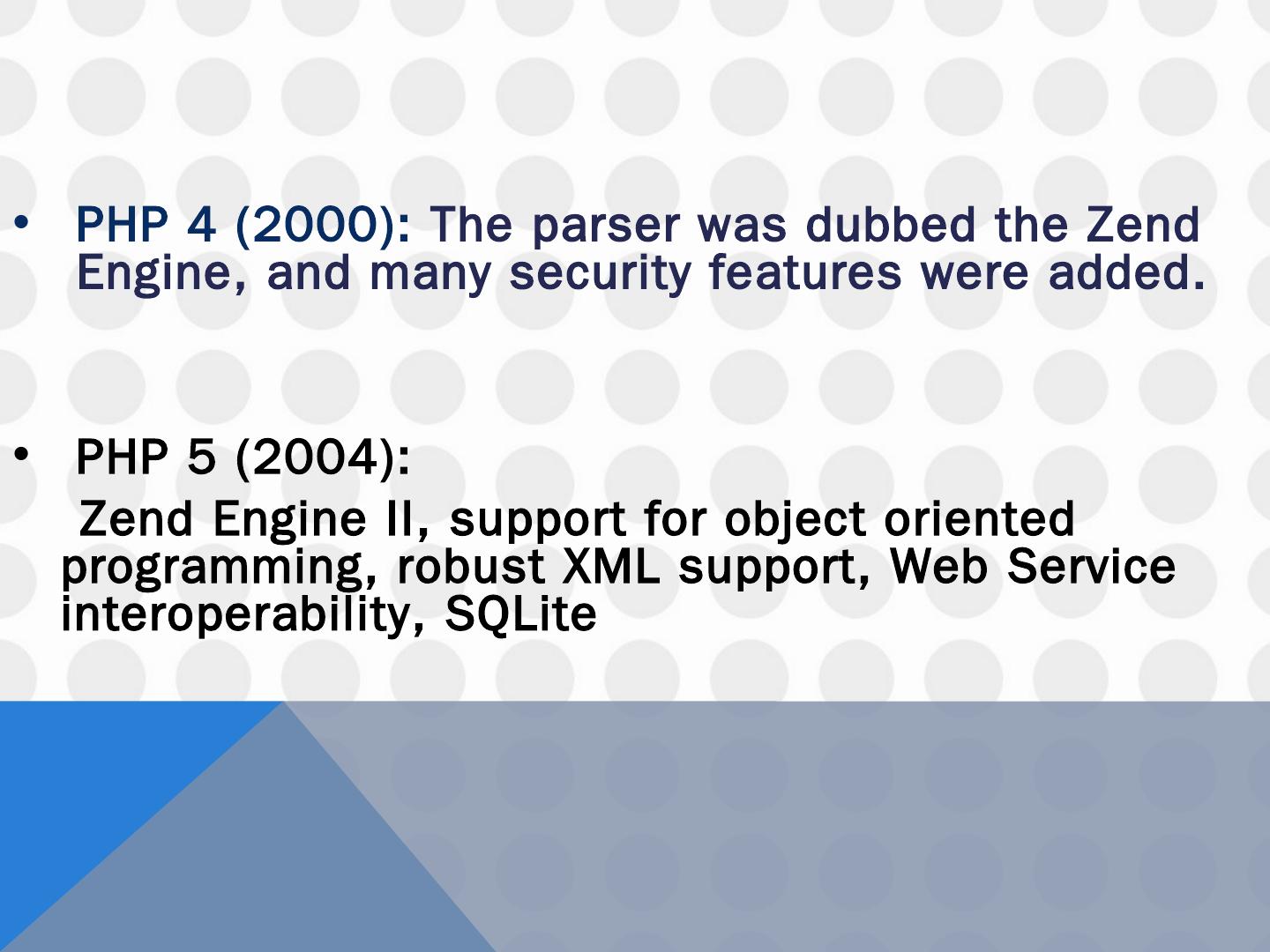 Steven Taylor. PHP was created by Rasmus Lerdorf in 1994. It was initially server -side, traffic tracking script. PHP 2 (1995) Added database support, file uploads ...