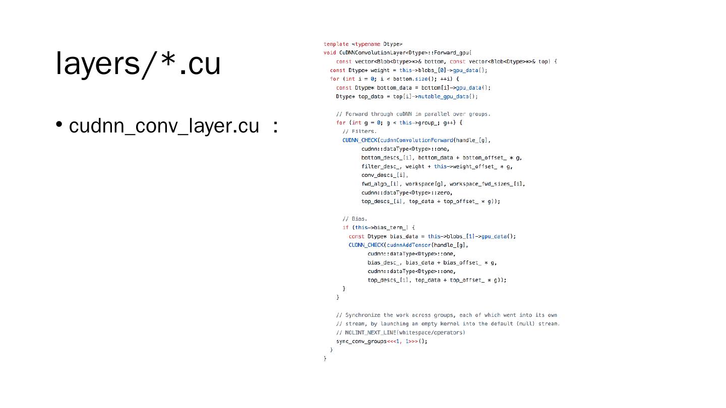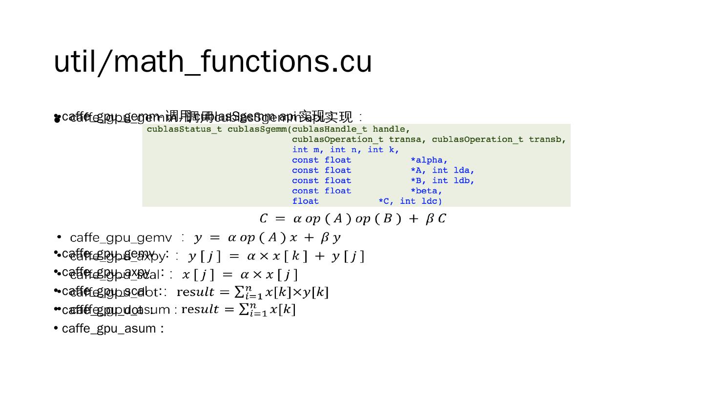 Caffe中CuDNN及CuBlas 函数解析. 陈乐融. 背景-caffe源码结构. Blob:是基础的数据结构,是用来保存学习到的参数以及网络传输过程中产生数据 ...