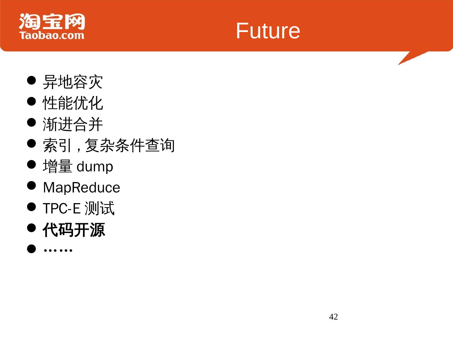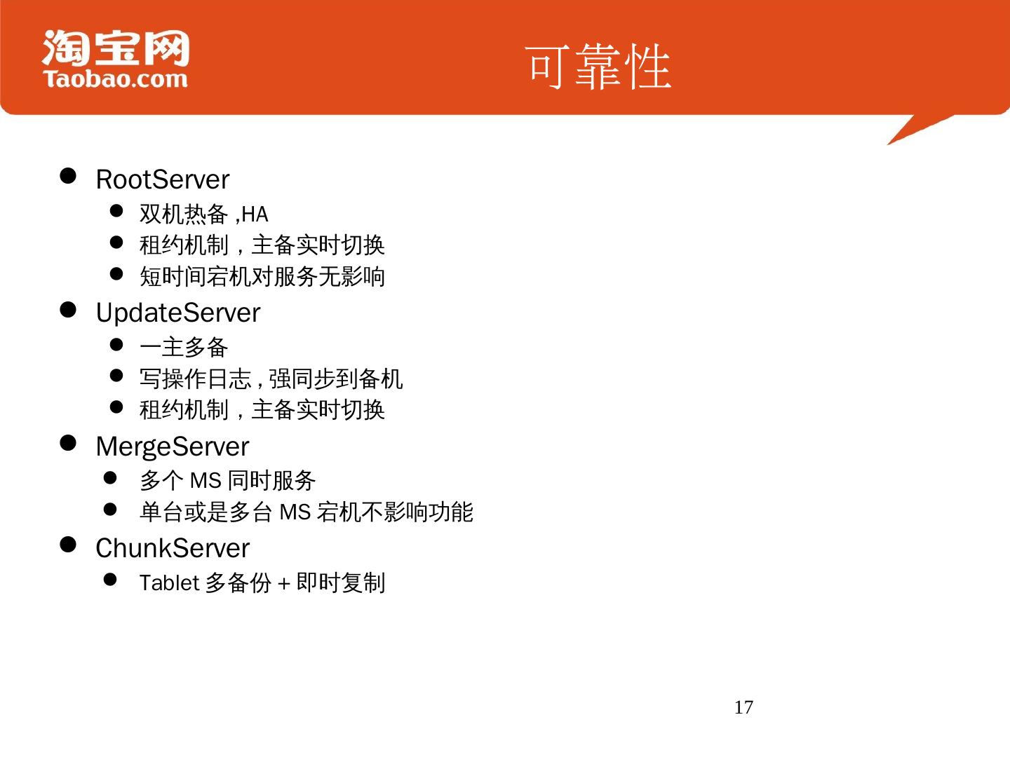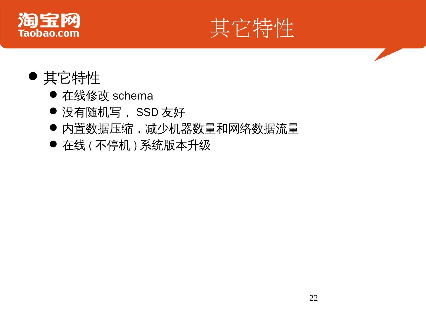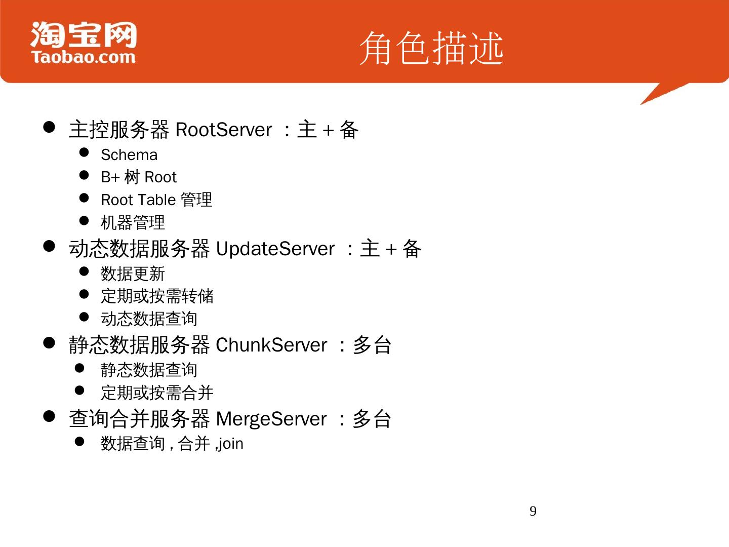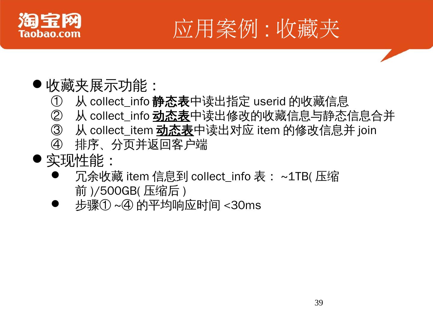 OceanBase internals. 2011.6. TaoBao-CoreSystem-Storage. qushan. 1. 存储需求; 架构概览; 主要流程; 系统特性; 数据模型; 应用接口; 应用案例; 未来展望. 2.