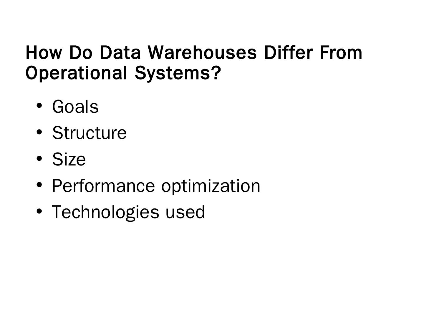 7 .Goals Structure Size Performance optimization Technologies used How Do Data Warehouses Differ From Operational Systems?