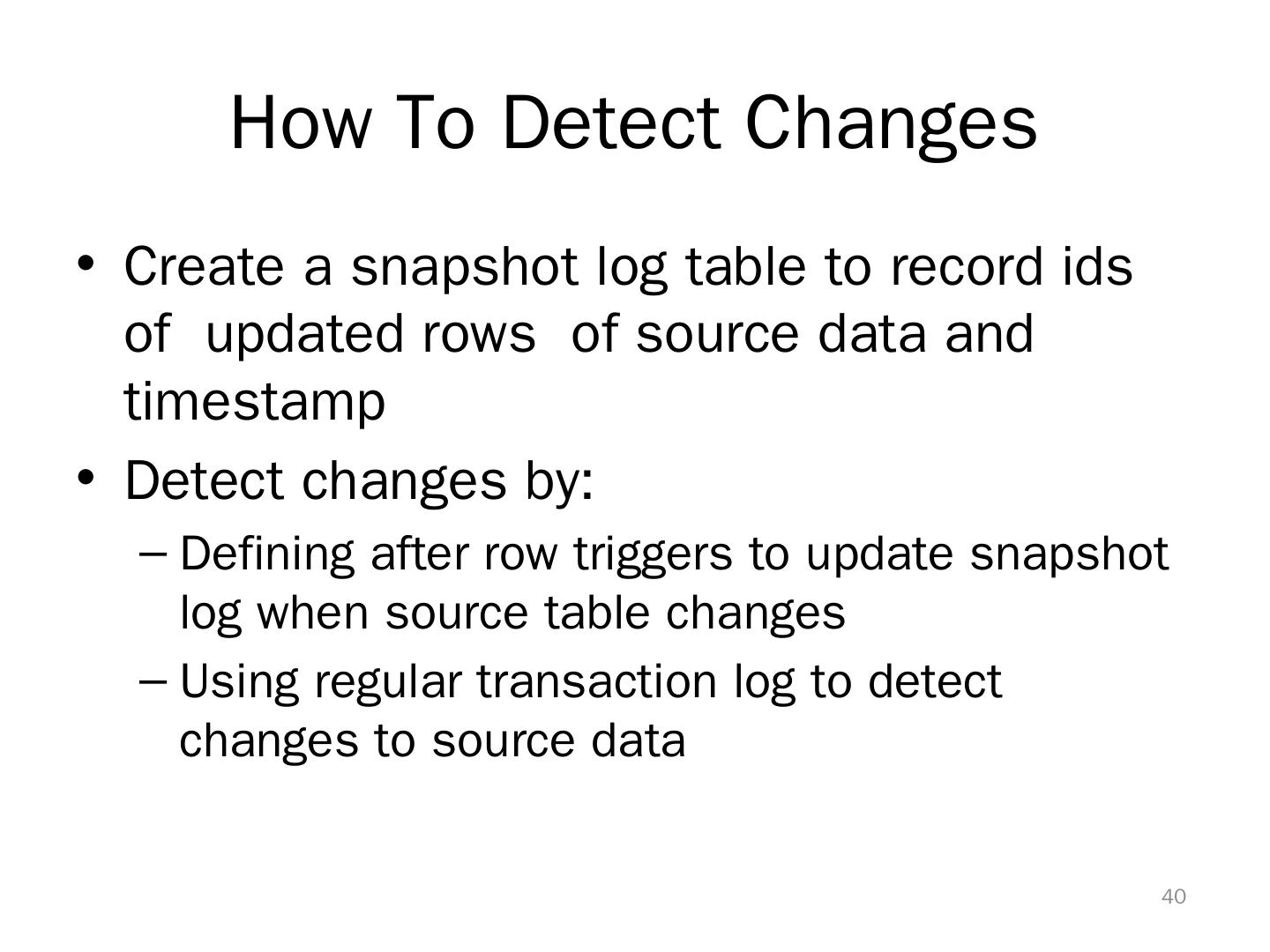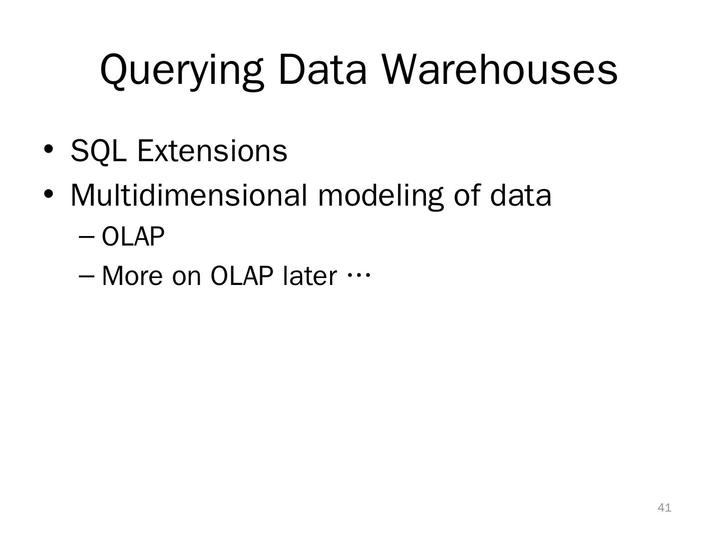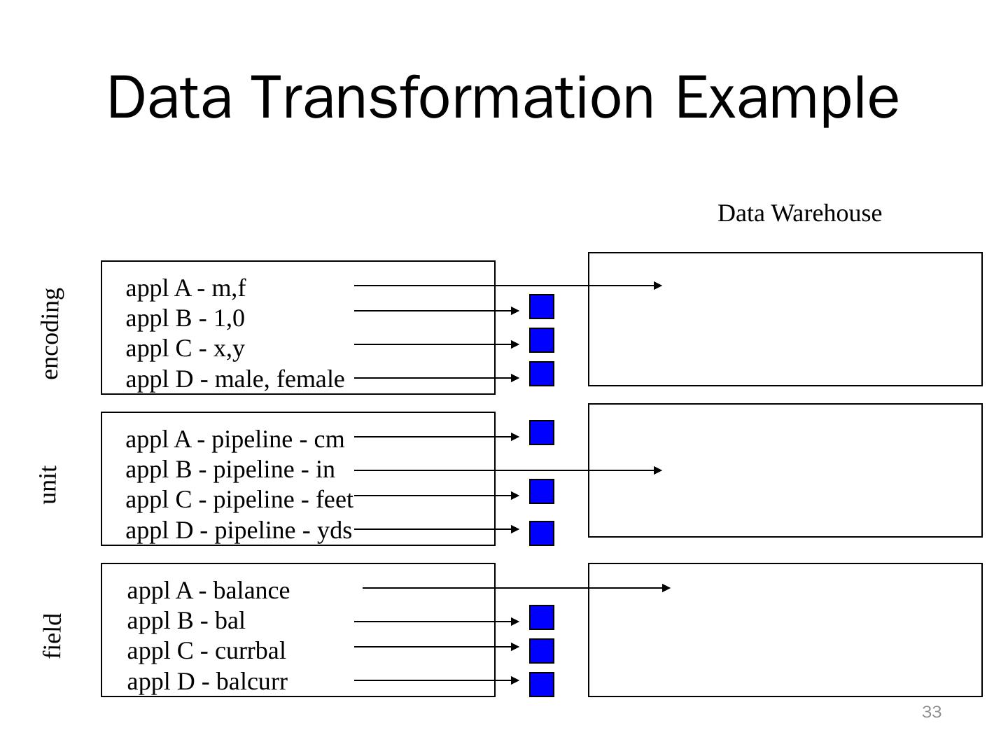 29 .29 Granularity in Warehouse Solution is to have dual level of granularity Store summary data on disks 95% of DSS processing done against this data Store detail on tapes 5% of DSS processing against this data