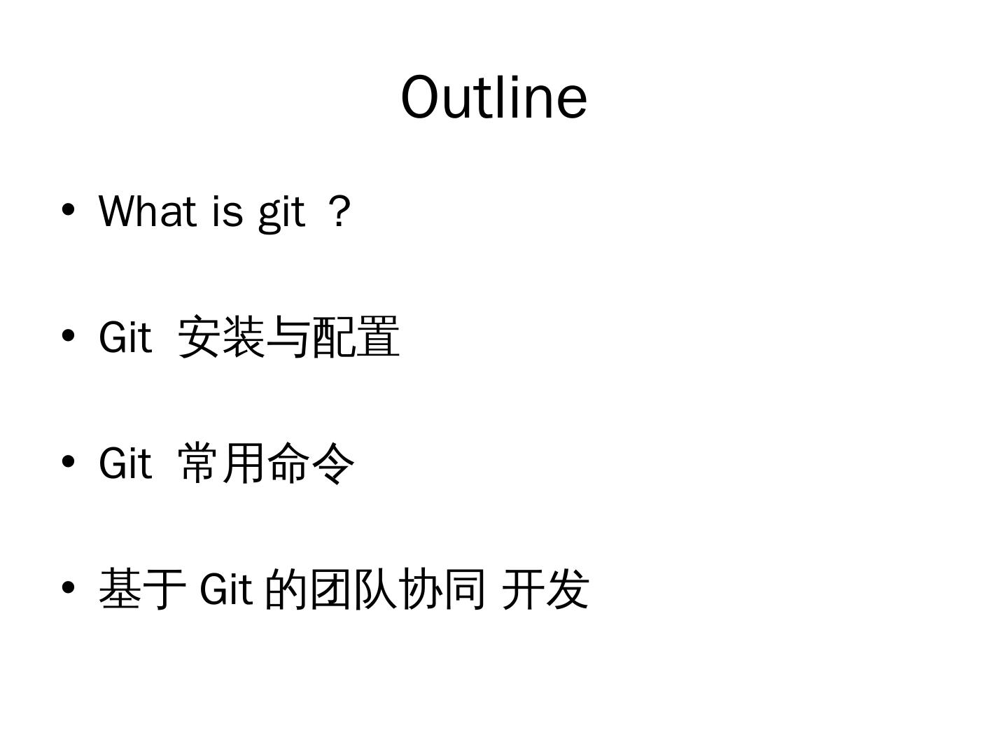Introduction to Git. Lu Li. 2012-10-29. Outline. What is git? Git 安装与配置. Git 常用命令. 基于Git的团队协同开发. What is Git? Git 是一个开源的分布式版本控制 ...