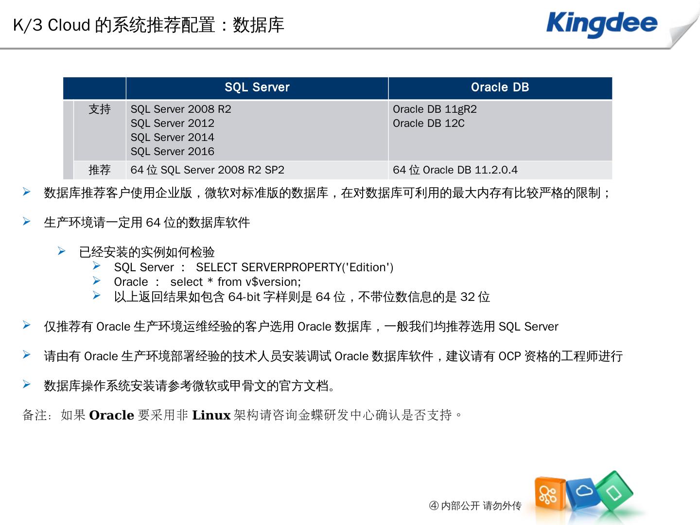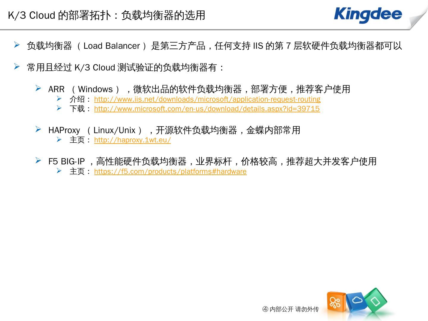 K/3 Cloud管理中心(MC):1台,管理中心负荷很低,也不用时刻在线,故不需要高可用. ④内部公开 请勿外传 ... HAProxy(Linux/Unix),开源软件负载均衡器,金蝶内部常用 .... 建议在建库时就预设好,并且建议建库时设为自动内存管理(AMM).