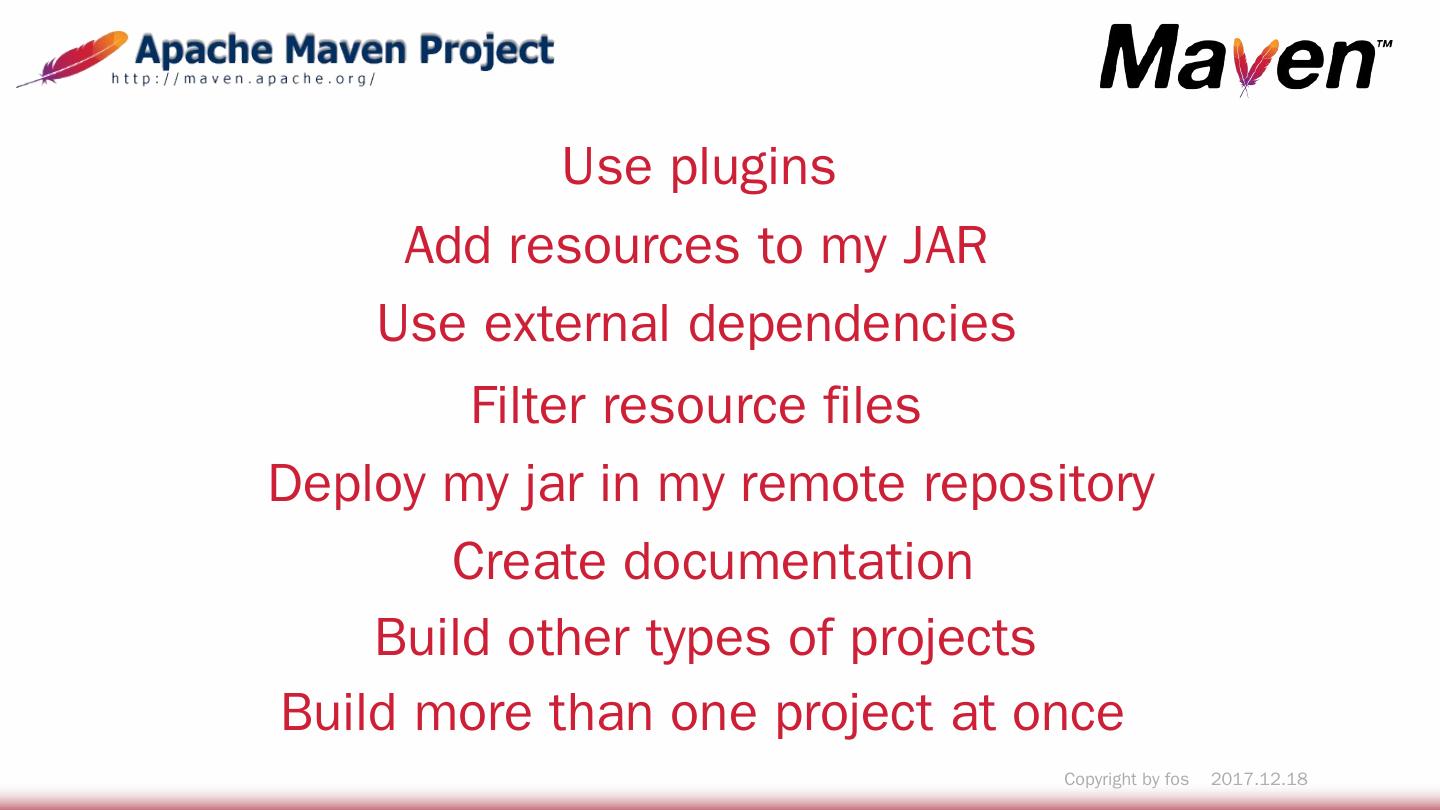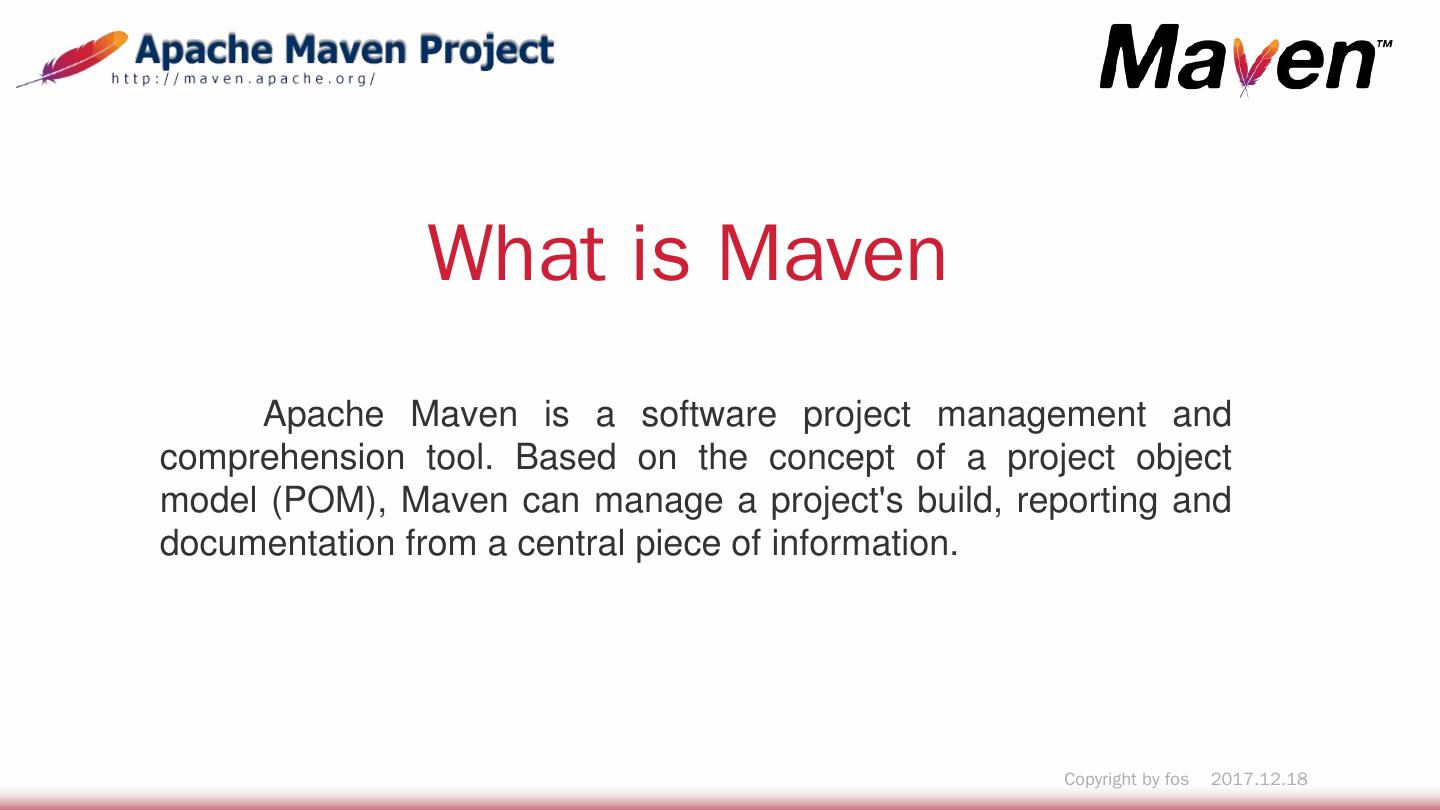 Based on the concept of a project object model (POM), Maven can manage a project's build, reporting and documentation from a central piece of information.