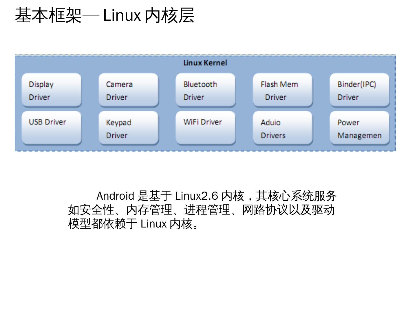 NET应用程序,能在任何Mono支持的平台上运行, 包括Linux、 Unix、FreeBSD ... Android是基于Linux2.6内核,其核心系统服务如安全性、内存管理、进程管理、网路 ...