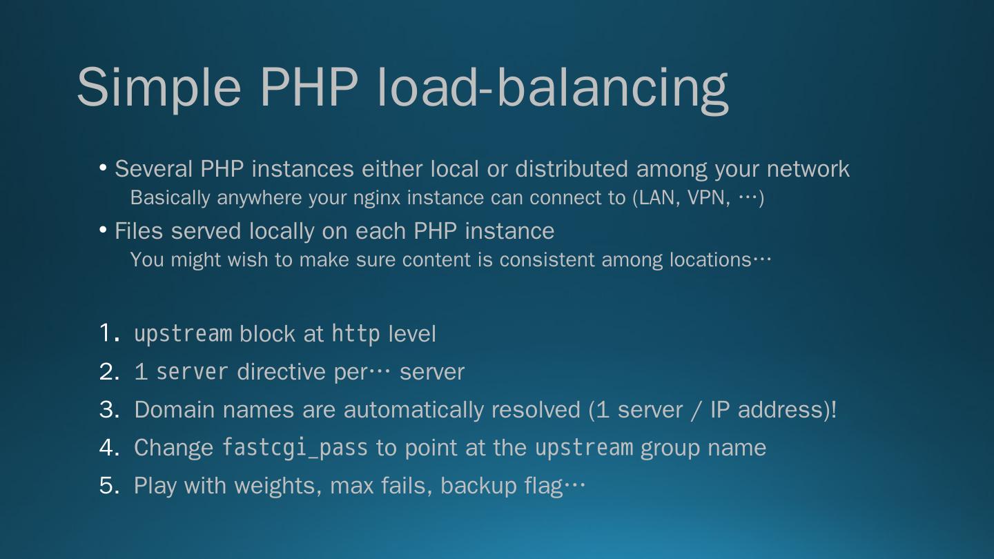 Afficionado of nginx for 3 years; Using PHP for 10+ years despite its inherent flaws. Basics. Step-by-step basic nginx + PHP-FPM setup. From Apache to nginx ...