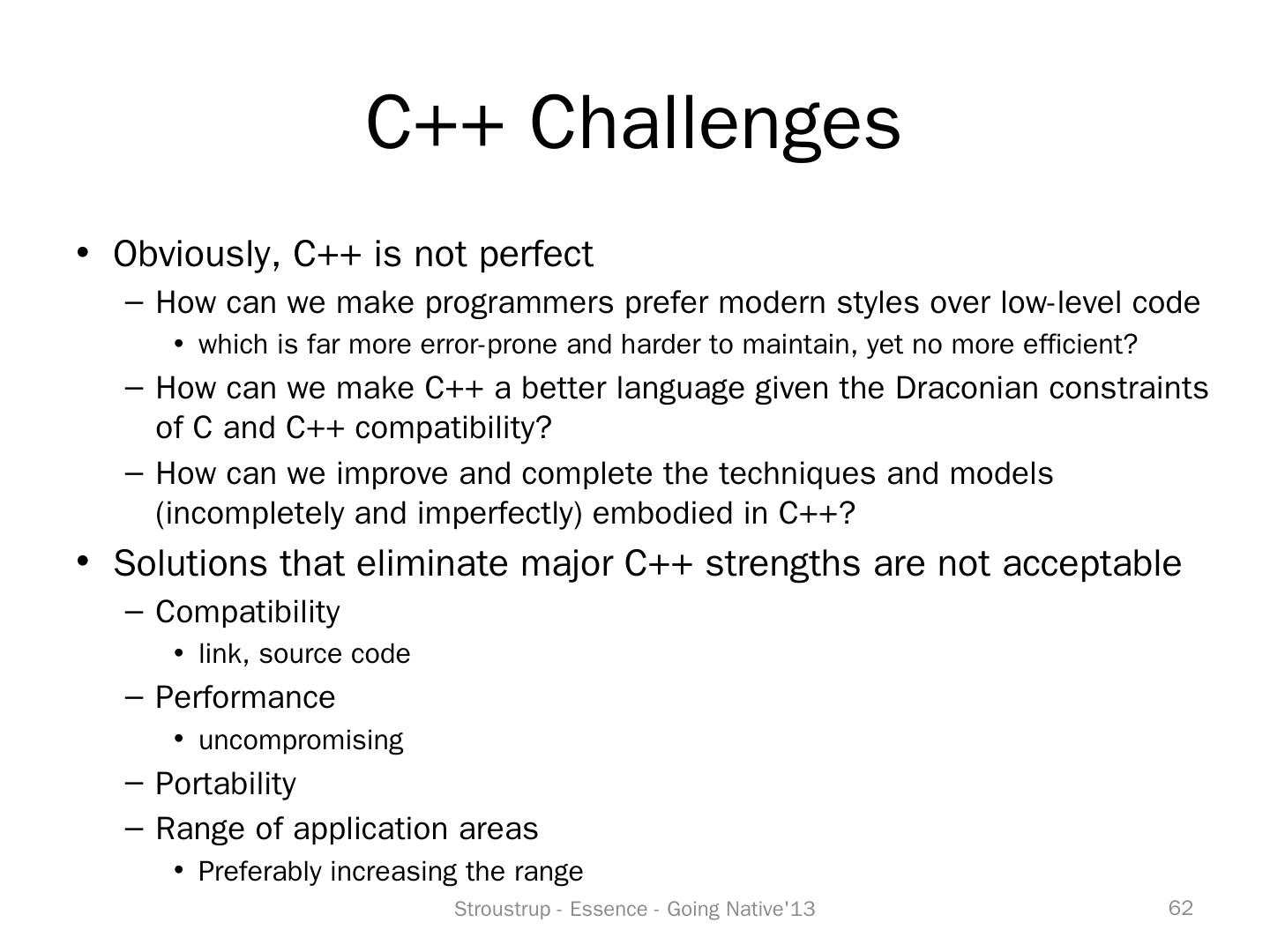C++11 is being deployed and the shape of C++14 is becoming clear. This talk examines the foundations of C++. What is essential? What sets C++ apart from ...