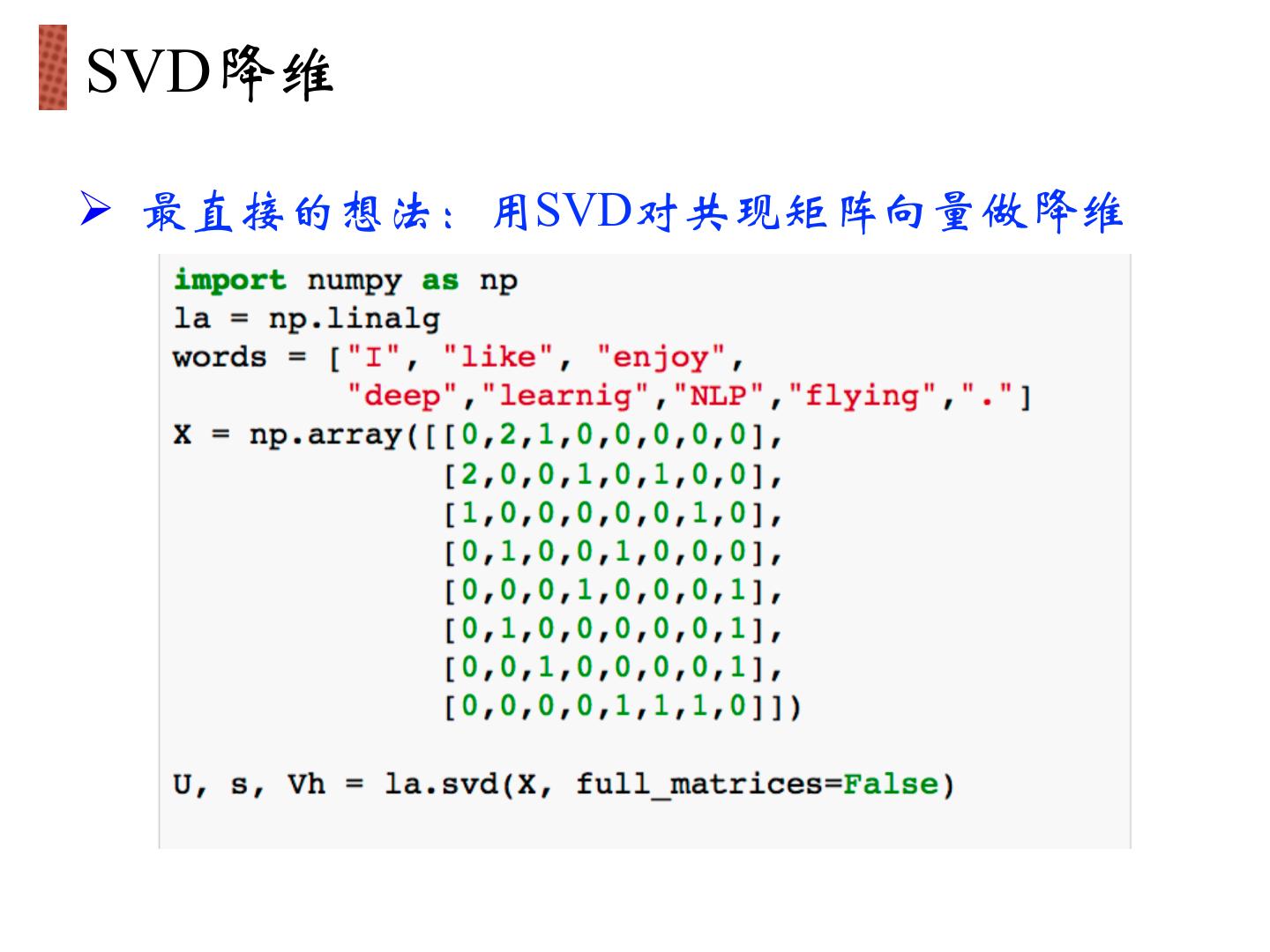 18 .SVD降维 Ø 最直接的想法:用SVD对共现矩阵向量做降维