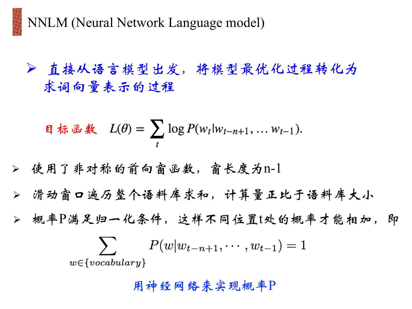 23 .NNLM的计算复杂度 每个训练样本的计算复杂度:N * D + N * D * H + H * V 一个简单模型在大数据量上的表现比复杂模型在少数据量上的表现会好