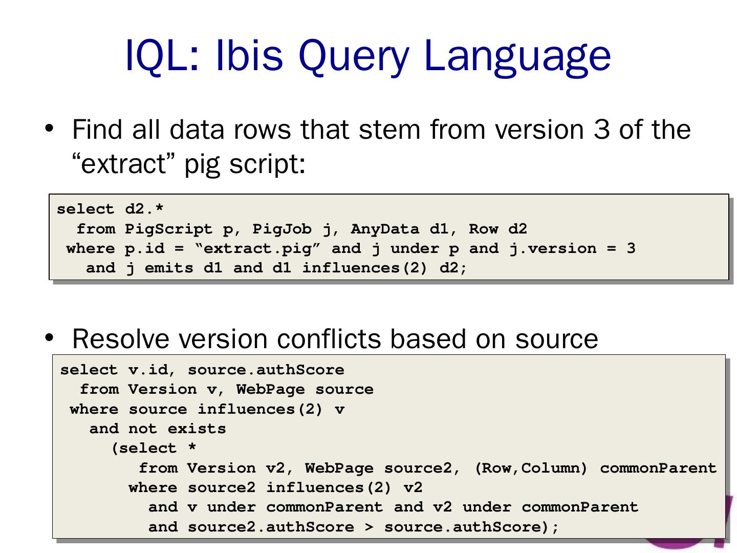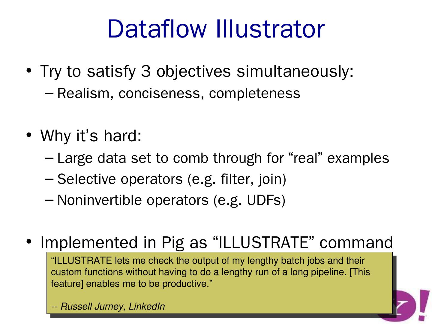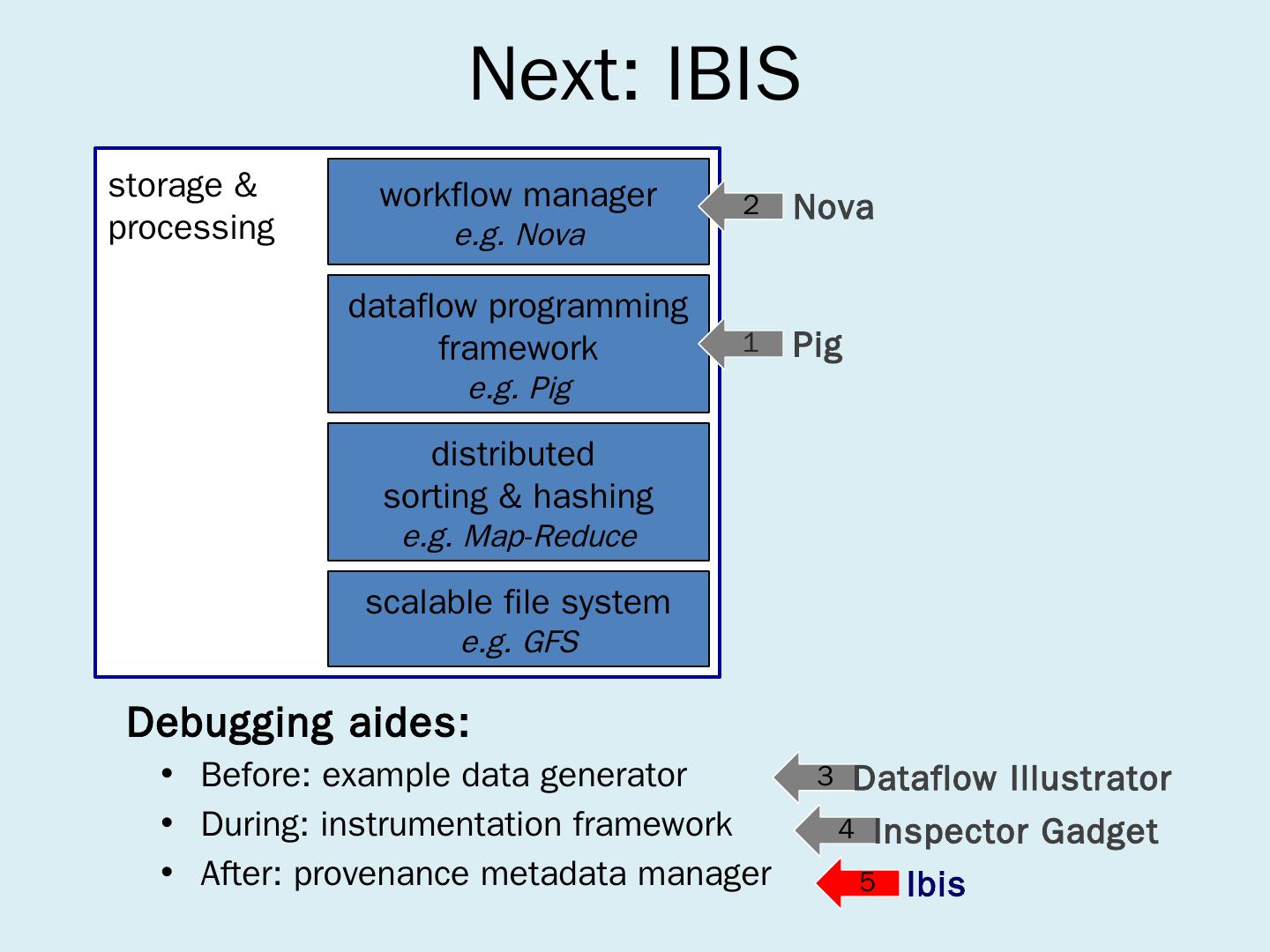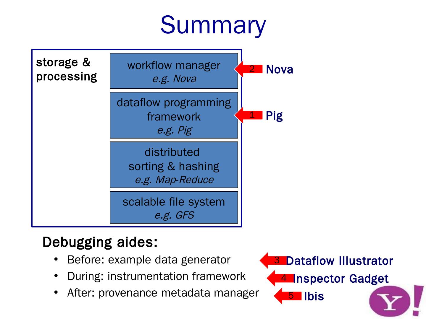 dataflow programming framework. e.g. Pig. workflow manager. e.g. Nova. Pig ... Open-source (the Apache Pig Project); Offered on Amazon Elastic Map-Reduce ...