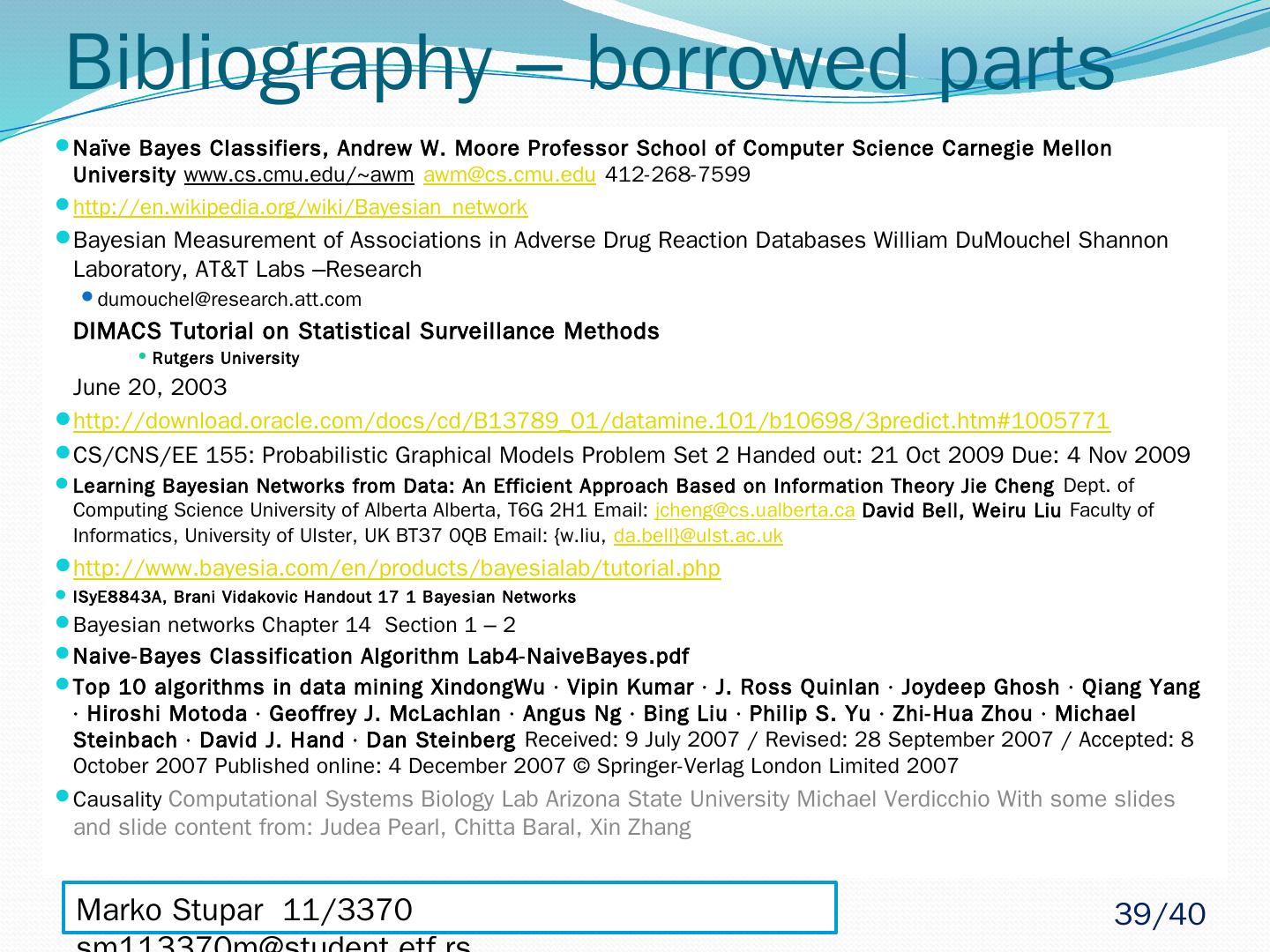 1 .Bayesian Data Mining University of Belgrade School of Electrical Engineering Department of Computer Engineering and Information Theory Marko Stupar 11/3370 sm113370m@student.etf.rs 1 /40