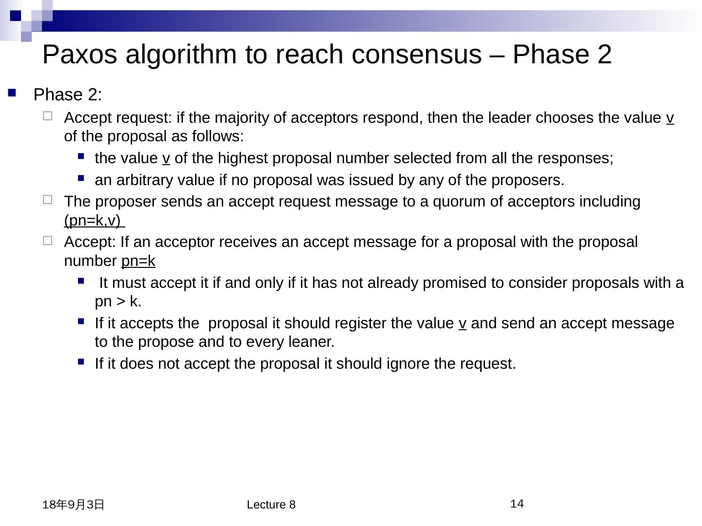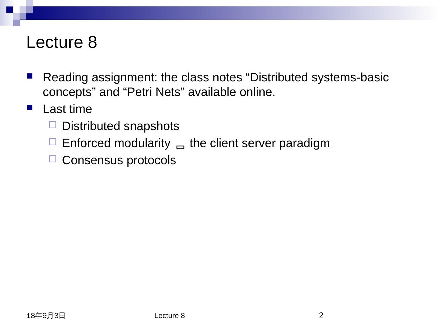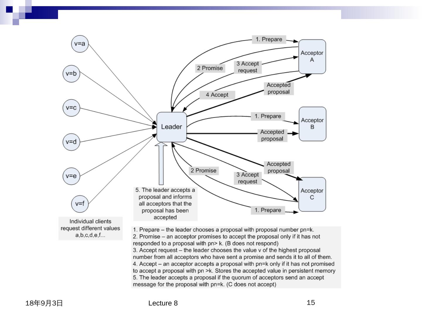More on the client-server paradigm; Chandy-Lamport snapshot protocol ... Paxos protocols to reach consensus based on a finite state machine approach.