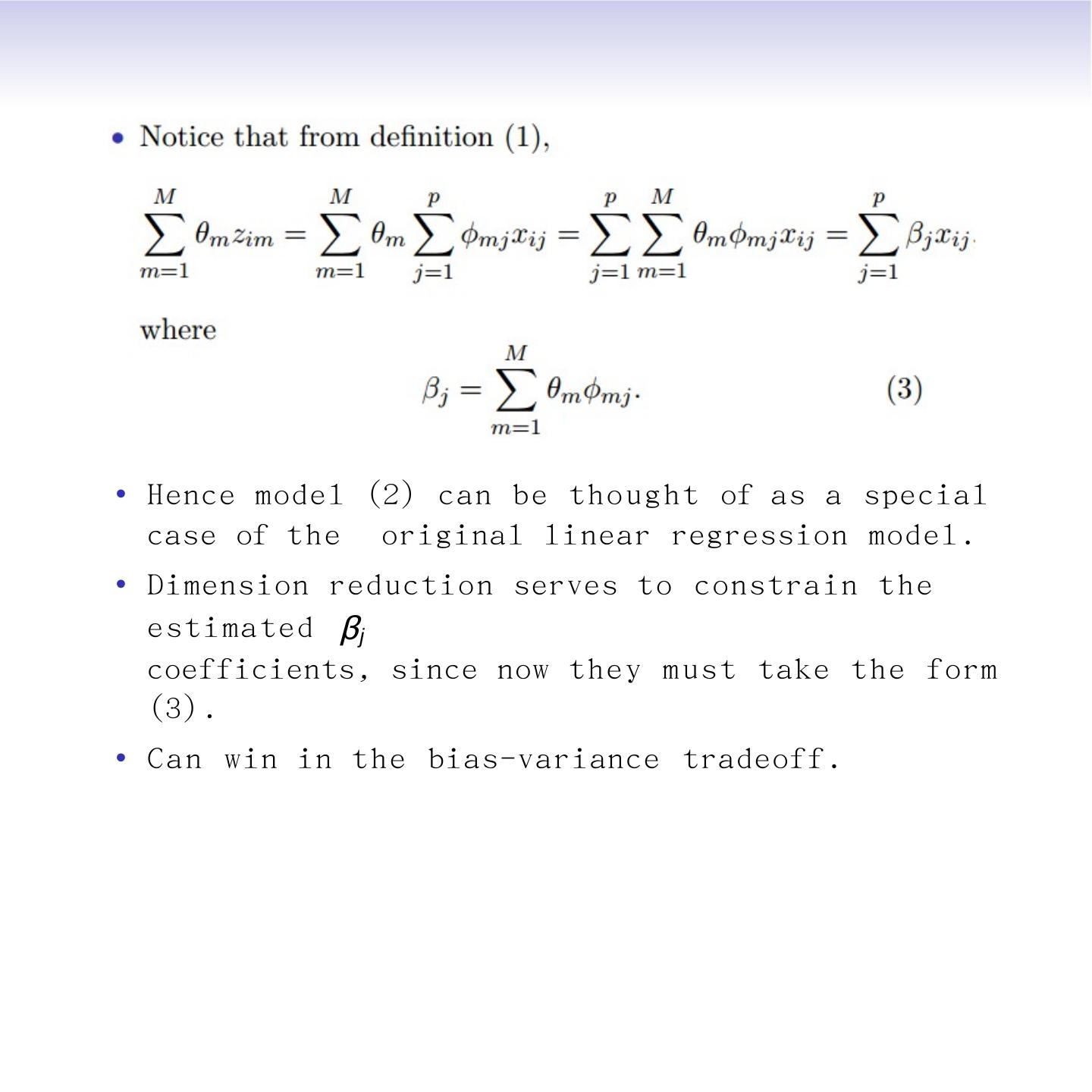 We then fit a model using least squares on the reduced set of variables. ... M projections are used as predictors to fit a linear regression model by least squares.