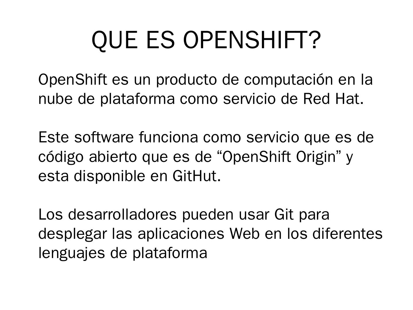 QUE ES OPENSHIFT? OpenShift es un producto de computación en la nube de plataforma como servicio de Red Hat. Este software funciona como servicio que ...