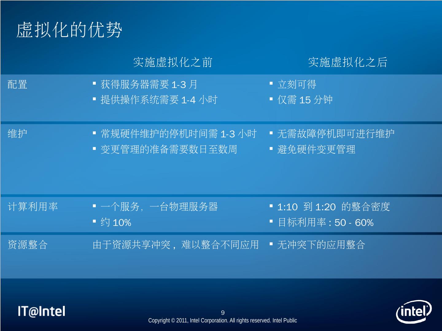 参照决策树,以集中托管来甄选应用,确保虚拟化的最佳利用. 策略: 知识积累与初步整合; 最初限于第2、3级应用; 对新的应用/硬件部署实施虚拟化; 及时更新服务器( ...