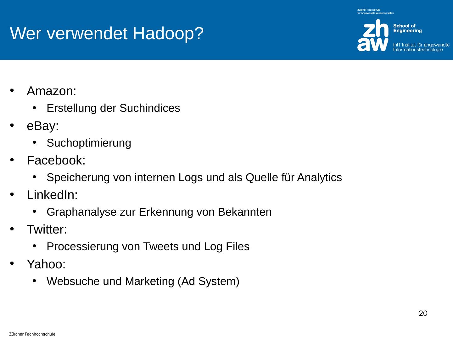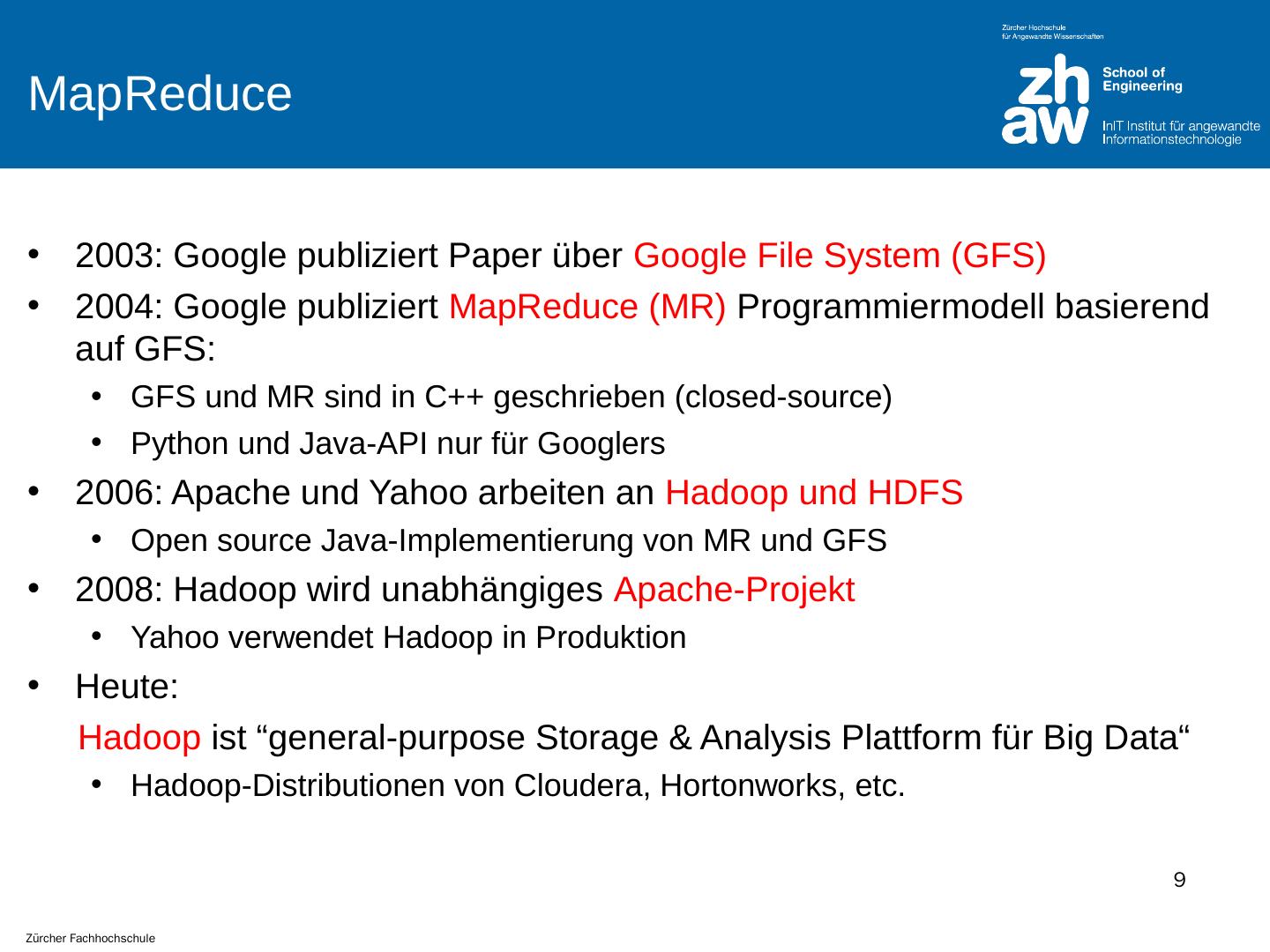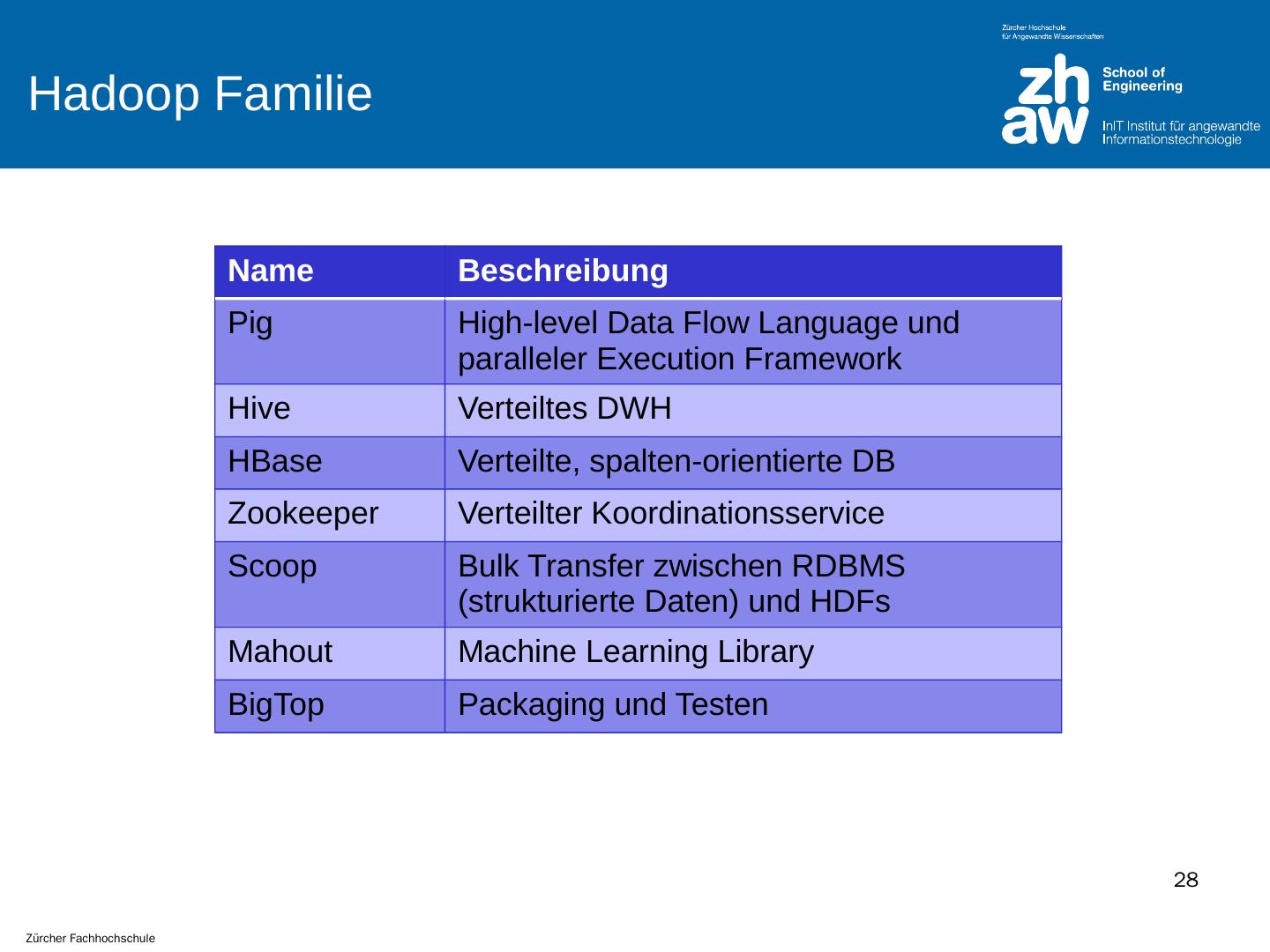 ... und Java-API nur für Googlers. 2006: Apache und Yahoo arbeiten an Hadoop und HDFS .... Learning Library. BigTop, Packaging und Testen.
