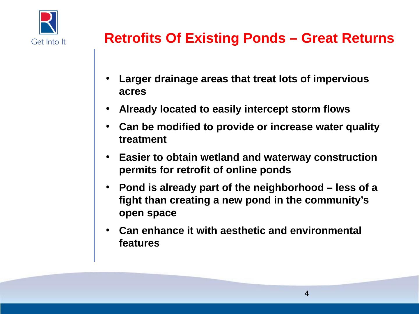 Which Ponds To Retrofit? Inventory SWM facilities for good opportunities – facilities that you needed to work on anyway. Dry ponds with good access and big ...