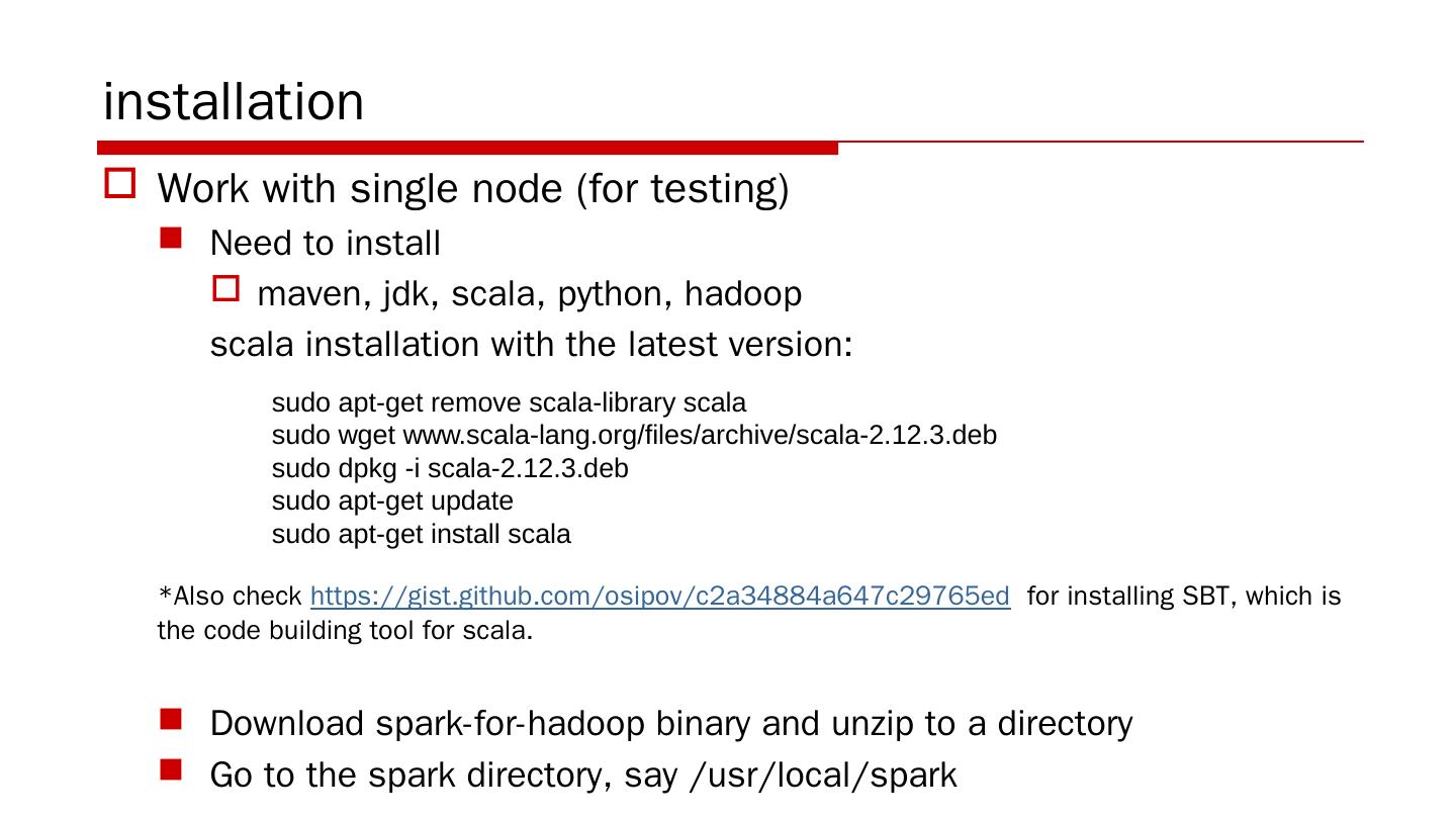 Download spark-for-hadoop binary and unzip to a directory; Go to the spark directory, say /usr/local/spark. sudo apt-get ... from pyspark.sql import SparkSession.