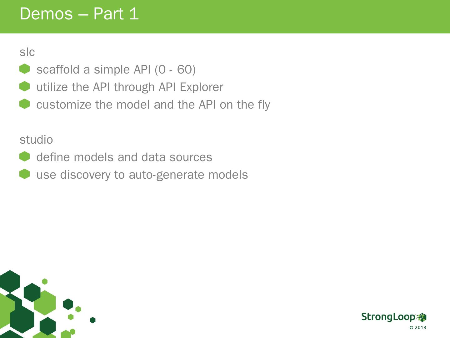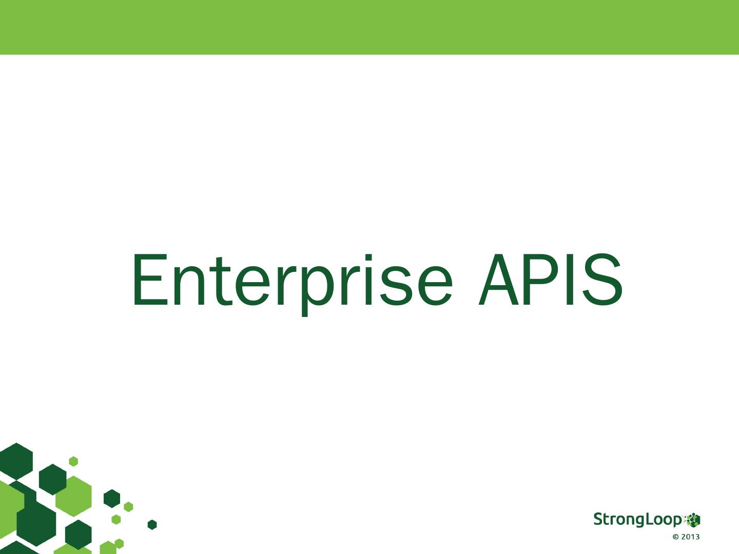 Intros; Why Node.js? Enterprise APIs. Define some terms; History of APIs. Best Practices for Enterprise APIs; Solutions from StrongLoop; Abbreviated Demos ...