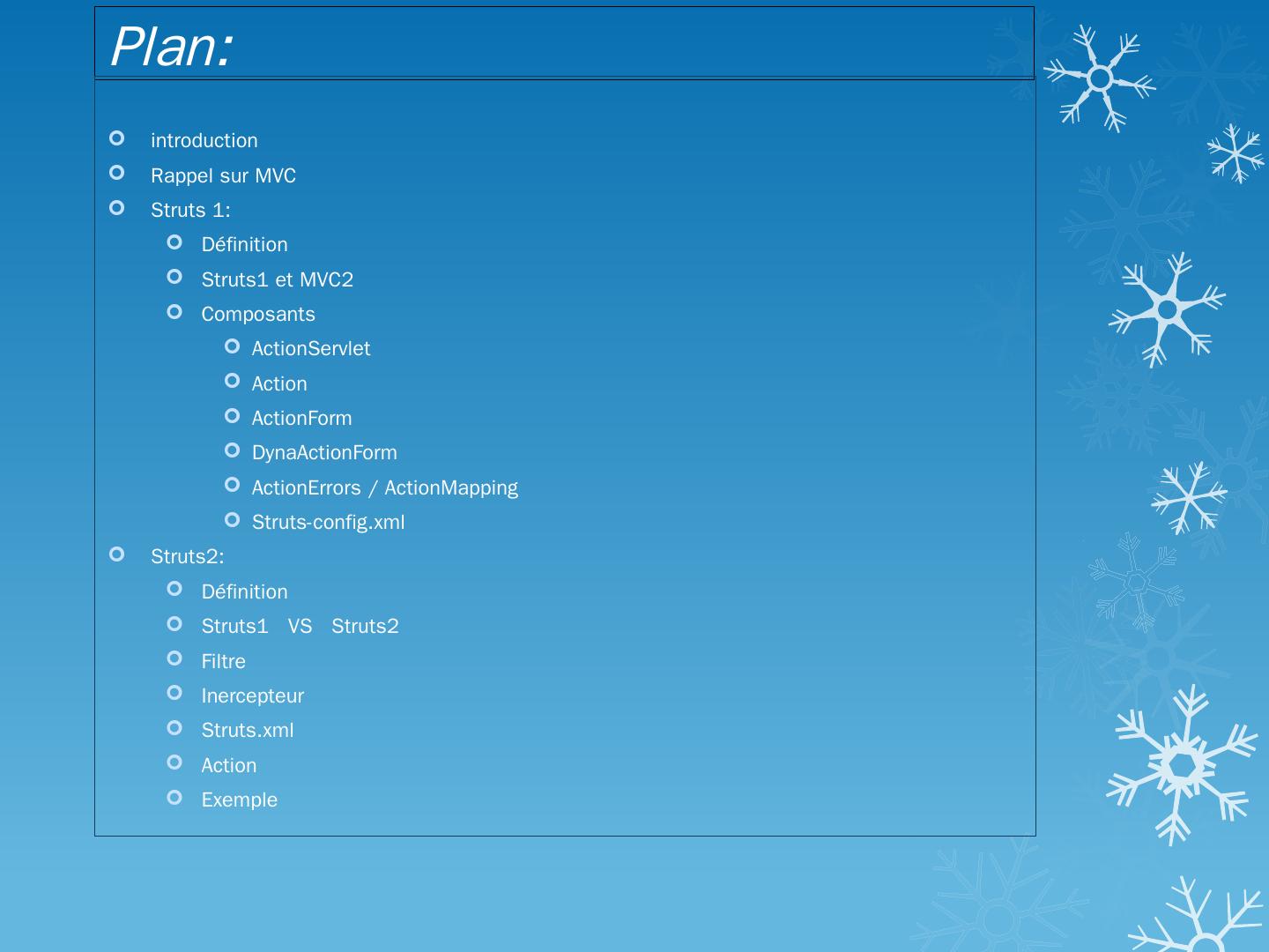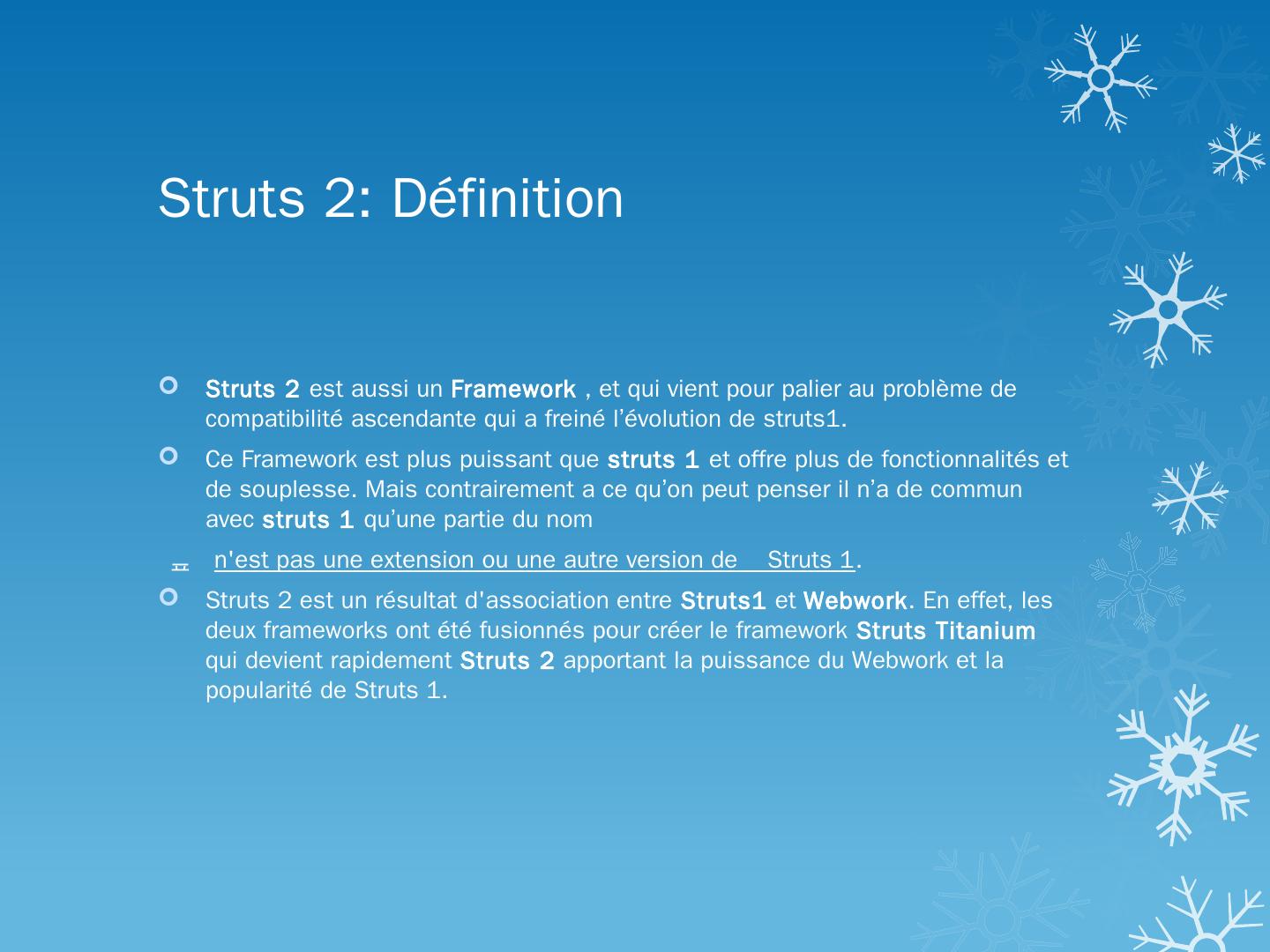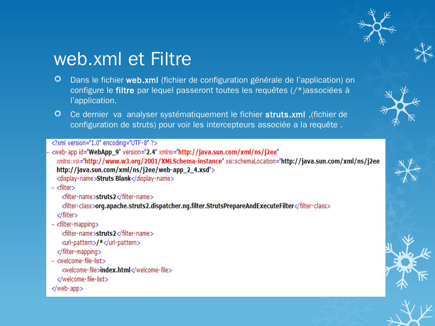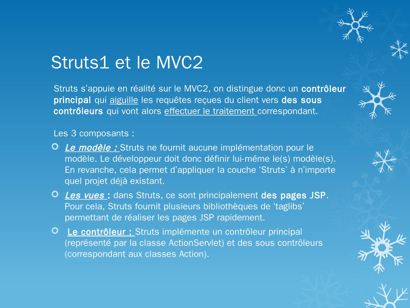 Définition; Struts1 VS Struts2; Filtre; Inercepteur; Struts.xml; Action; Exemple ... Struts est un Framework MVC utilisé pour développer des applications WEB.